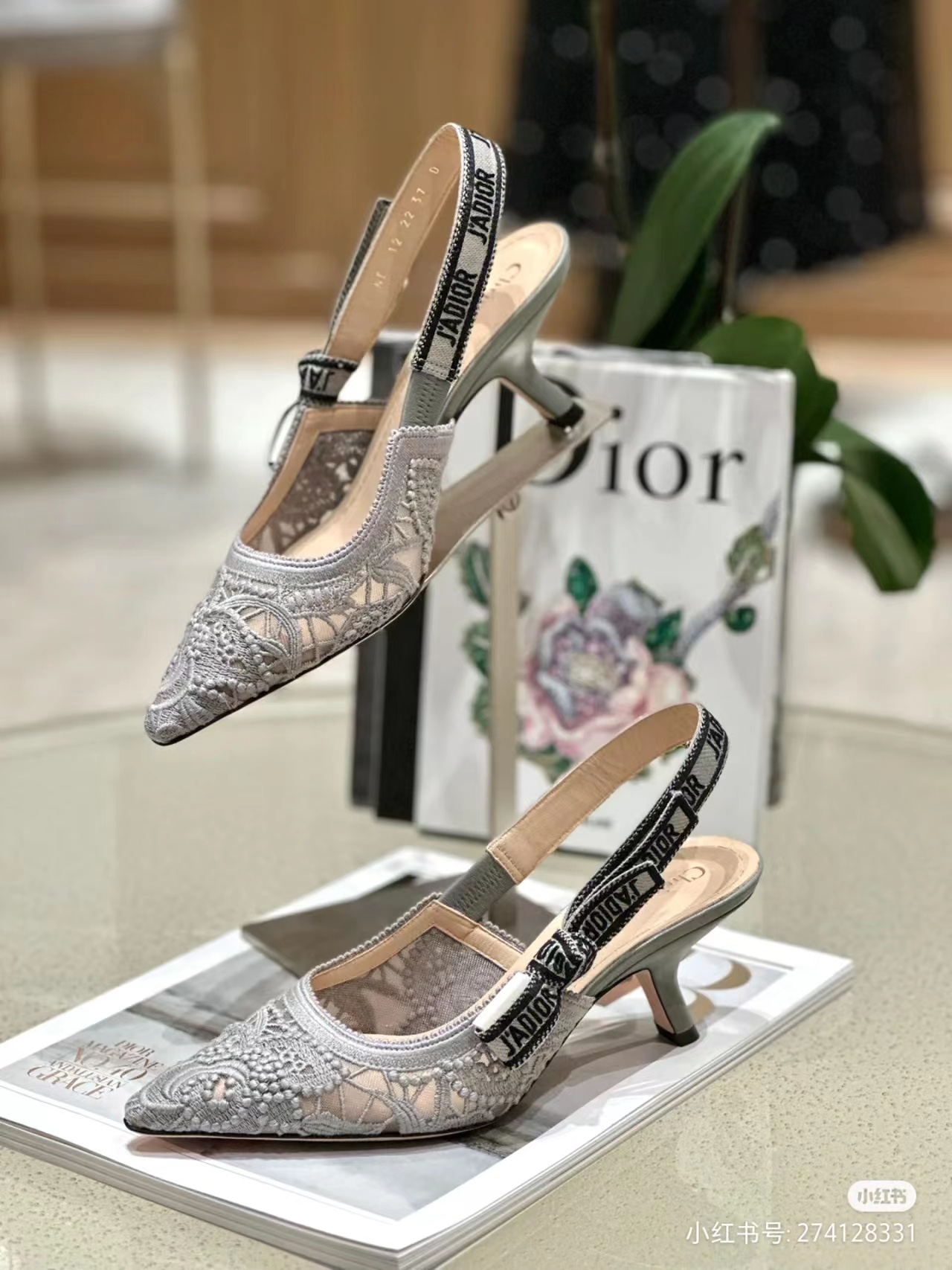 Dior J’Adior Lace Mesh Kitten-Heel Slingback Pumps