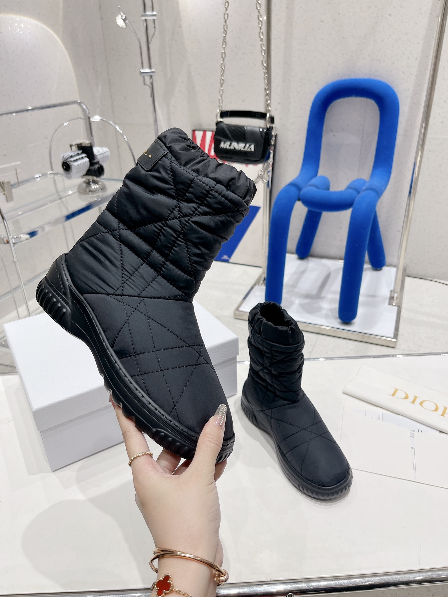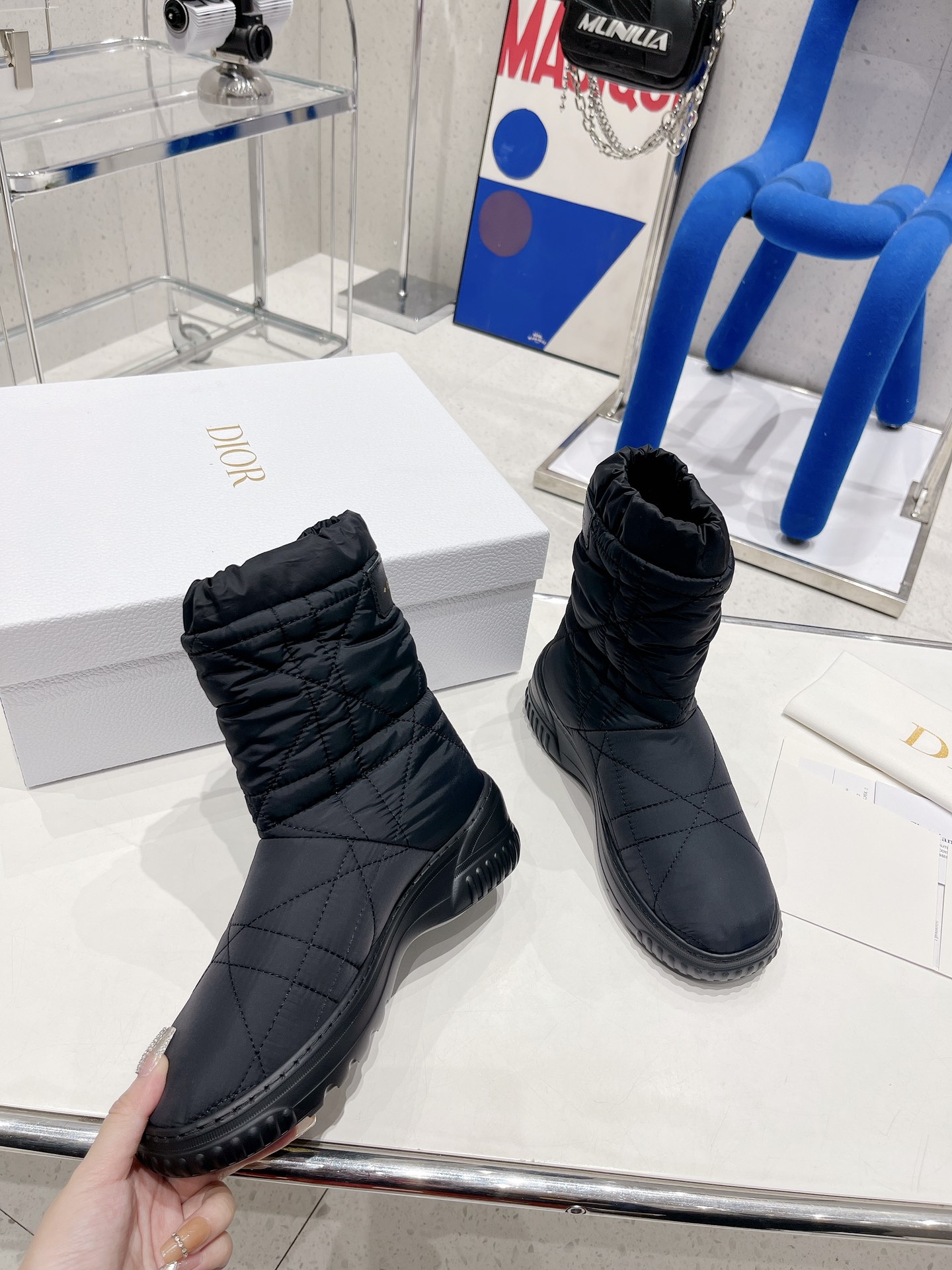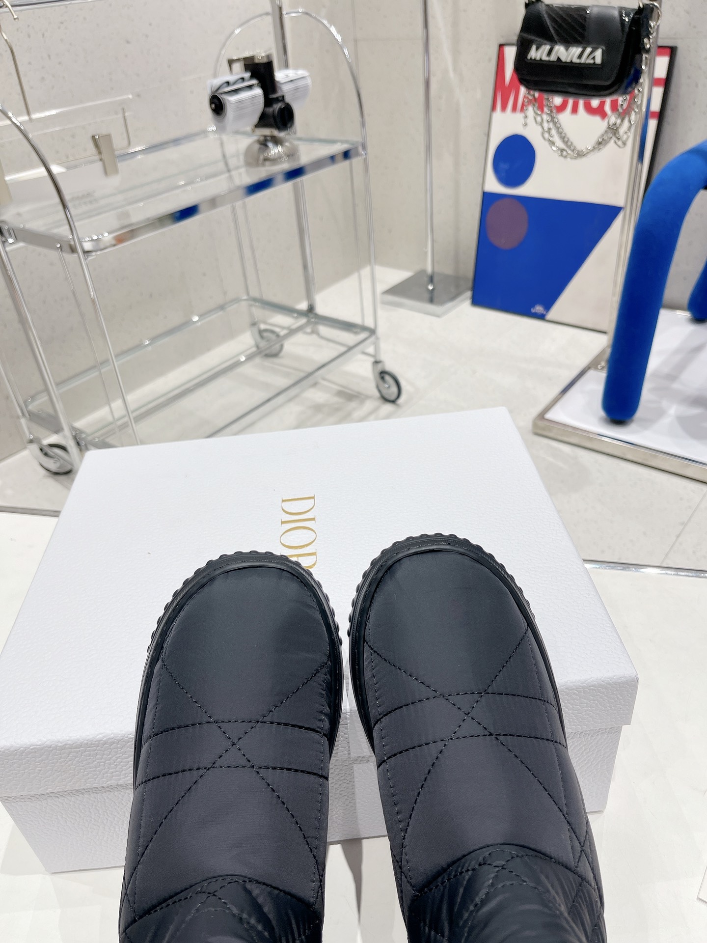 Dior Quilted Black Diamond-Stitch Puffer Boots