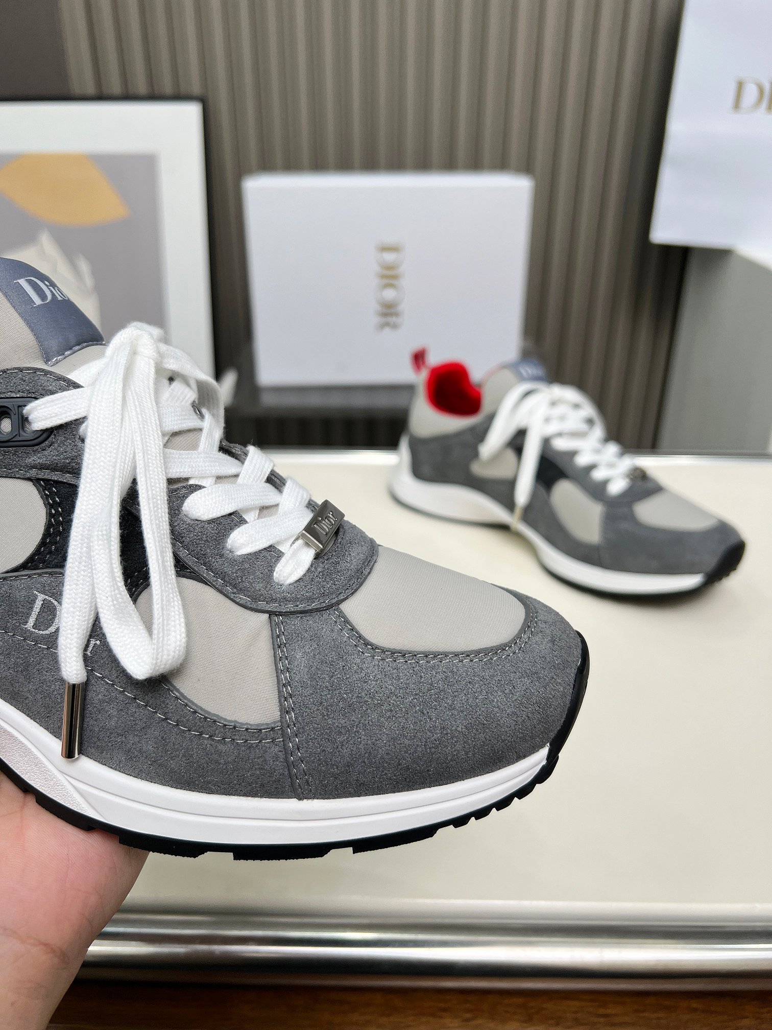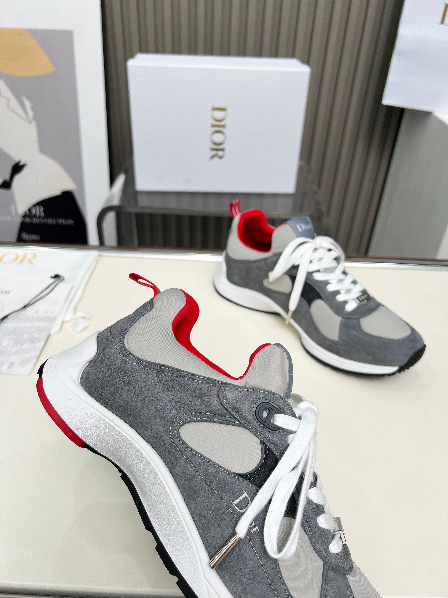 Dior Vibe Grey-Tone Colorblock Sneakers
