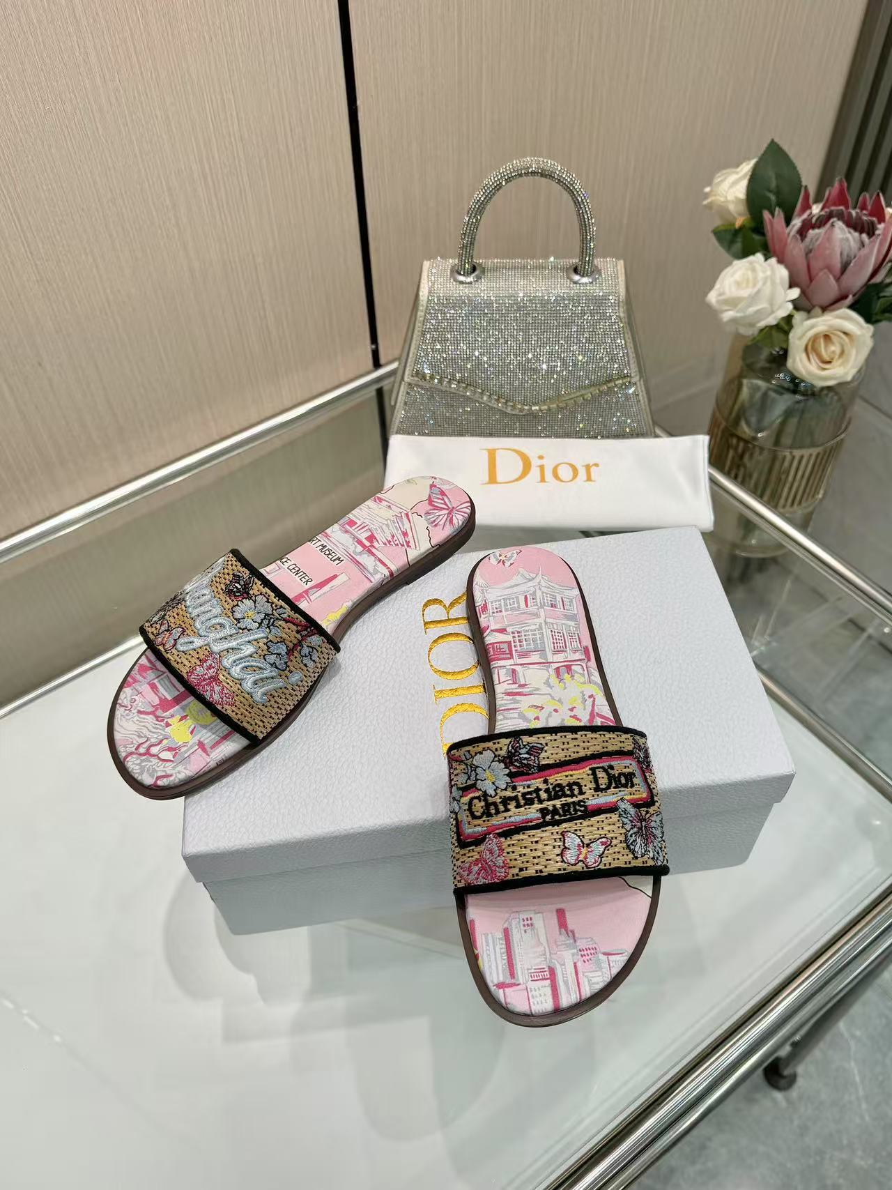 Dior Women’s Monogram Embroidered Slides