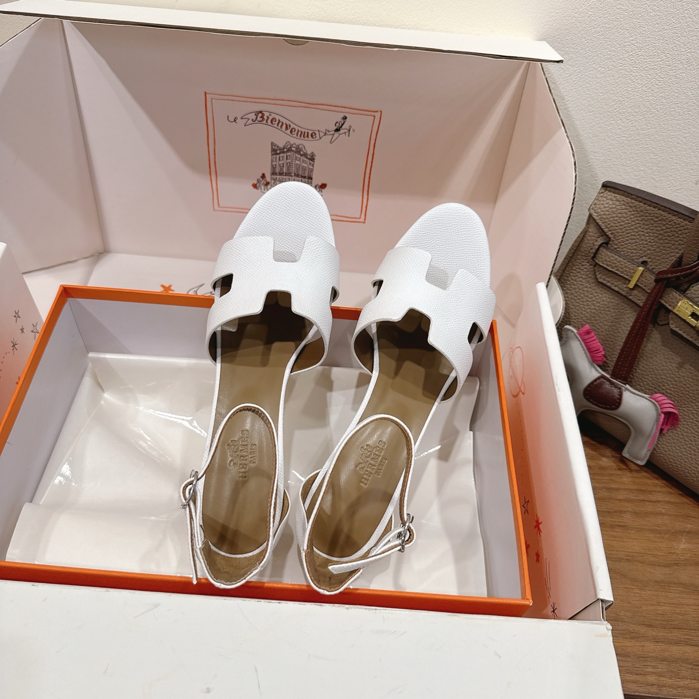 Hermès Chypre collection, retro-style slippers, H-shaped slippers, Velcro sandals.