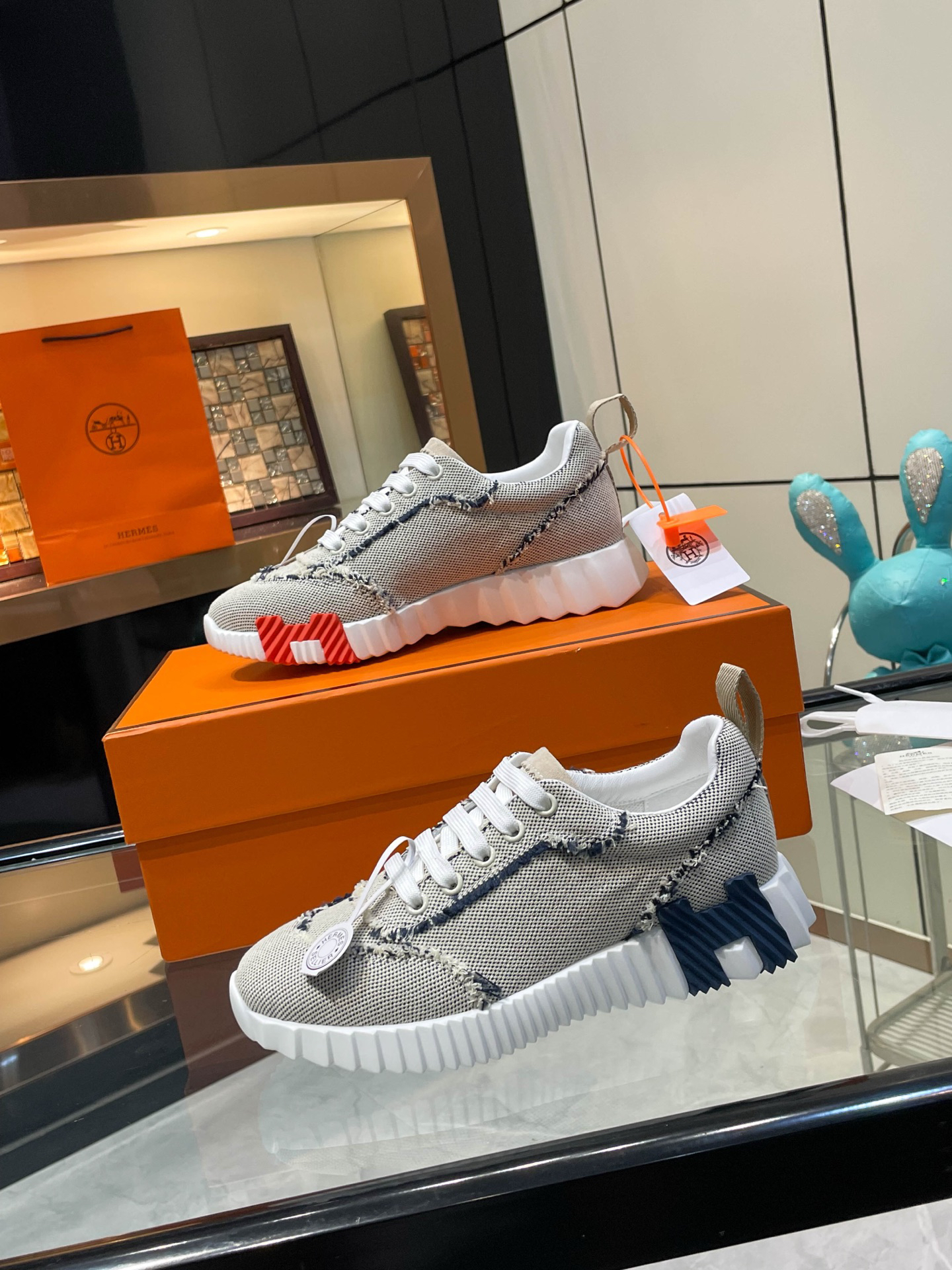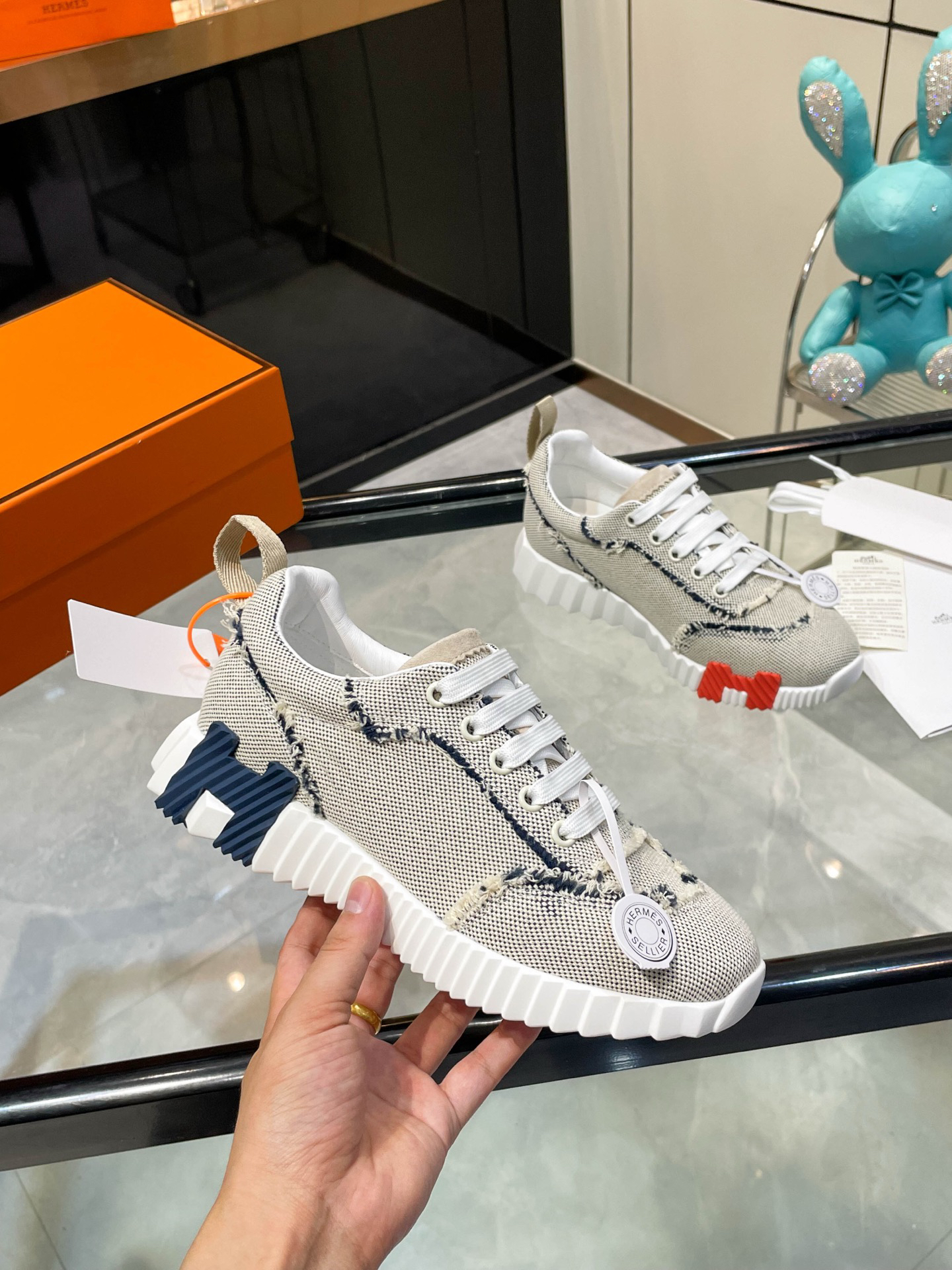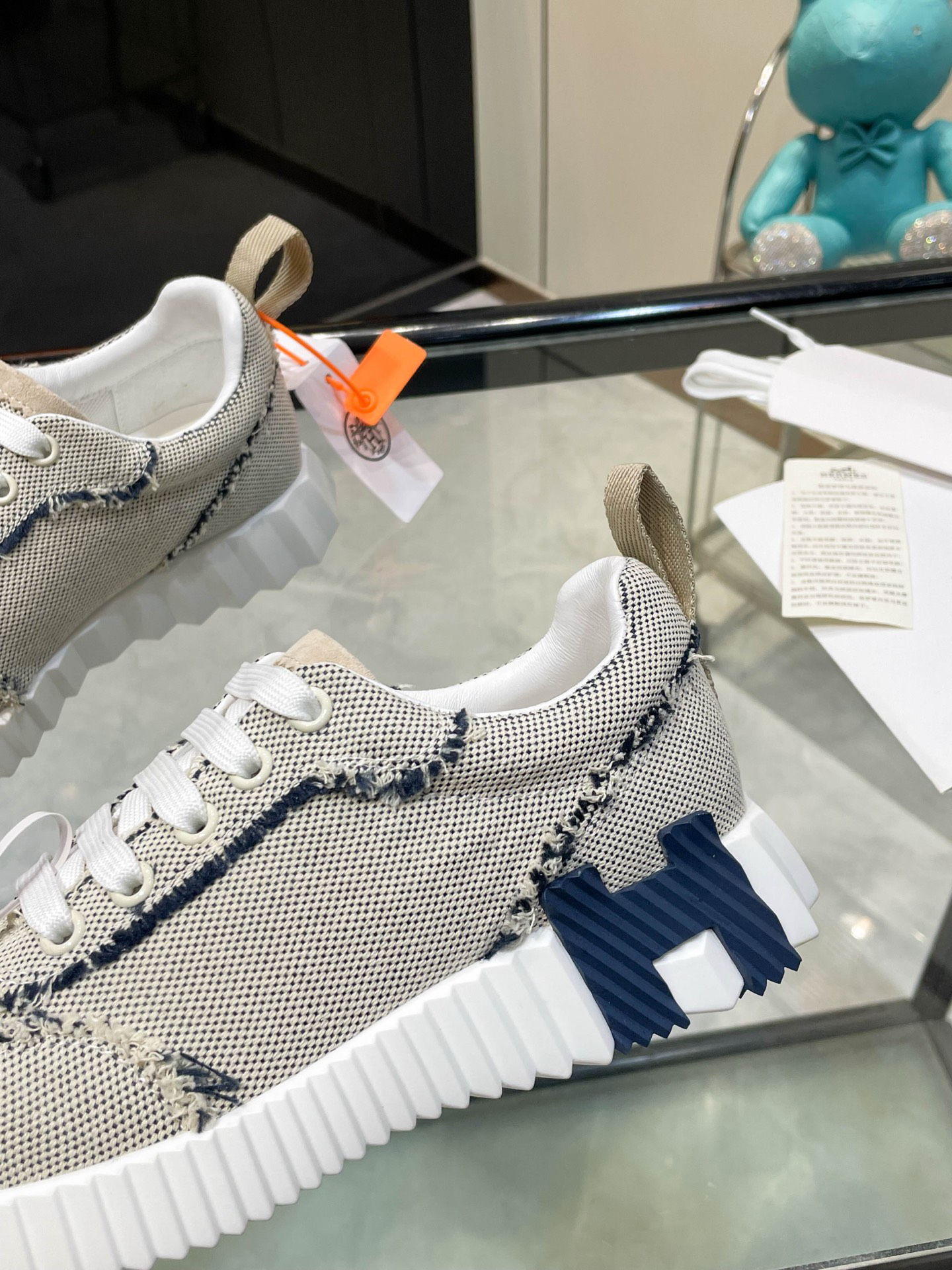 Features: A lightweight, geometrically shaped sole creates a modern urban style. The striking oversized upper, adorned with the signature “H en bias” twill pattern, is a major highlight. The insole and lining are typically made of supple lambskin.