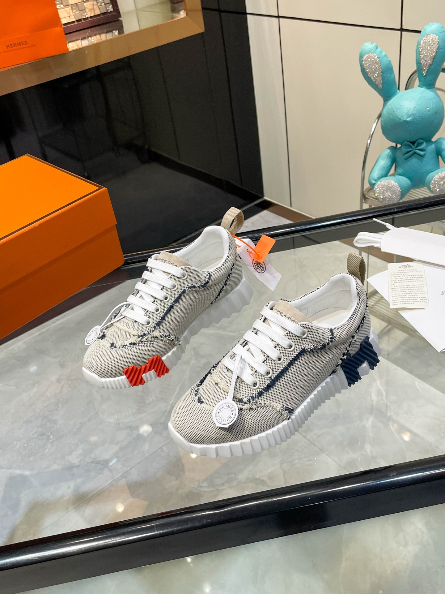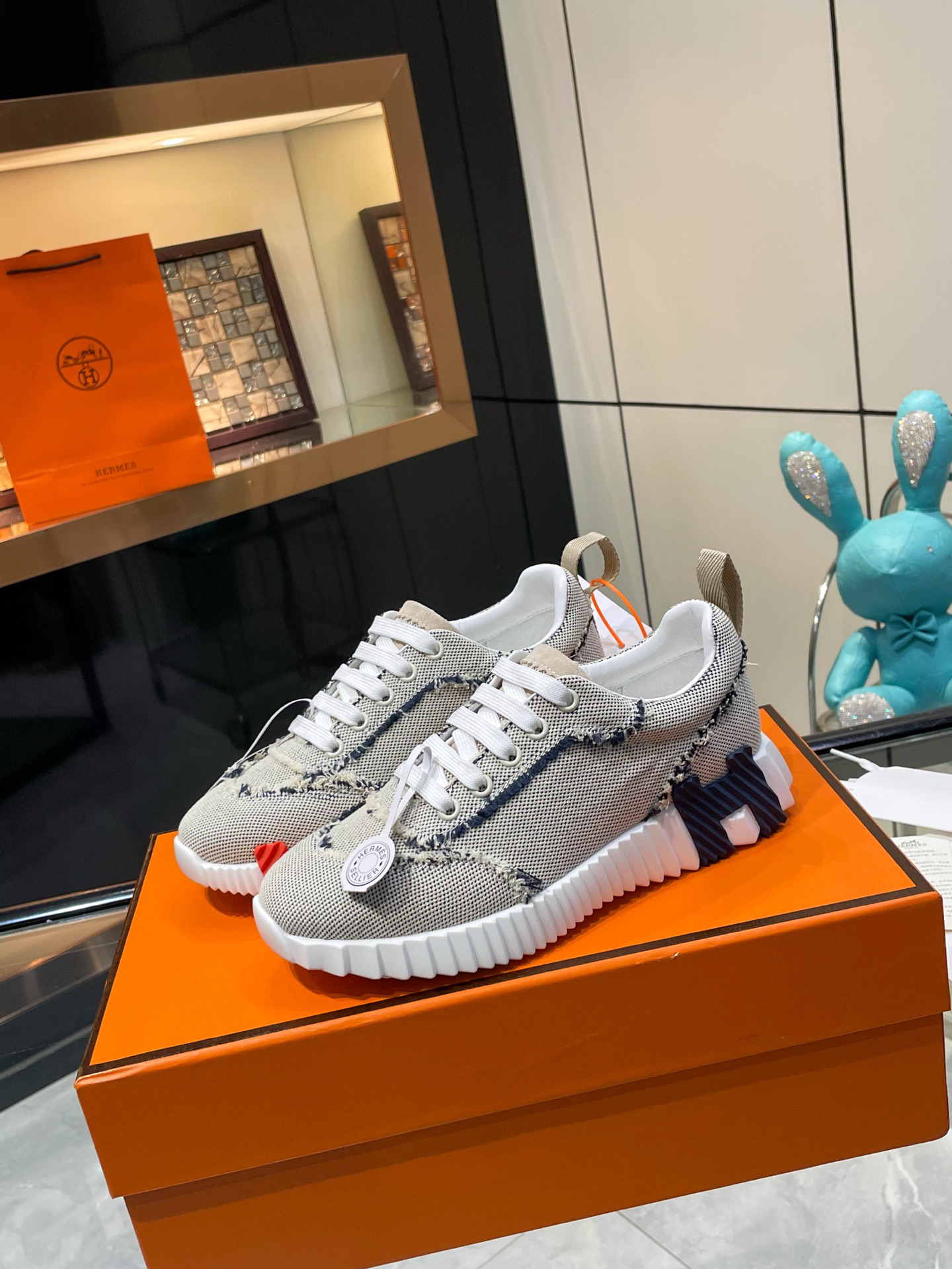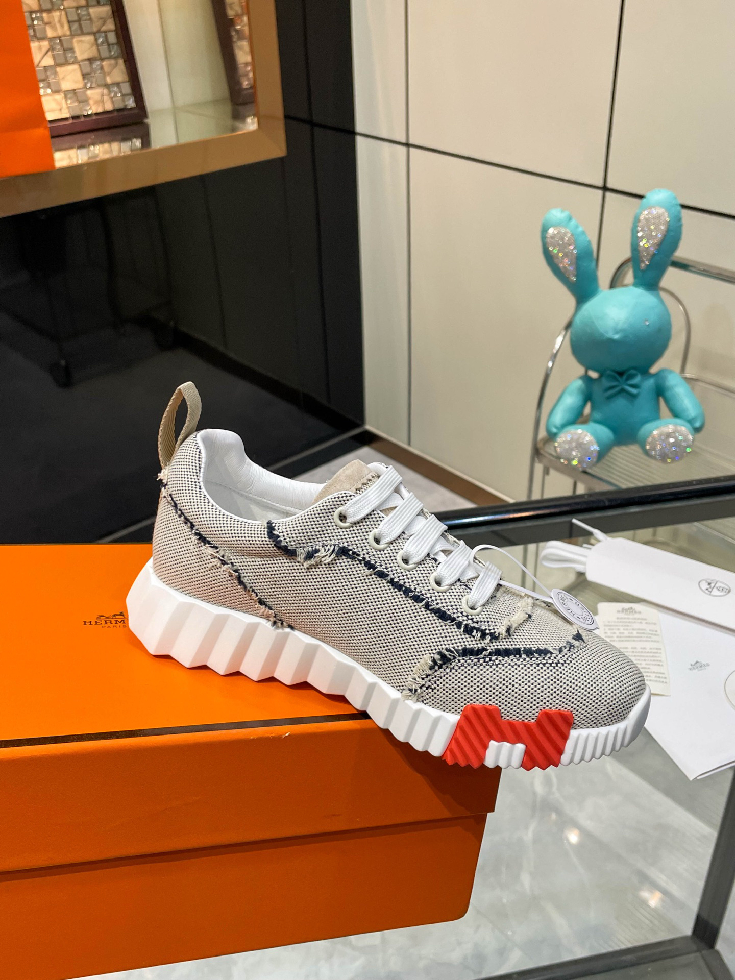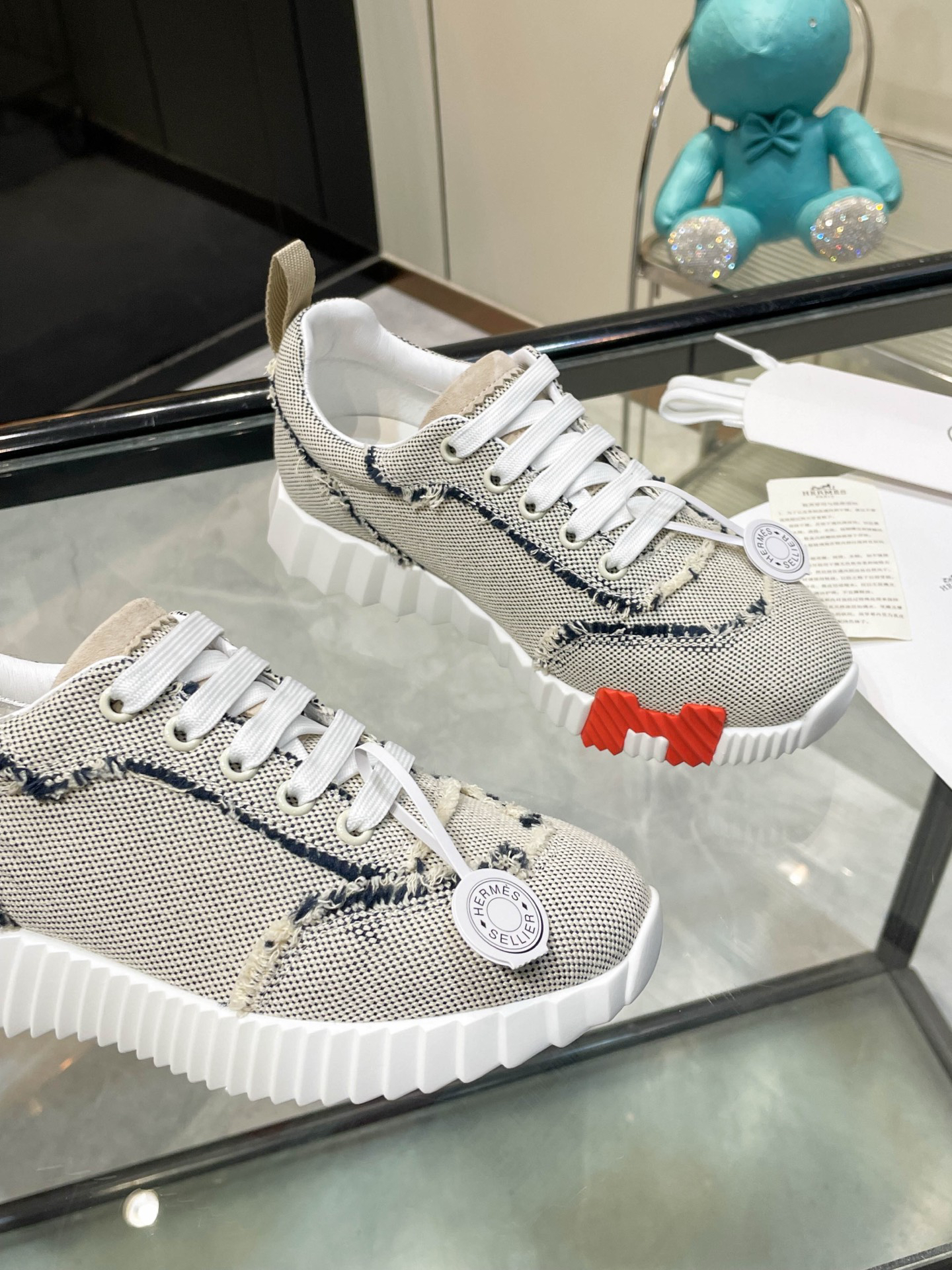 Features: A lightweight, geometrically shaped sole creates a modern urban style. The striking oversized upper, adorned with the signature “H en bias” twill pattern, is a major highlight. The insole and lining are typically made of supple lambskin.