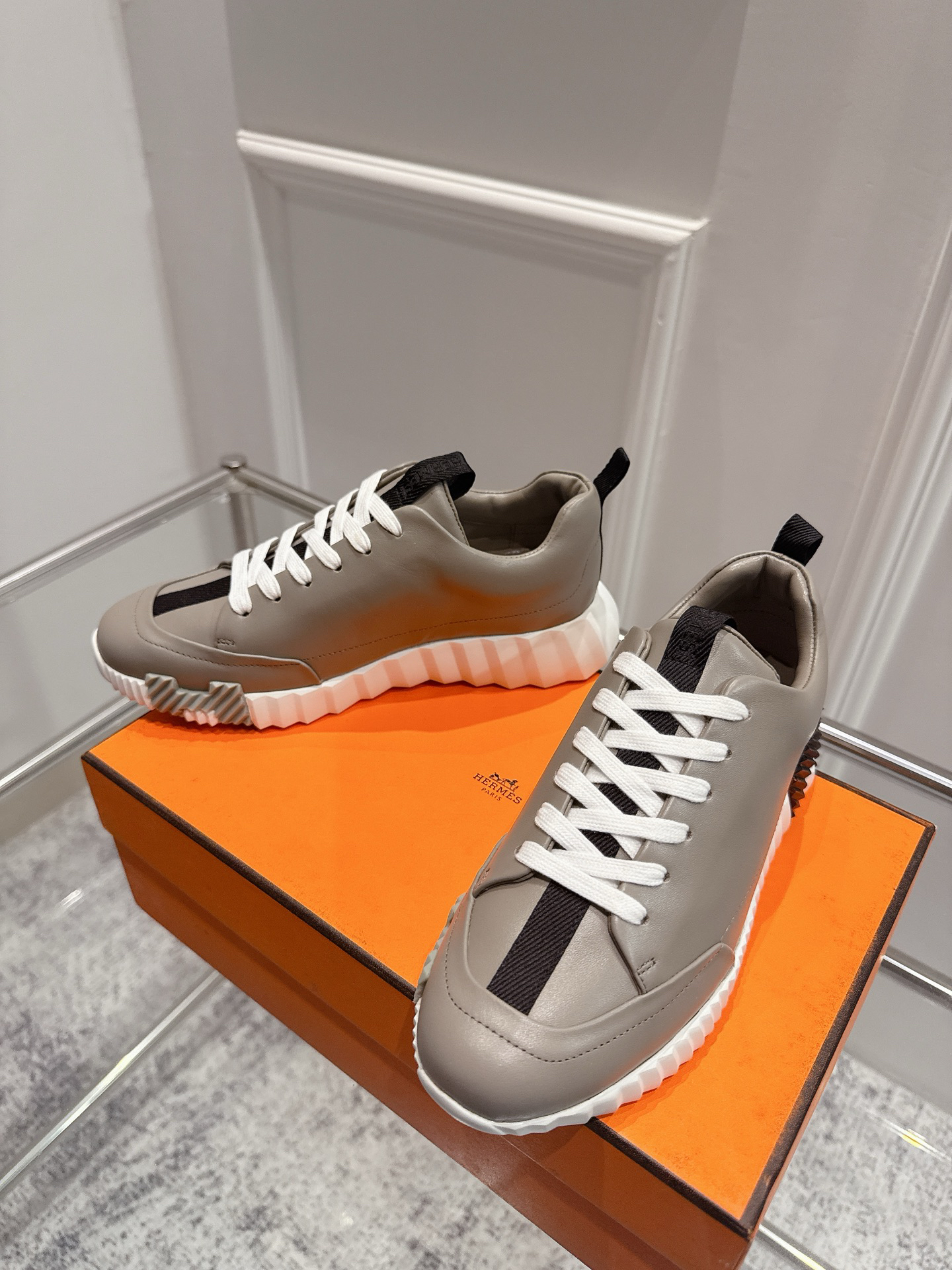 These casual athletic couple shoes feature high-tech canvas paired with cashmere suede, and a rubber sole adorned with a striking “H” letter. The italic design and vibrant colors continue the brand’s design philosophy. Enjoy effortless strides through the city streets.