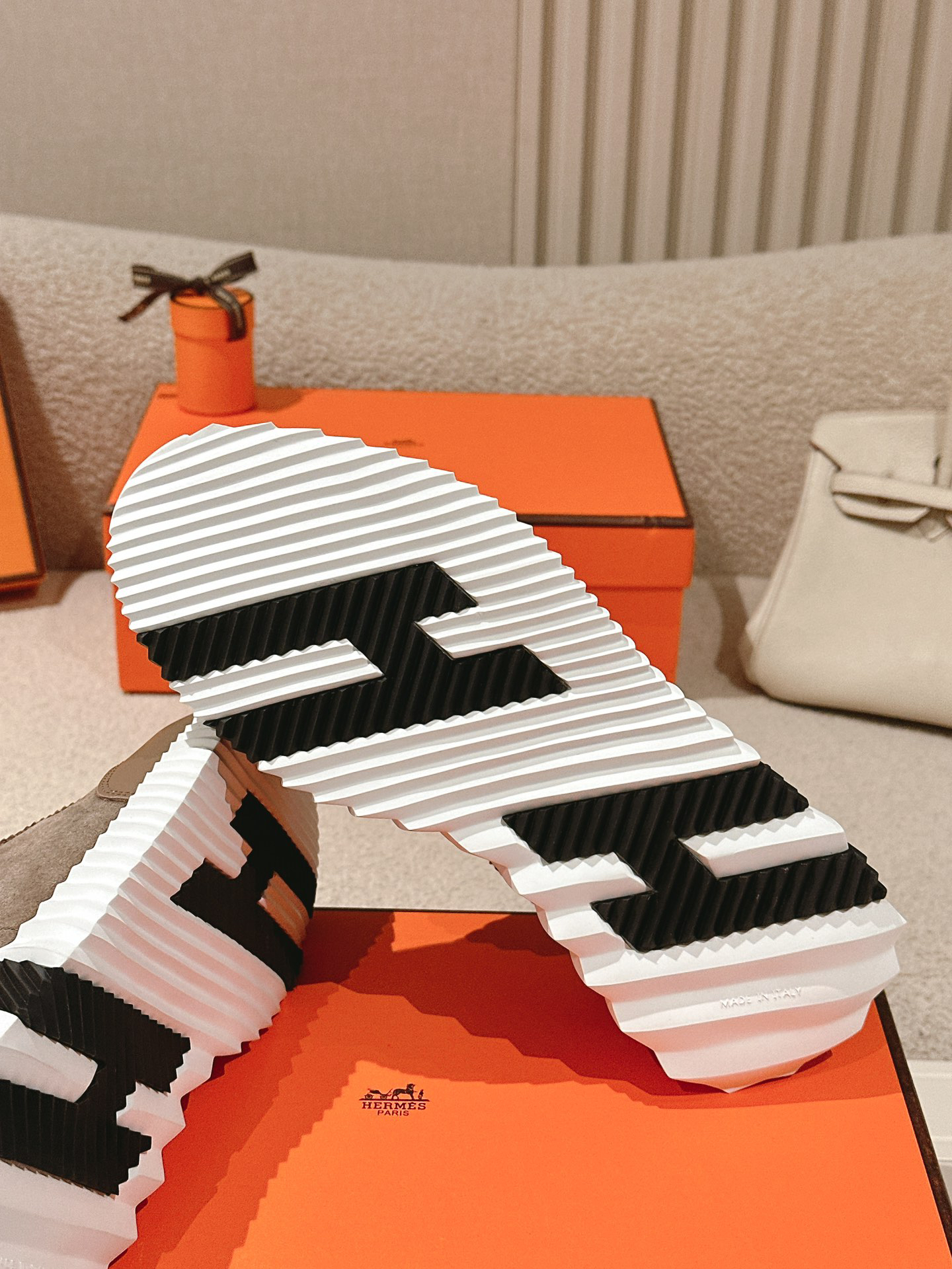 Hermès Chypre collection, retro-style slippers, H-shaped slippers, Velcro sandals.