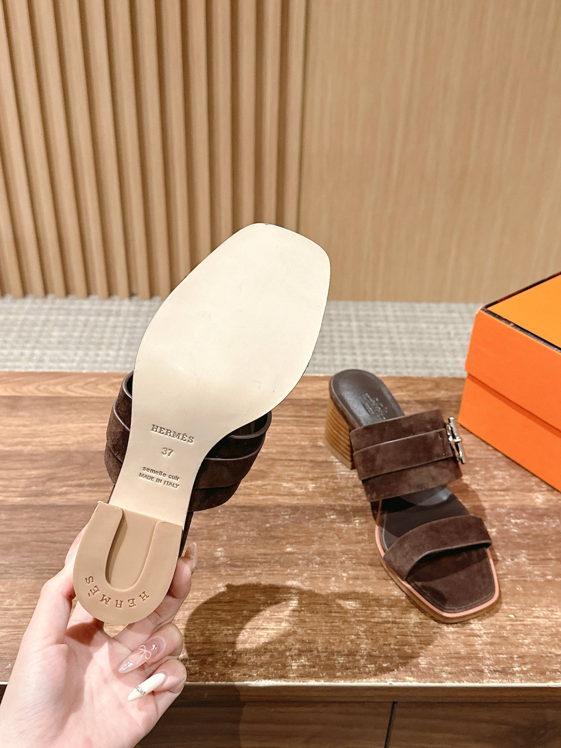 Hermes Chypre series, vintage-style slippers, H-shaped slippers, Velcro sandals.