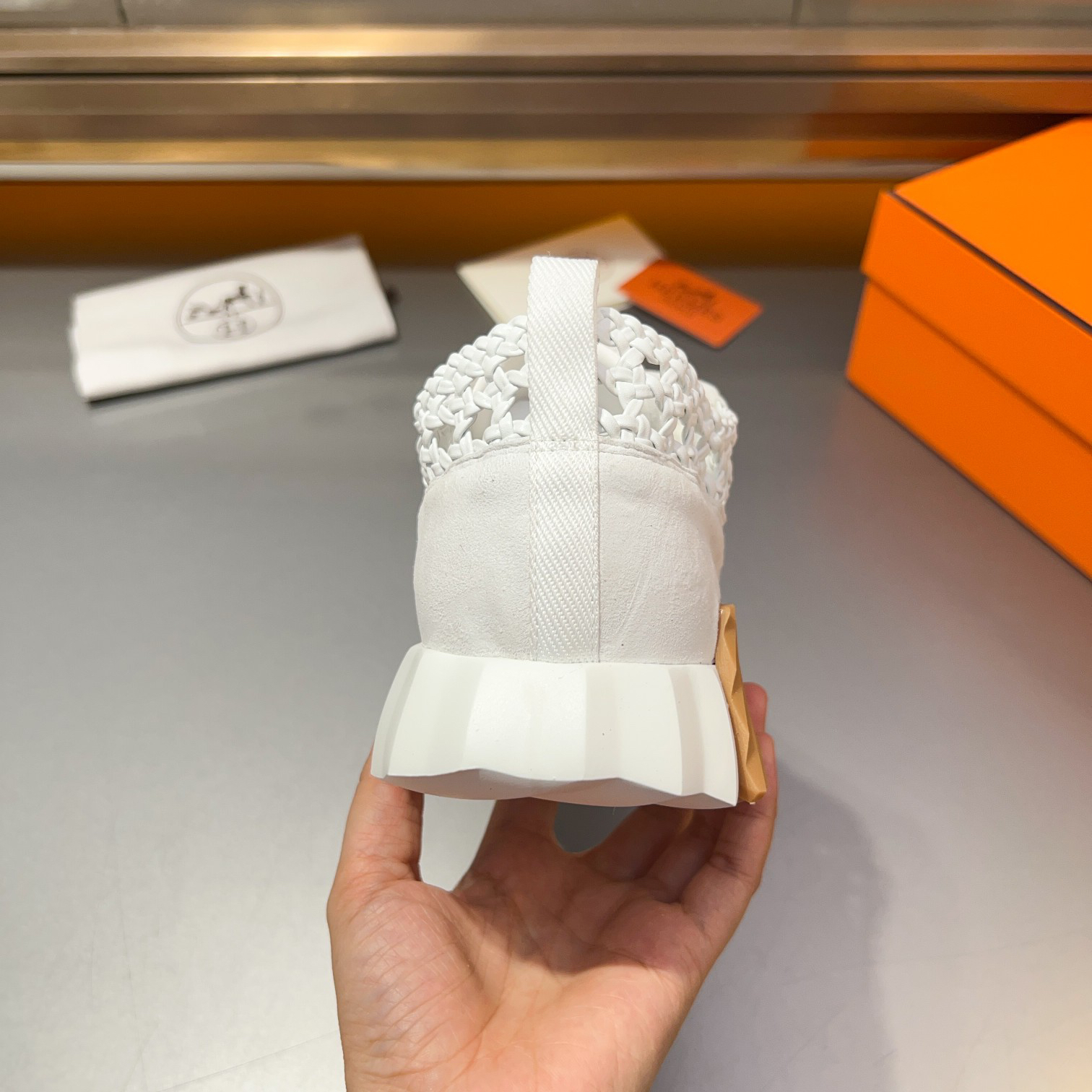 The upper is constructed from a combination of cowhide and woven fabric, using imported materials to exude a premium feel. The lightweight sole features a contrasting pattern, creating a versatile and stylish look.