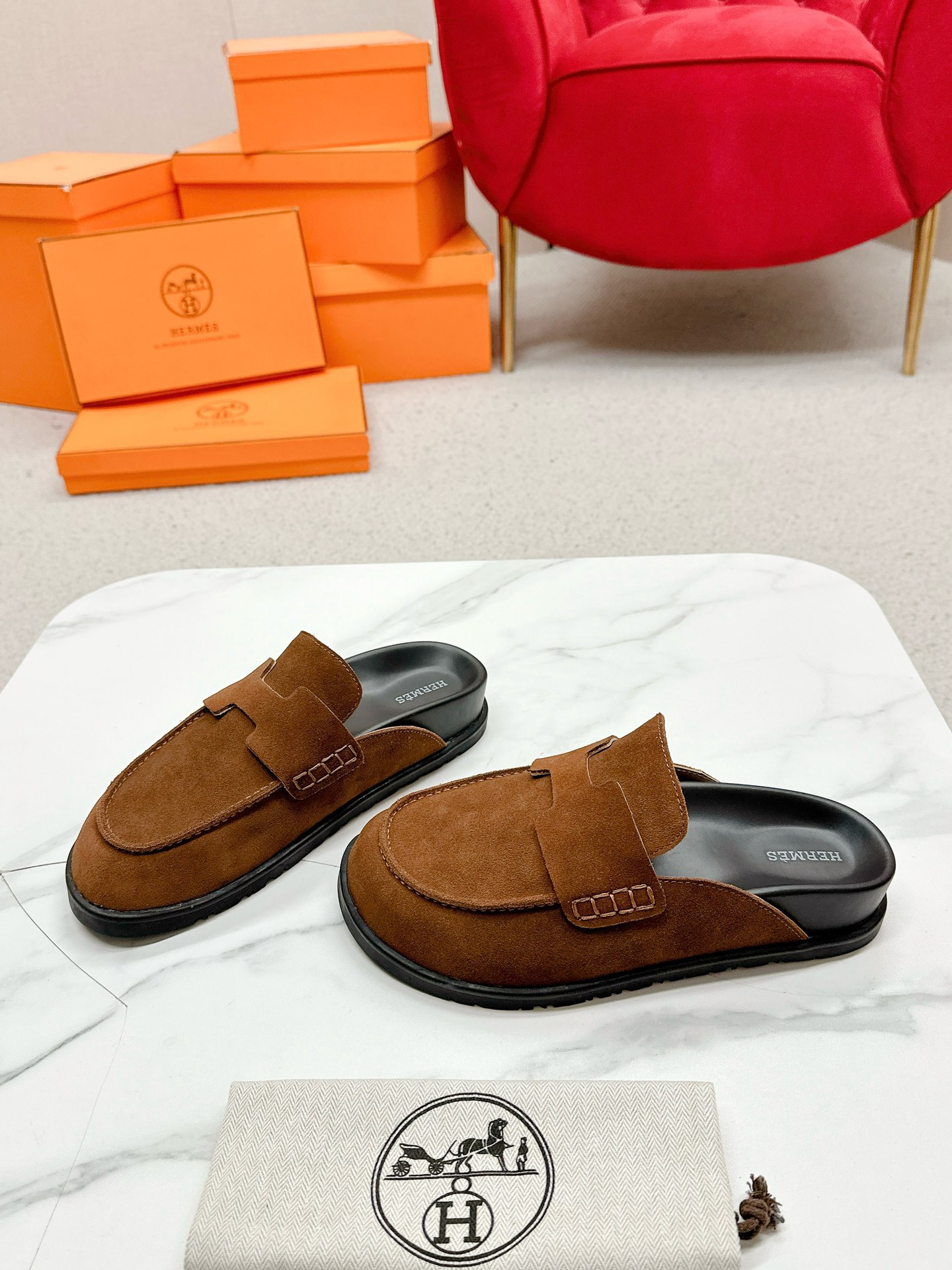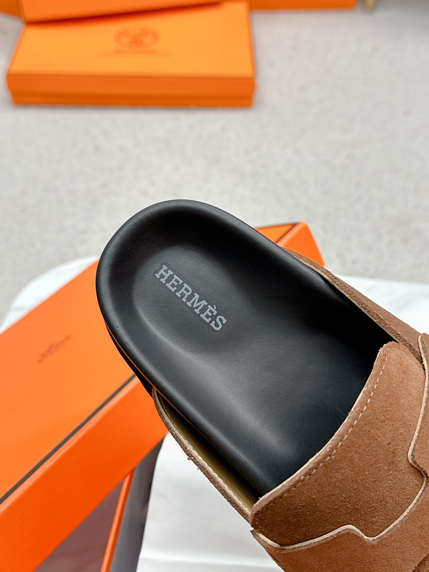 Couple style Hermes Chypre series, vintage-style slippers, H-shaped slippers, Velcro sandals.