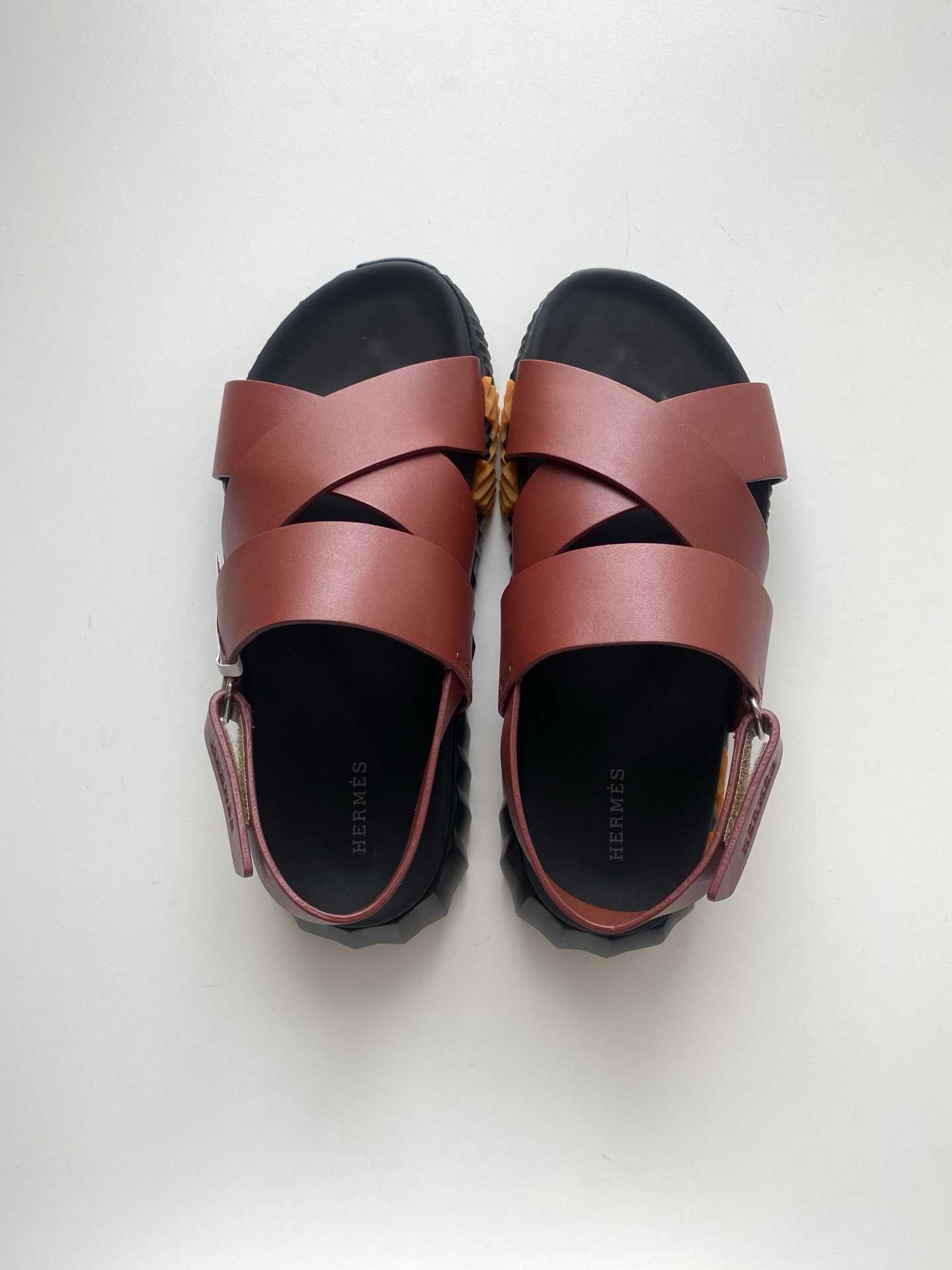 Hermès Chypre collection, retro-style slippers, H-shaped slippers, Velcro sandals.