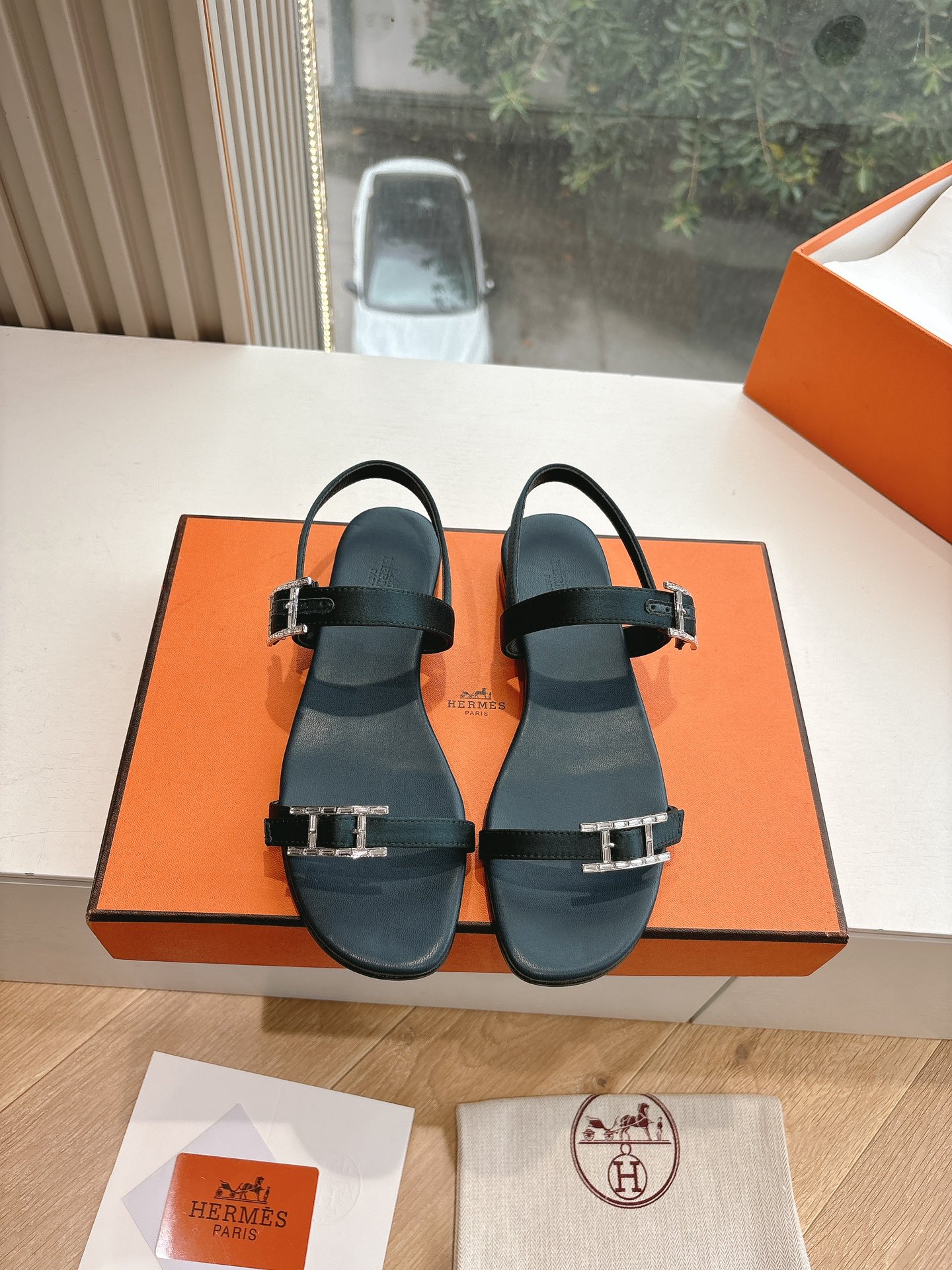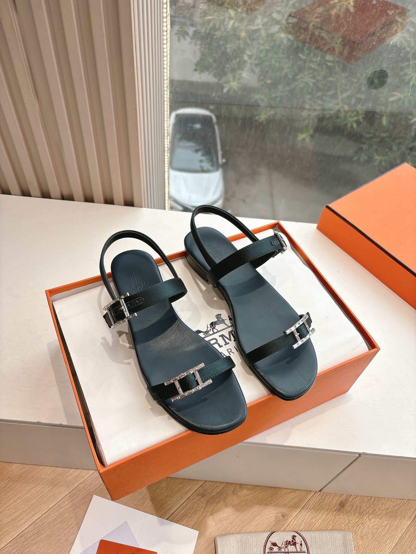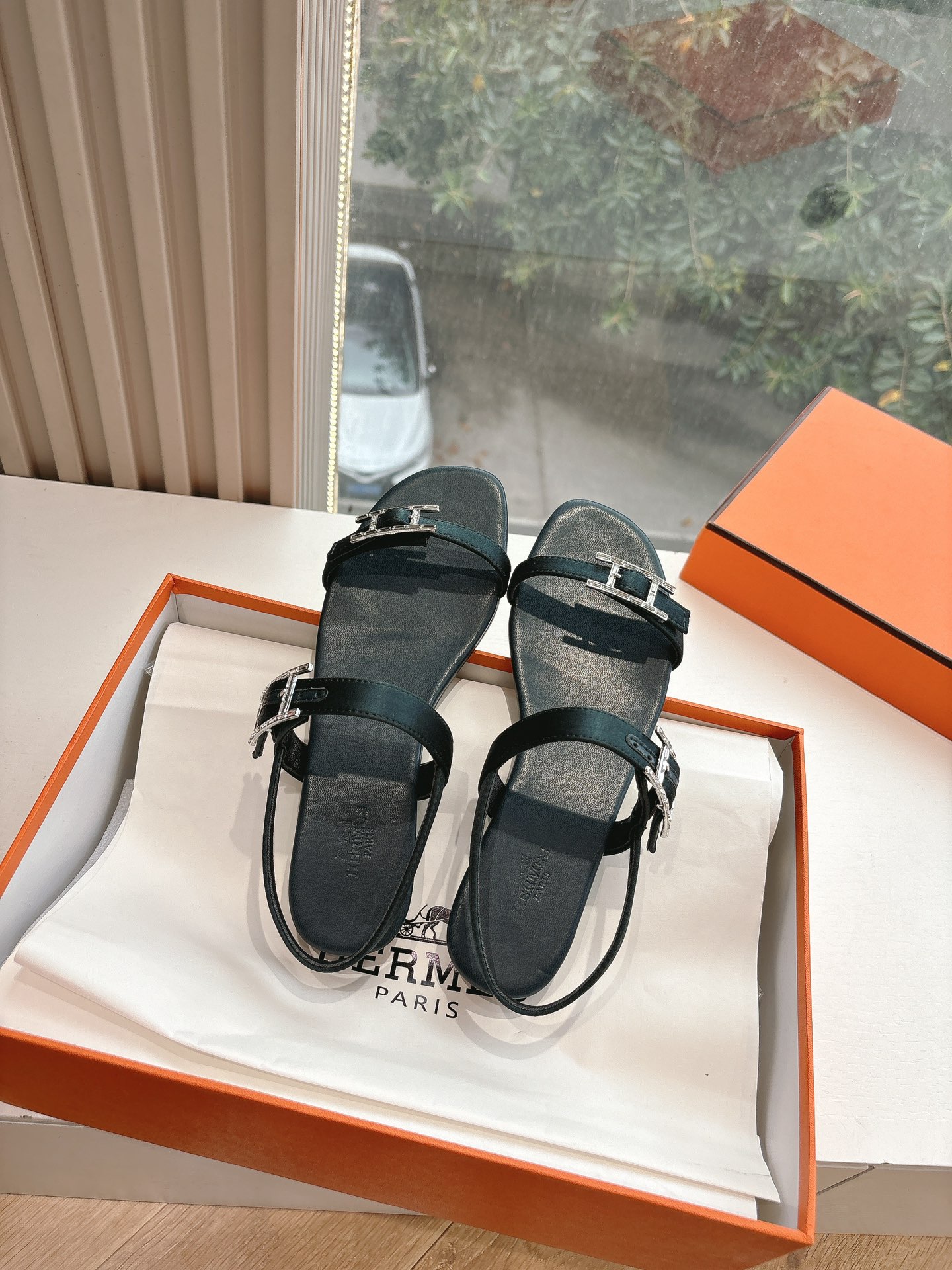 Hermès Chypre collection, retro-style slippers, H-shaped slippers, Velcro sandals.