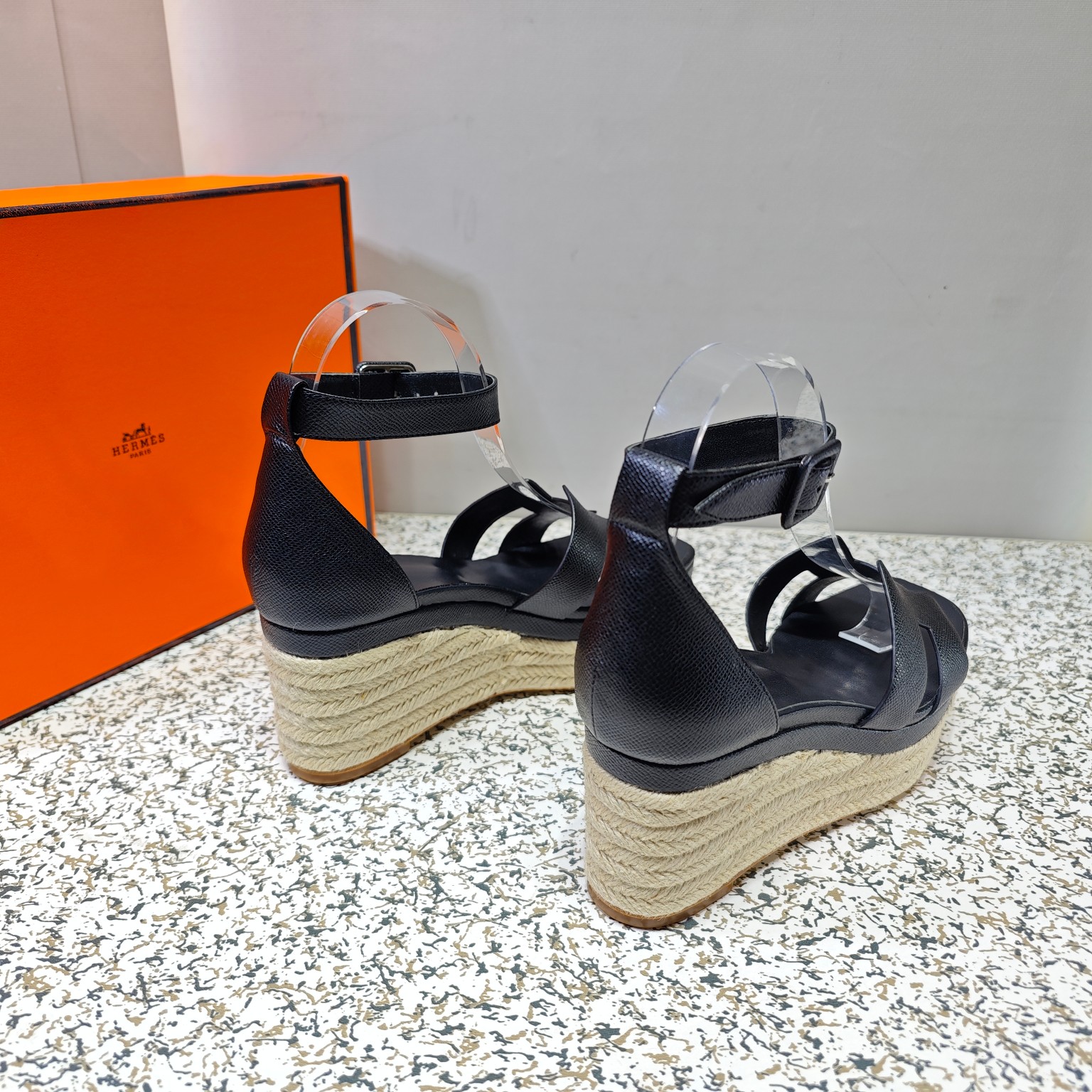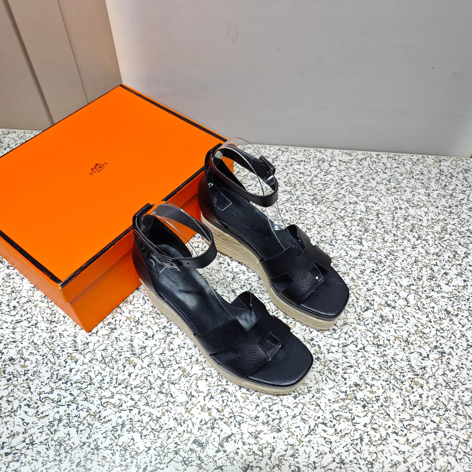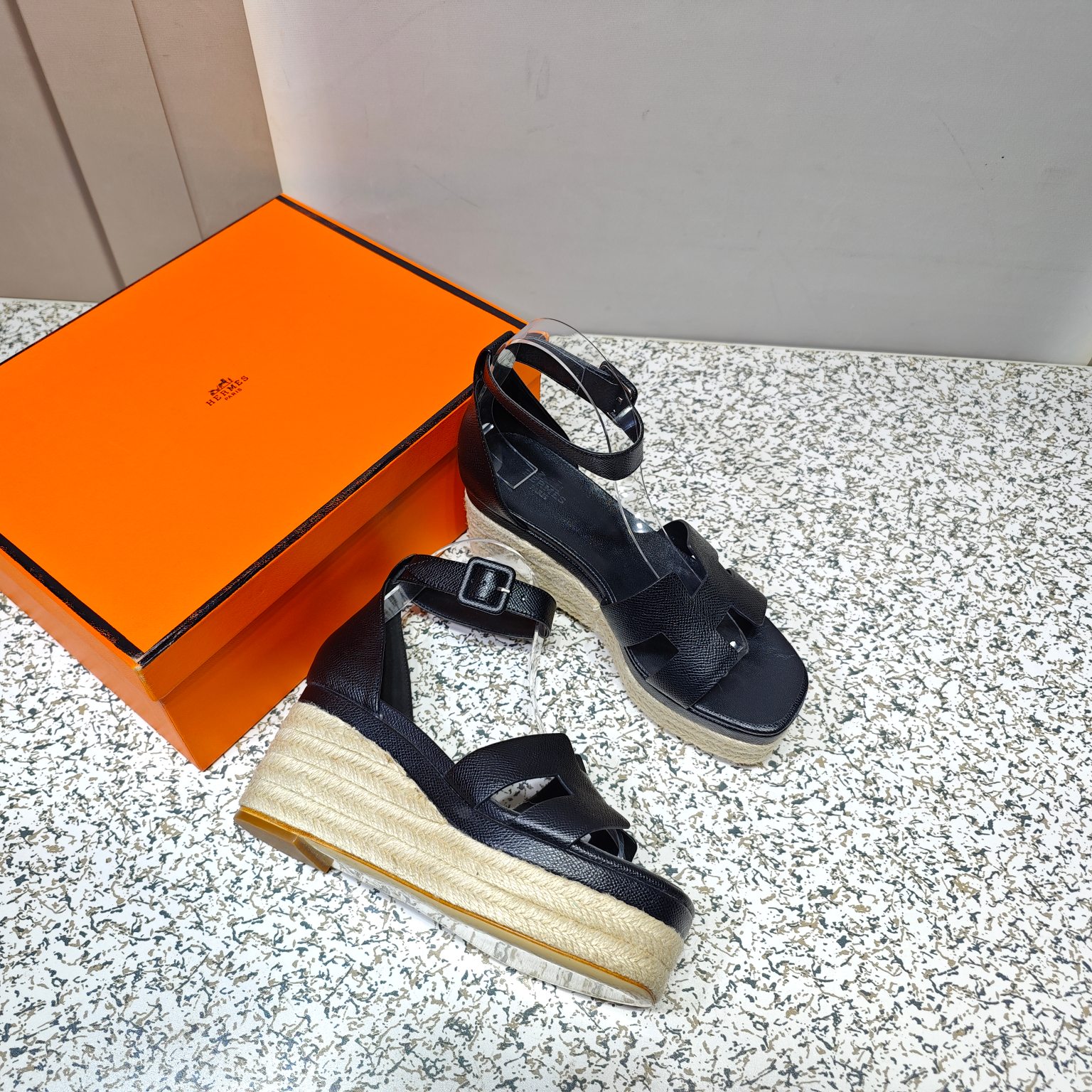 Hermès Espadrille series espadrille wedge sandals (black)