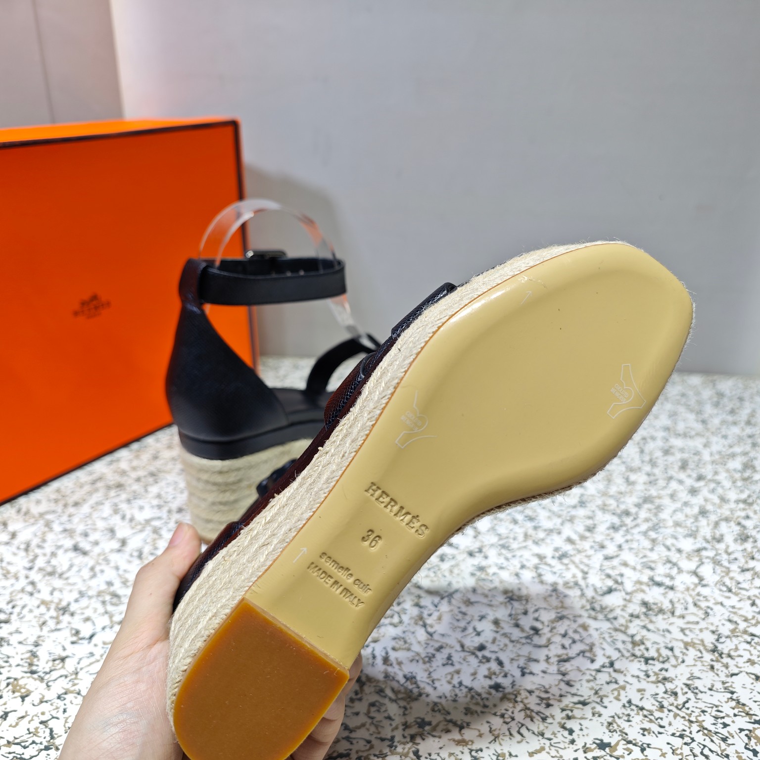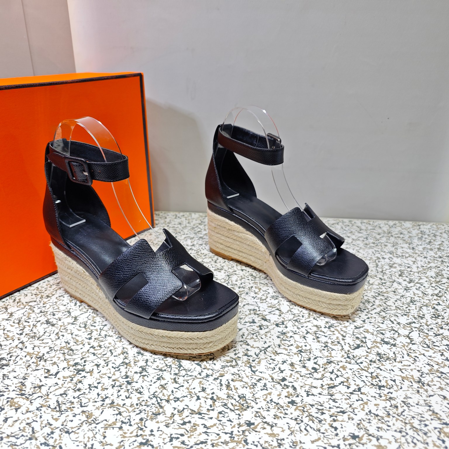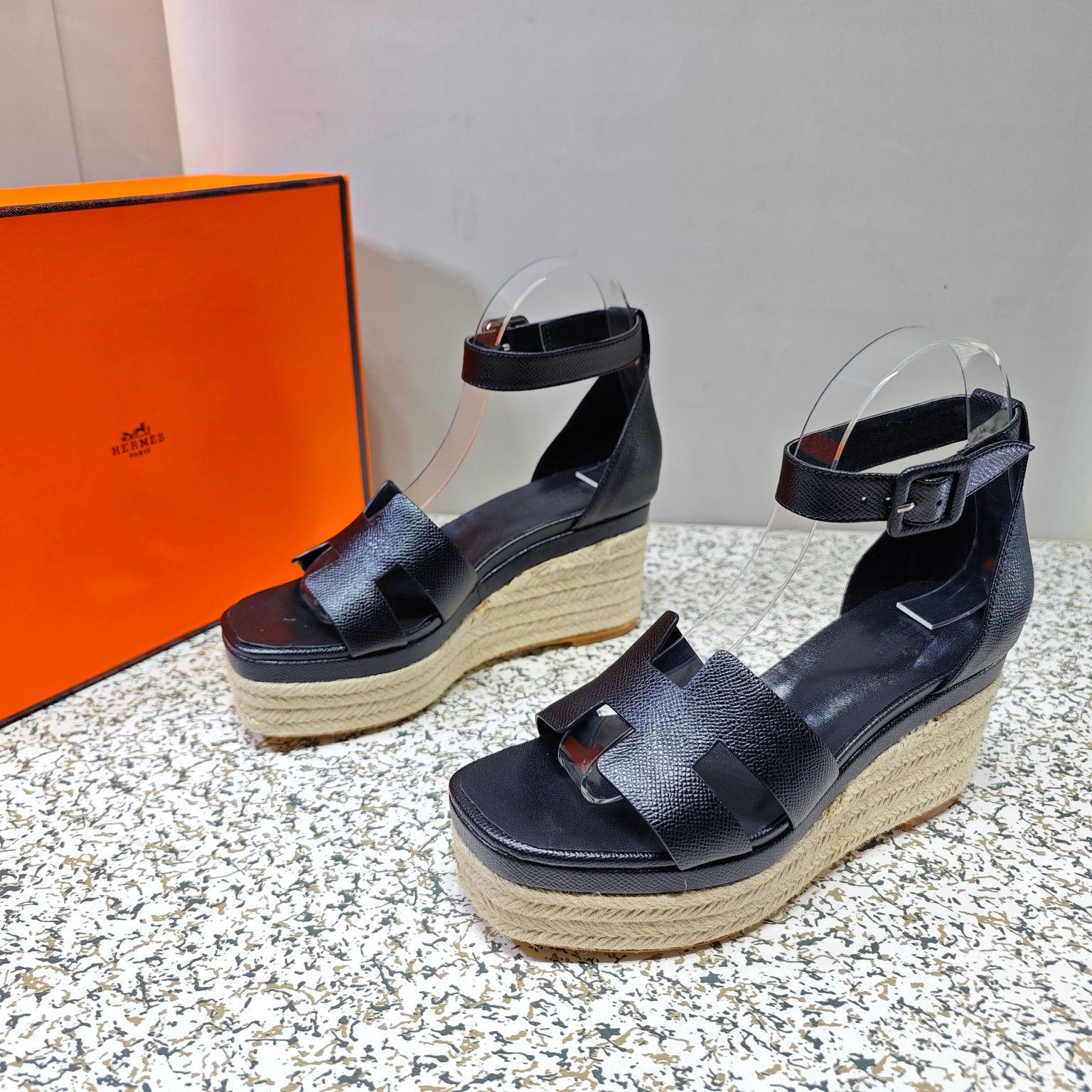 Hermès Espadrille series espadrille wedge sandals (black)
