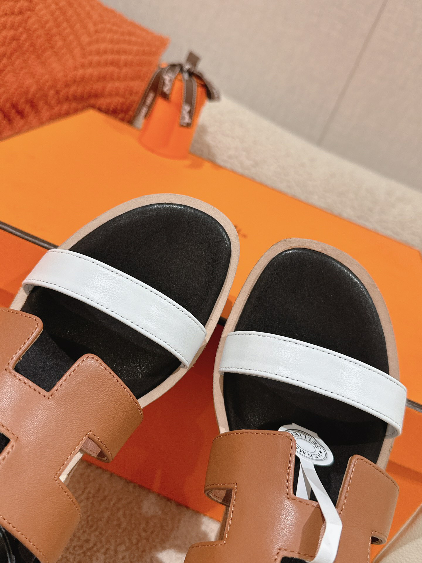 Hermès Chypre collection, retro-style slippers, H-shaped slippers, Velcro sandals.