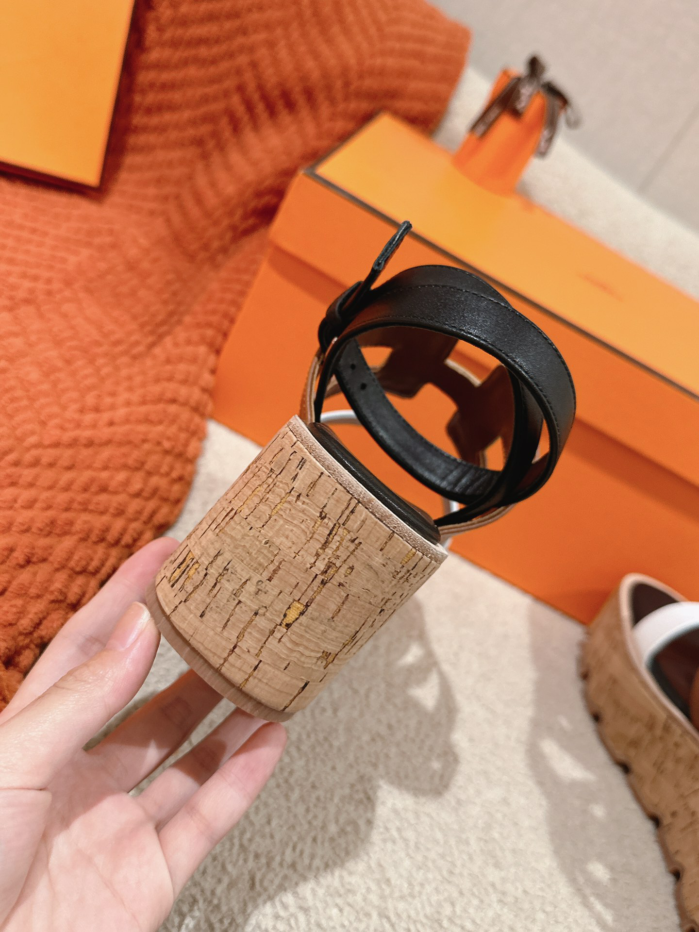 Features: The signature “H” shaped leather trim and a comfortable, lightweight cork wedge heel (approximately 30mm (3cm) high) provide both height and elegance, making them ideal for summer styling.