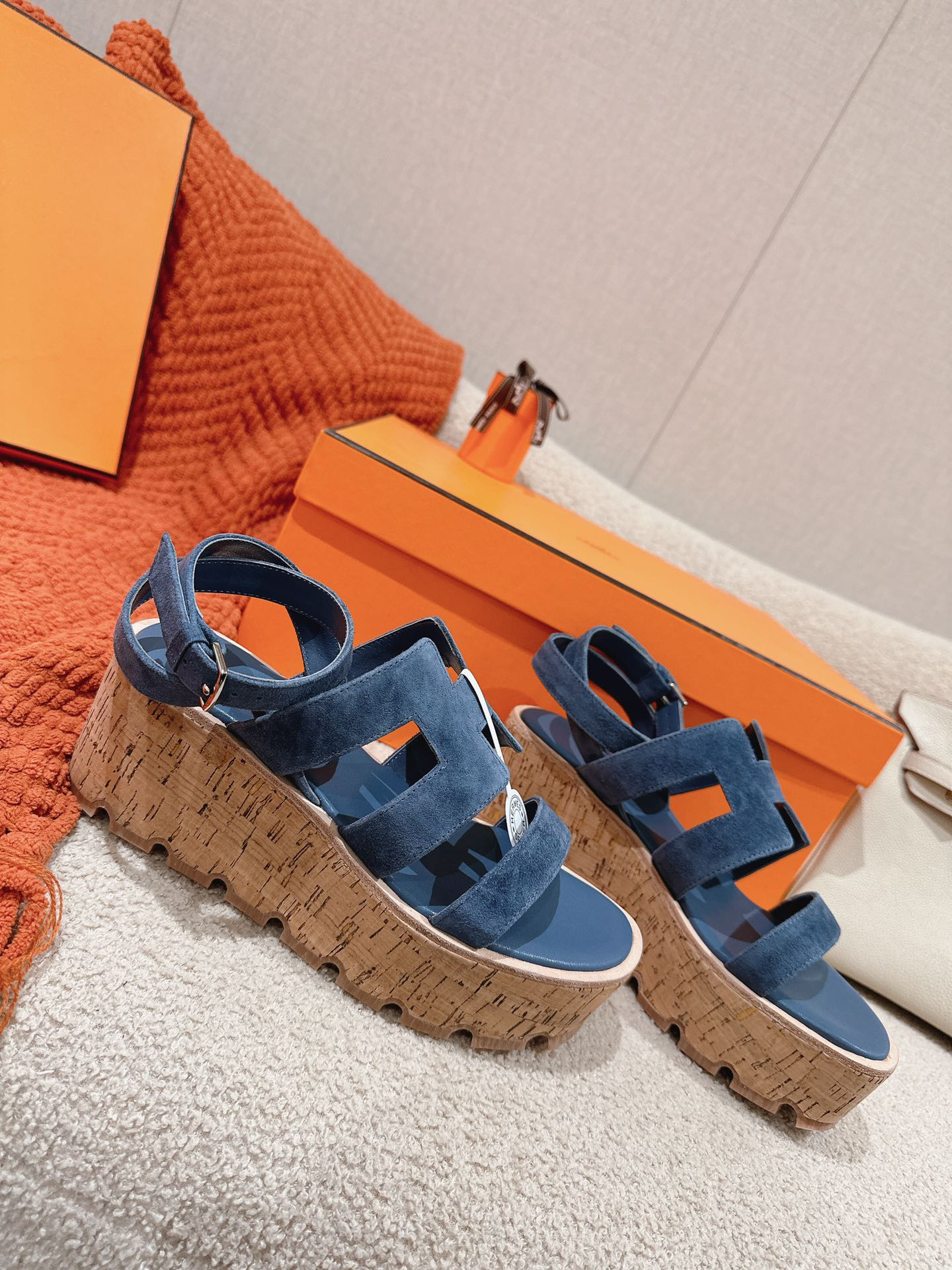 Features: The iconic “H” shaped upper design, comfortable and snug wedge heel, and added height.