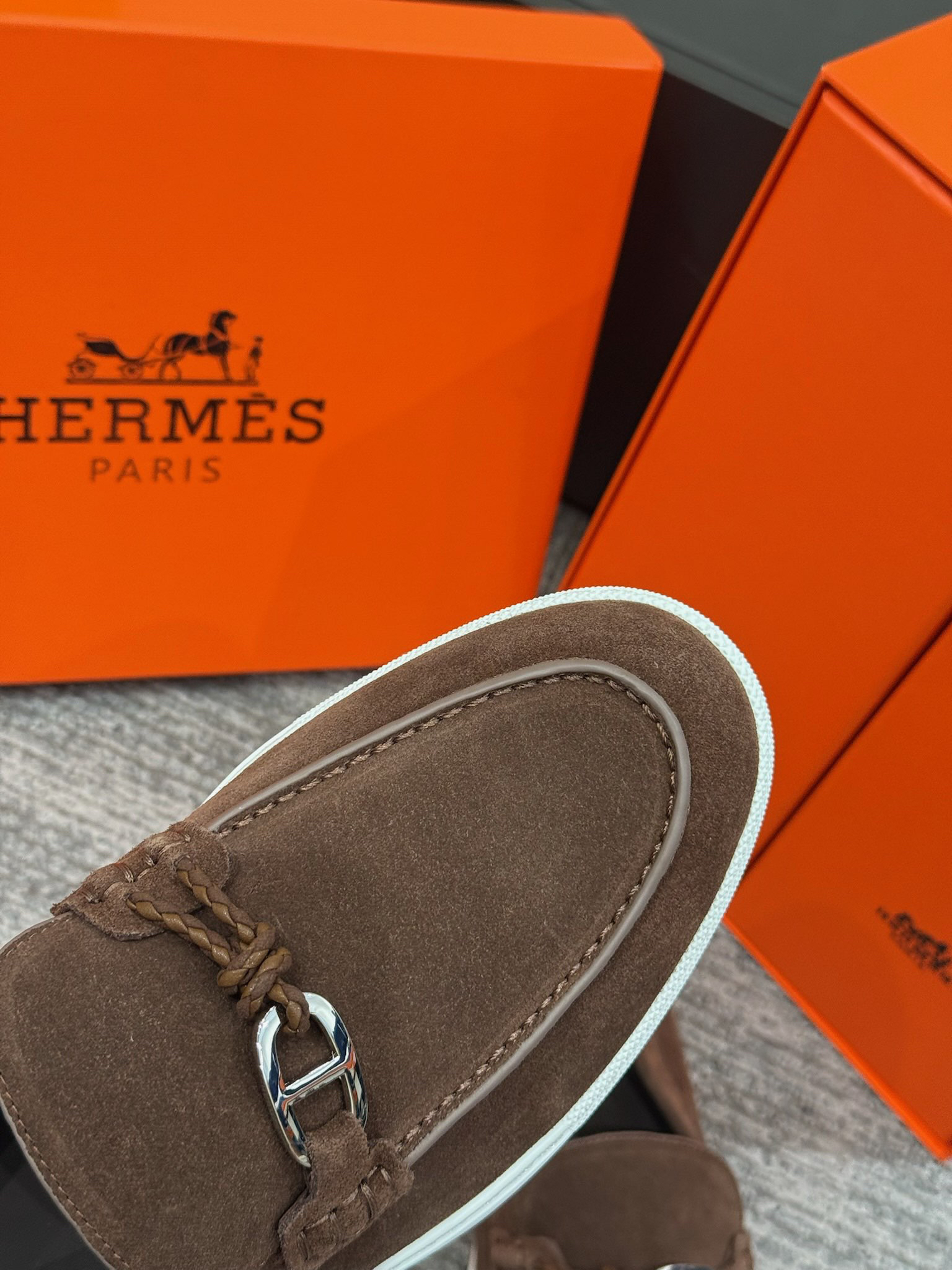 $143.00Hermès Chypre series goatskin suede functional sandals, featuring an ergonomic rubber sole and adjustable laces. The simple, streamlined design creates a comfortable and casual look.