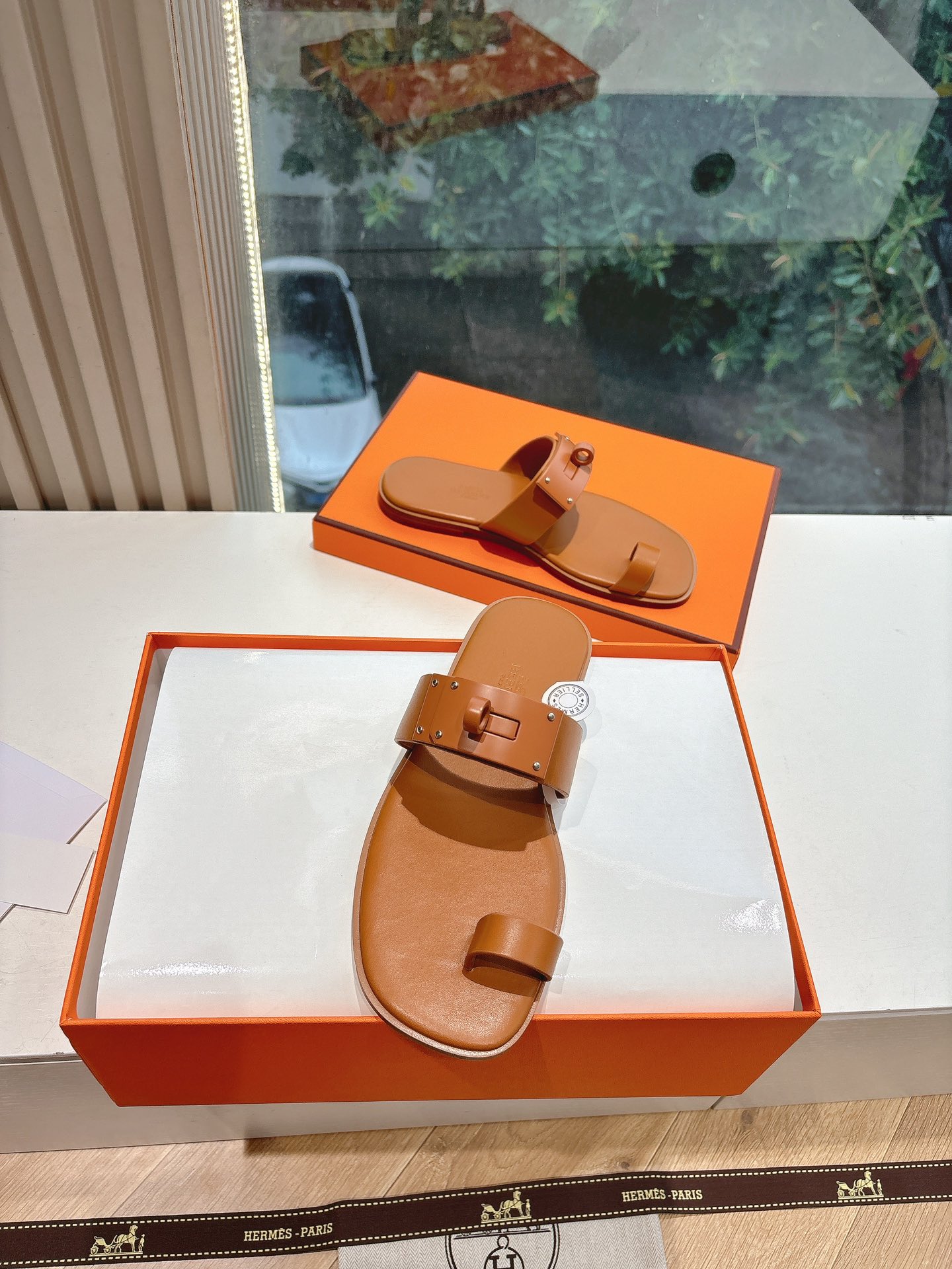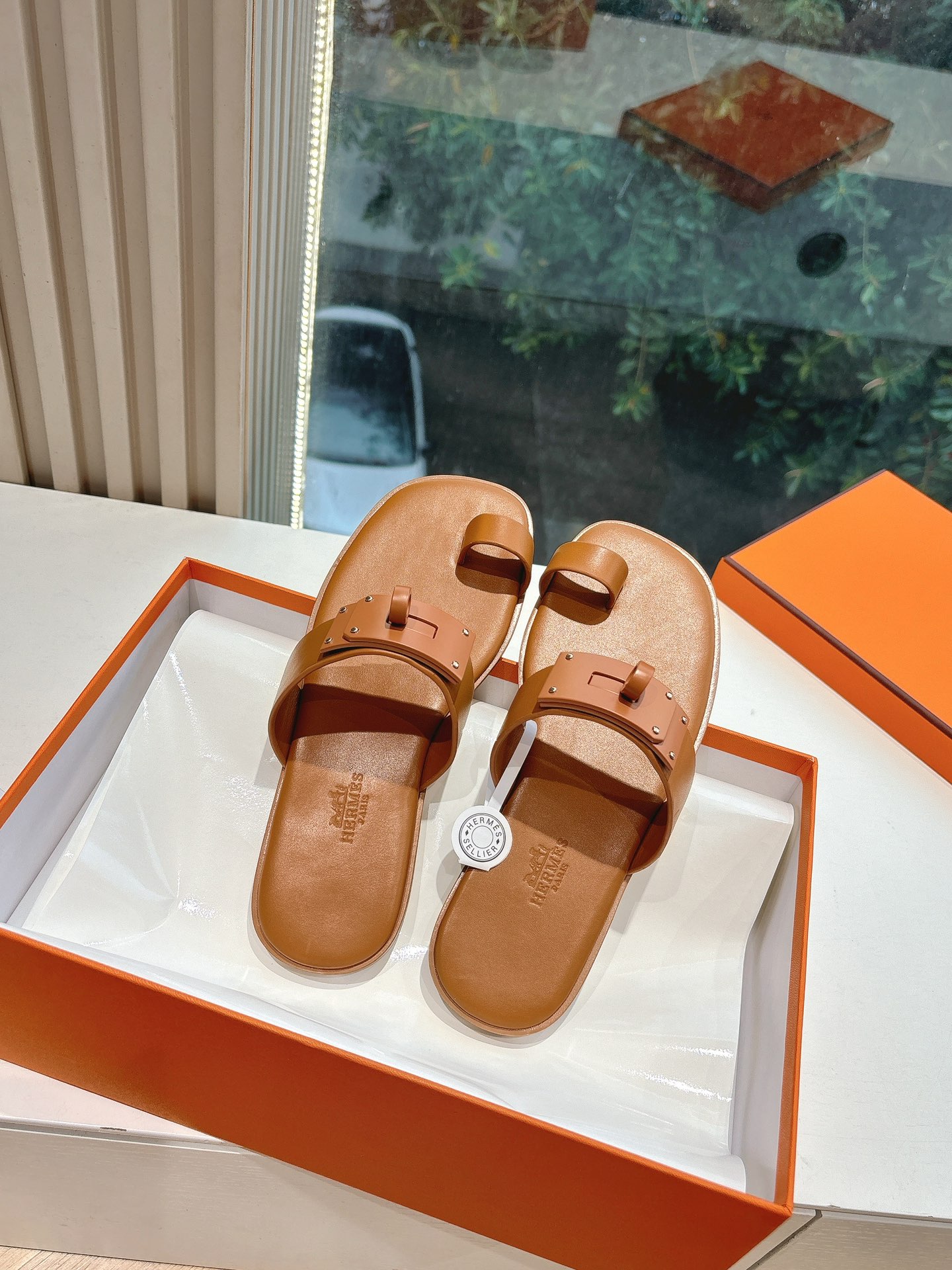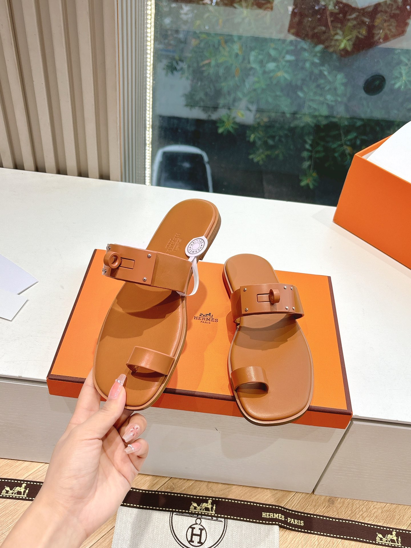 Hermes Chypre series, vintage-style slippers, H-shaped slippers, Velcro sandals.
