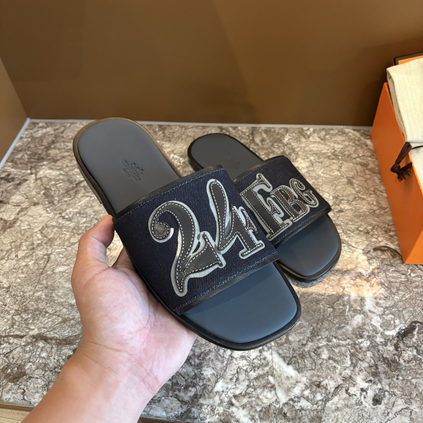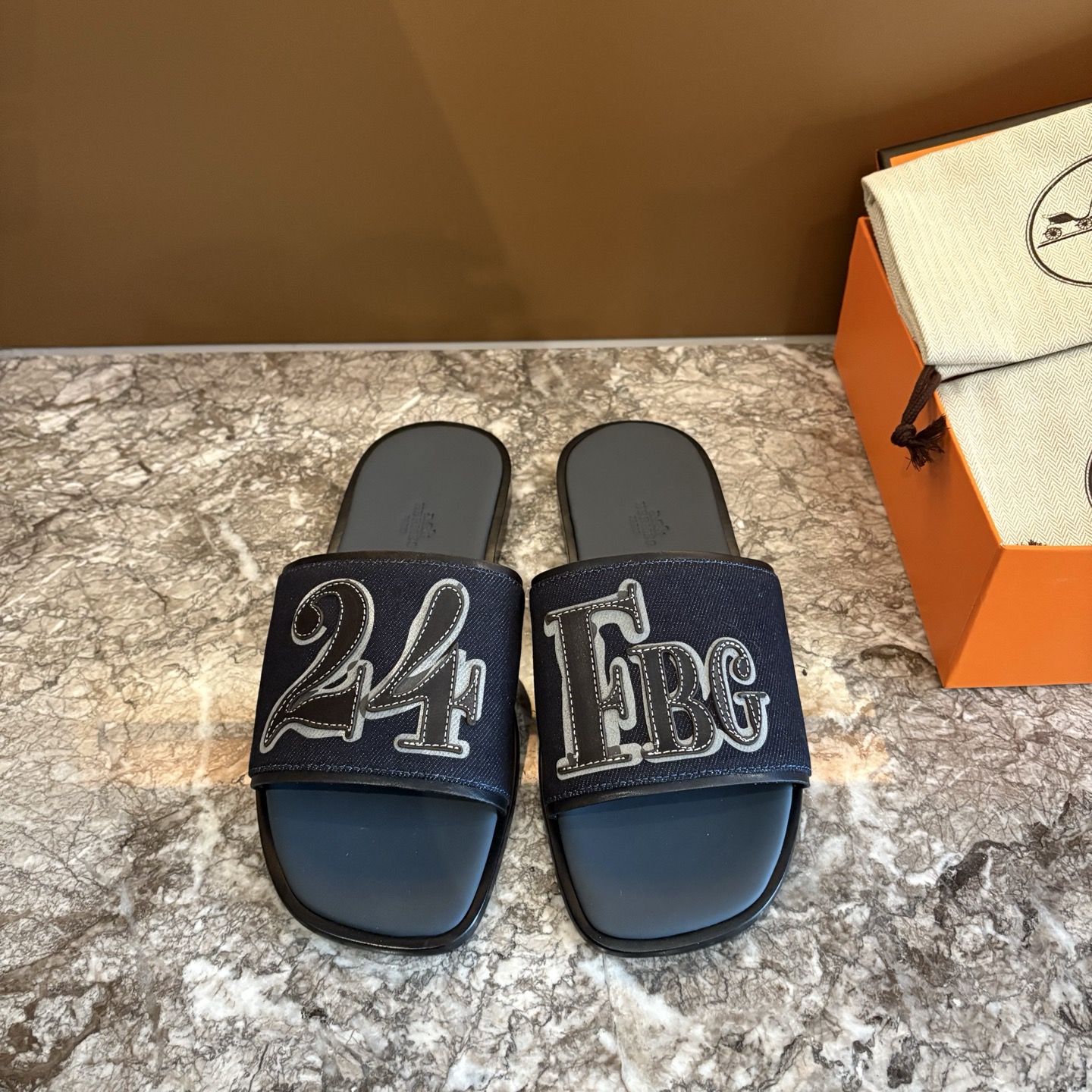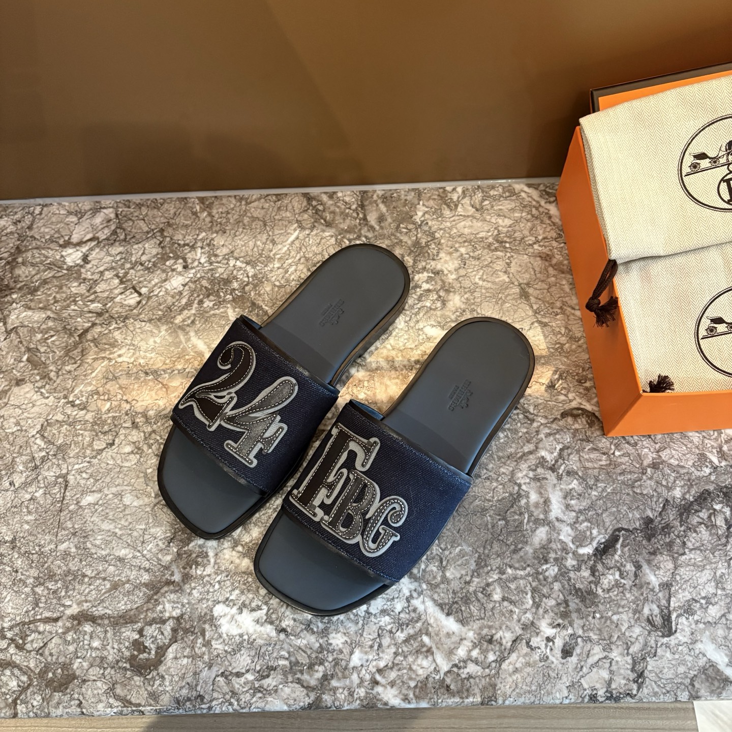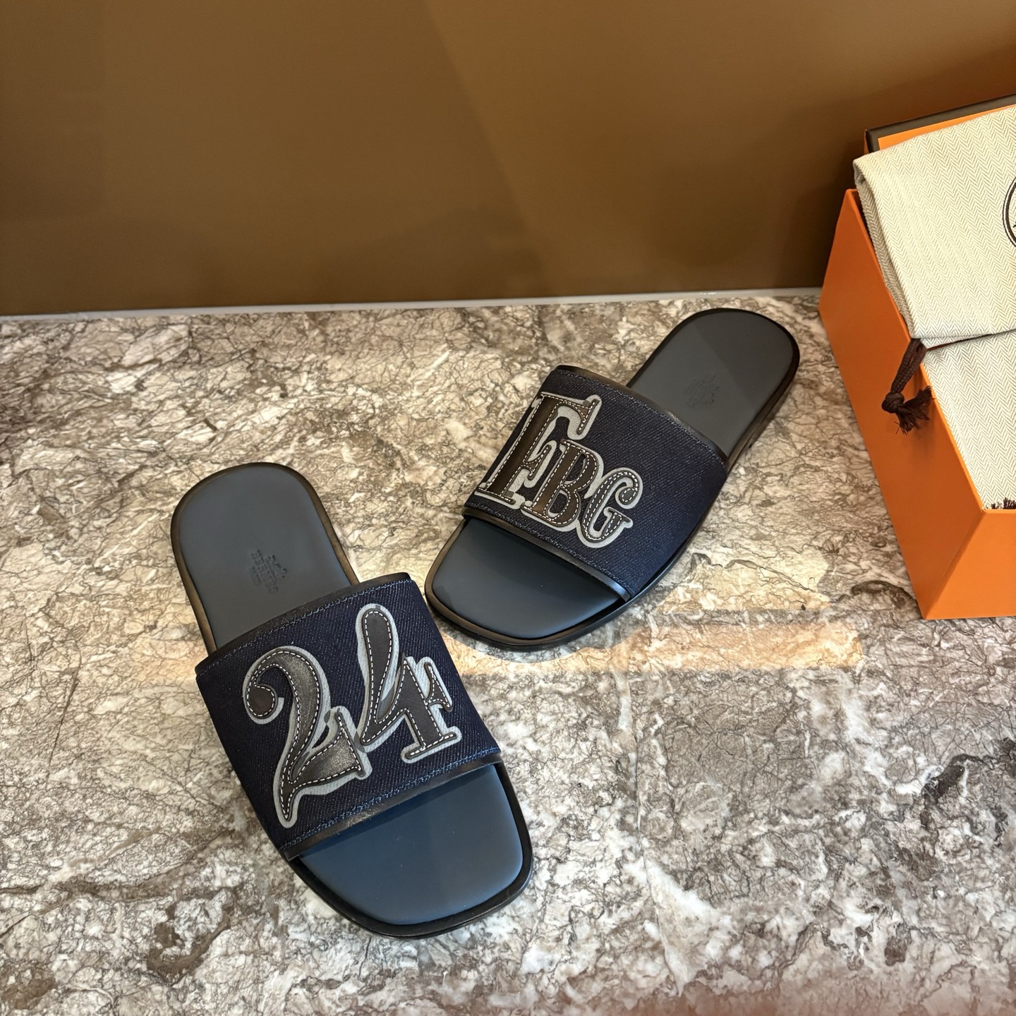 Hermes Chypre series, vintage-style slippers, H-shaped slippers, Velcro sandals.