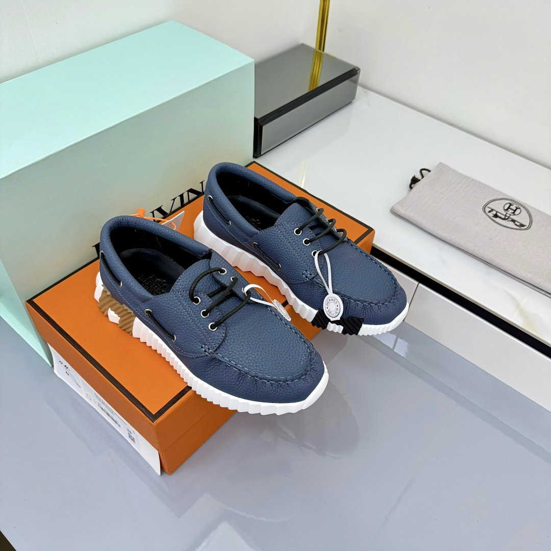 Features: These casual lace-up boat shoes feature a white rubber sole with contrasting rubber inserts (black and orange) for a modern and versatile look.
