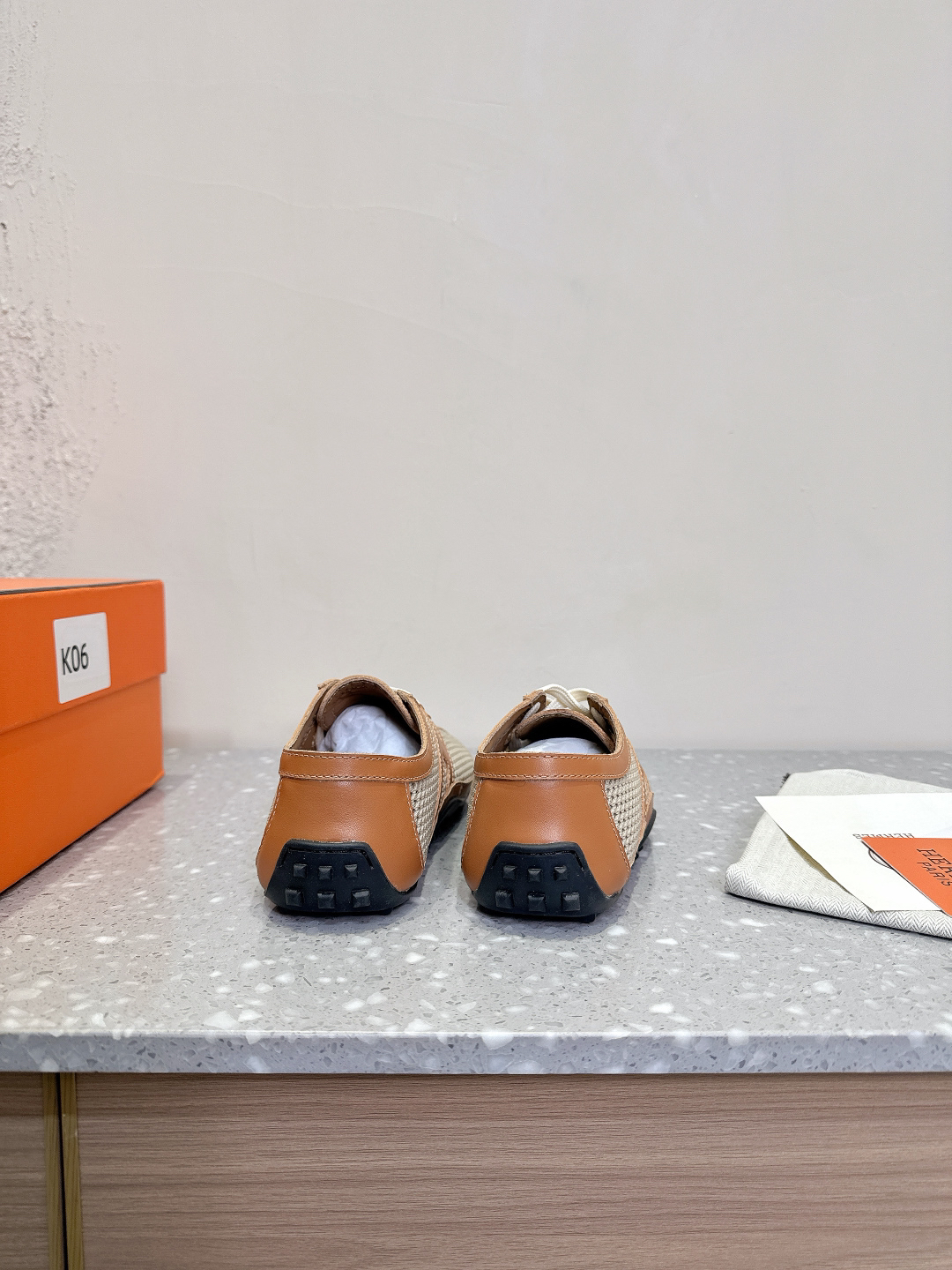 Colors: The color scheme shown is beige and natural tones with a black rubber sole.
