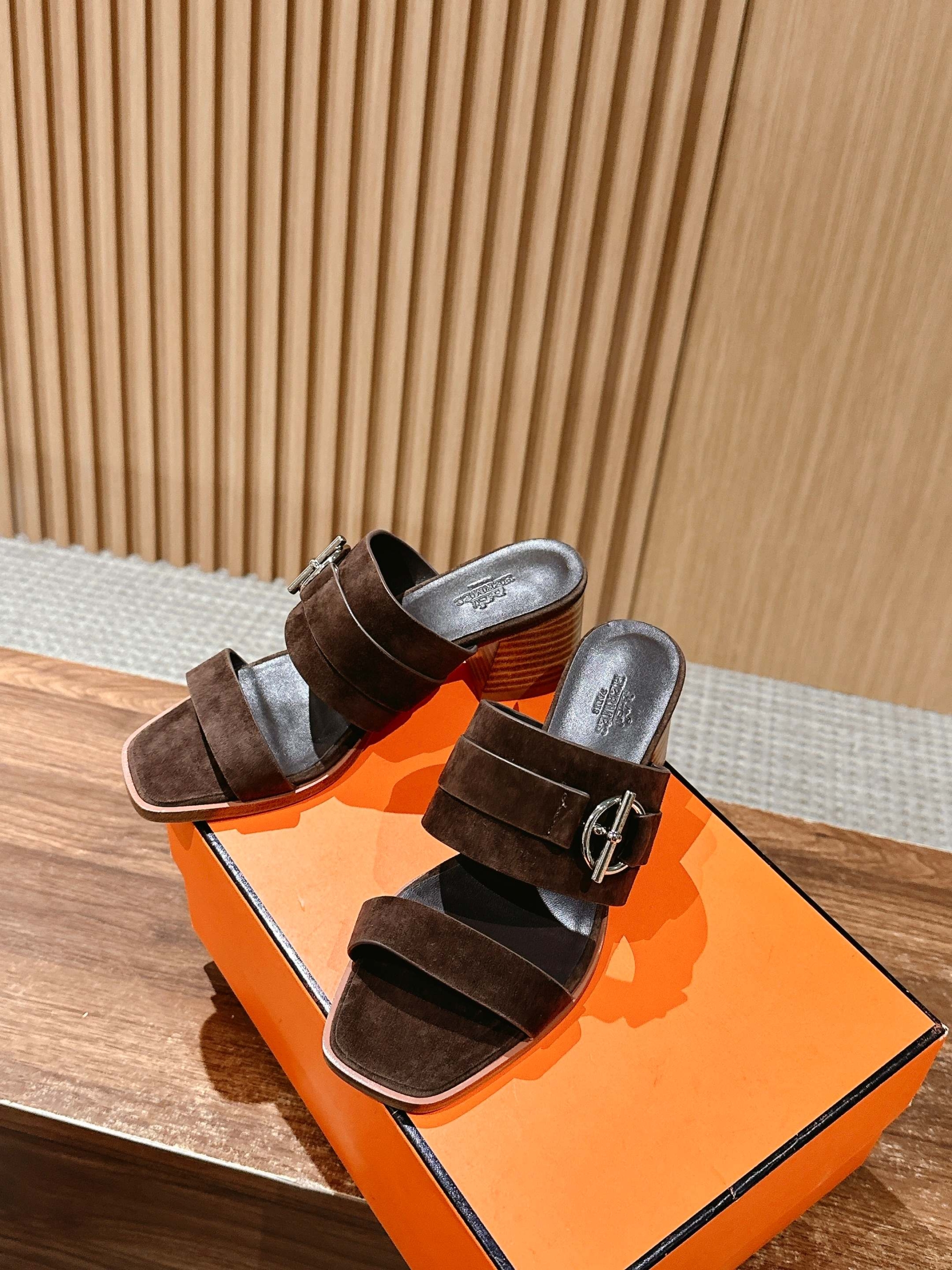 Hermes Chypre series, vintage-style slippers, H-shaped slippers, Velcro sandals.