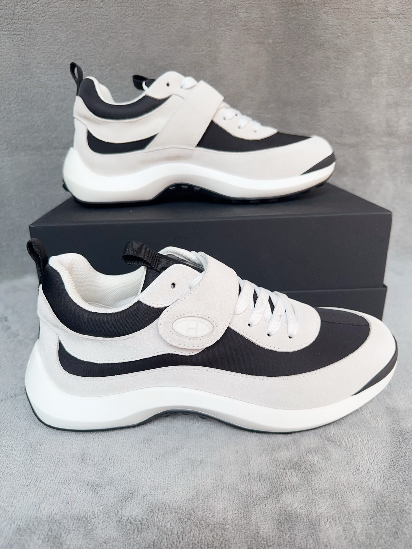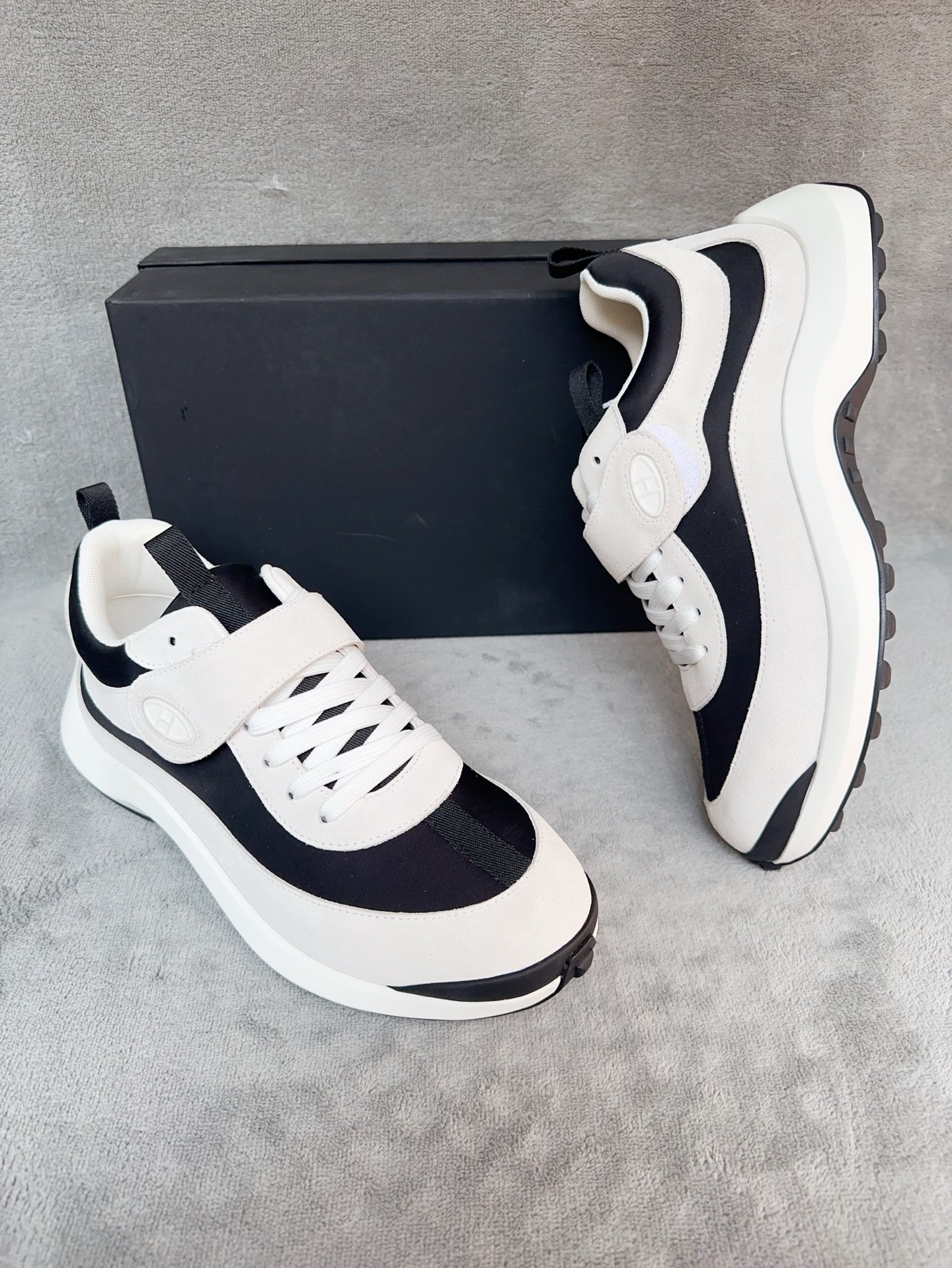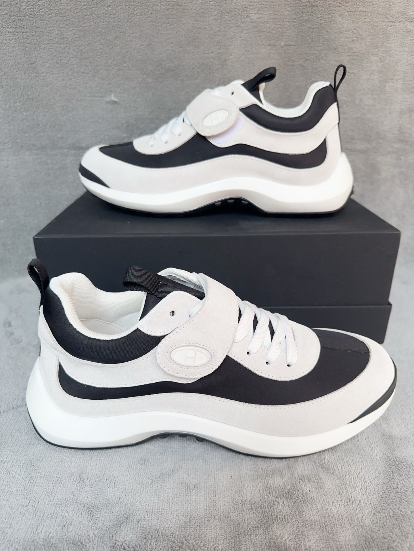 Unique brand-exclusive leather patchwork and custom fabrics, along with the brand logo on the tongue, create a striking three-dimensional look. A soft, comfortable sole is paired with a T-shaped outsole.