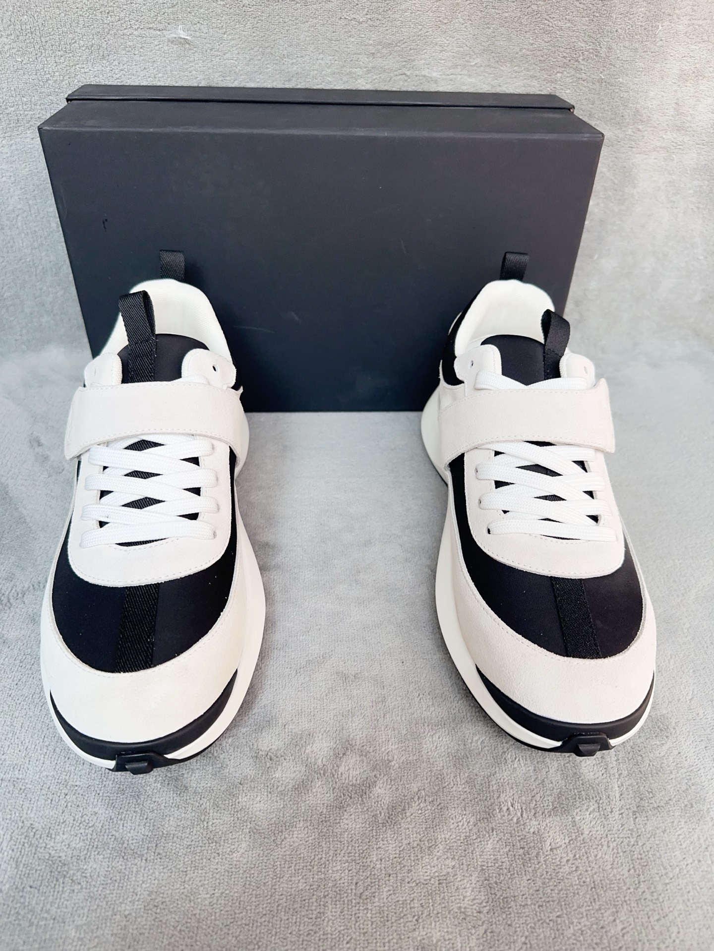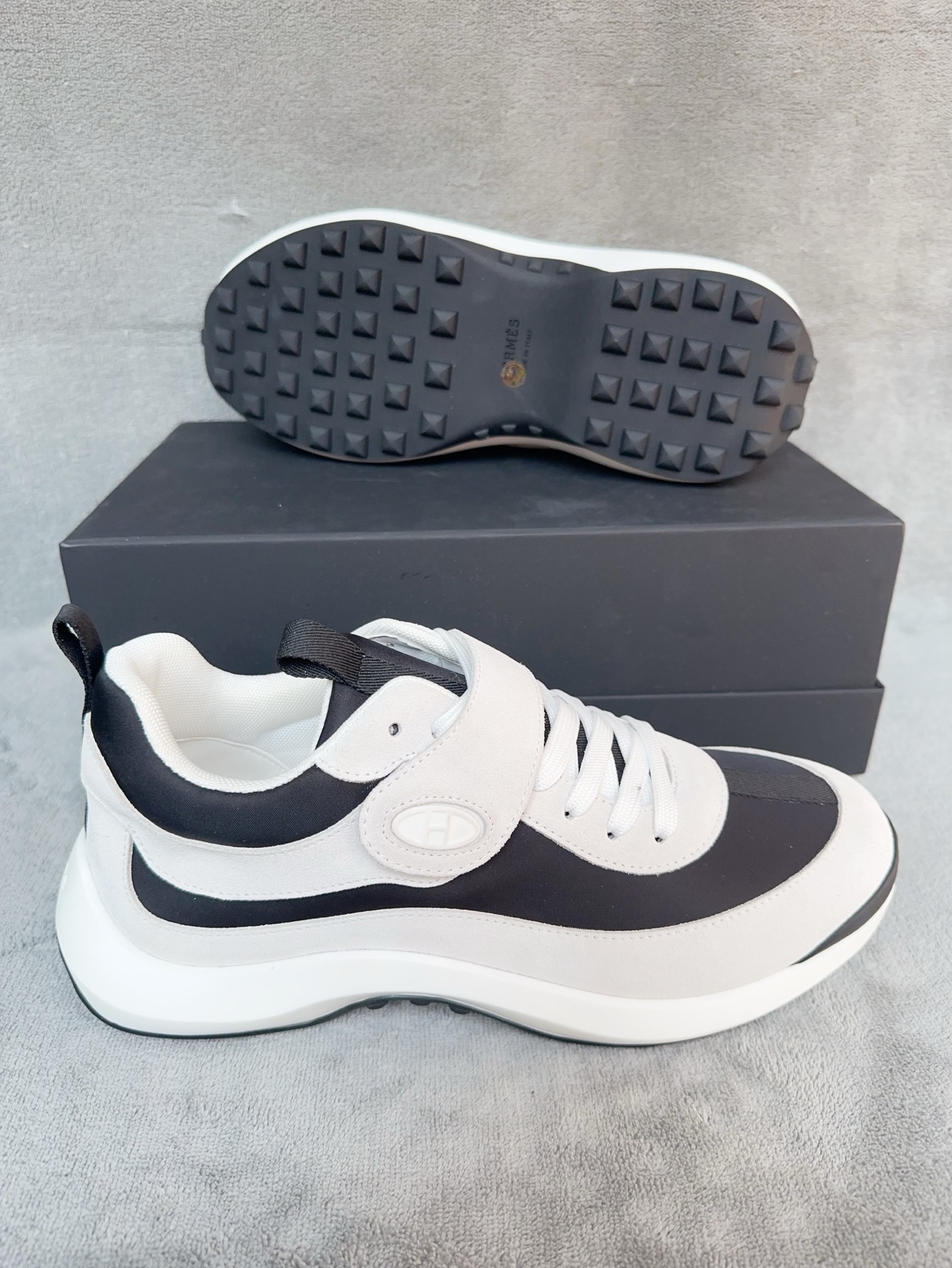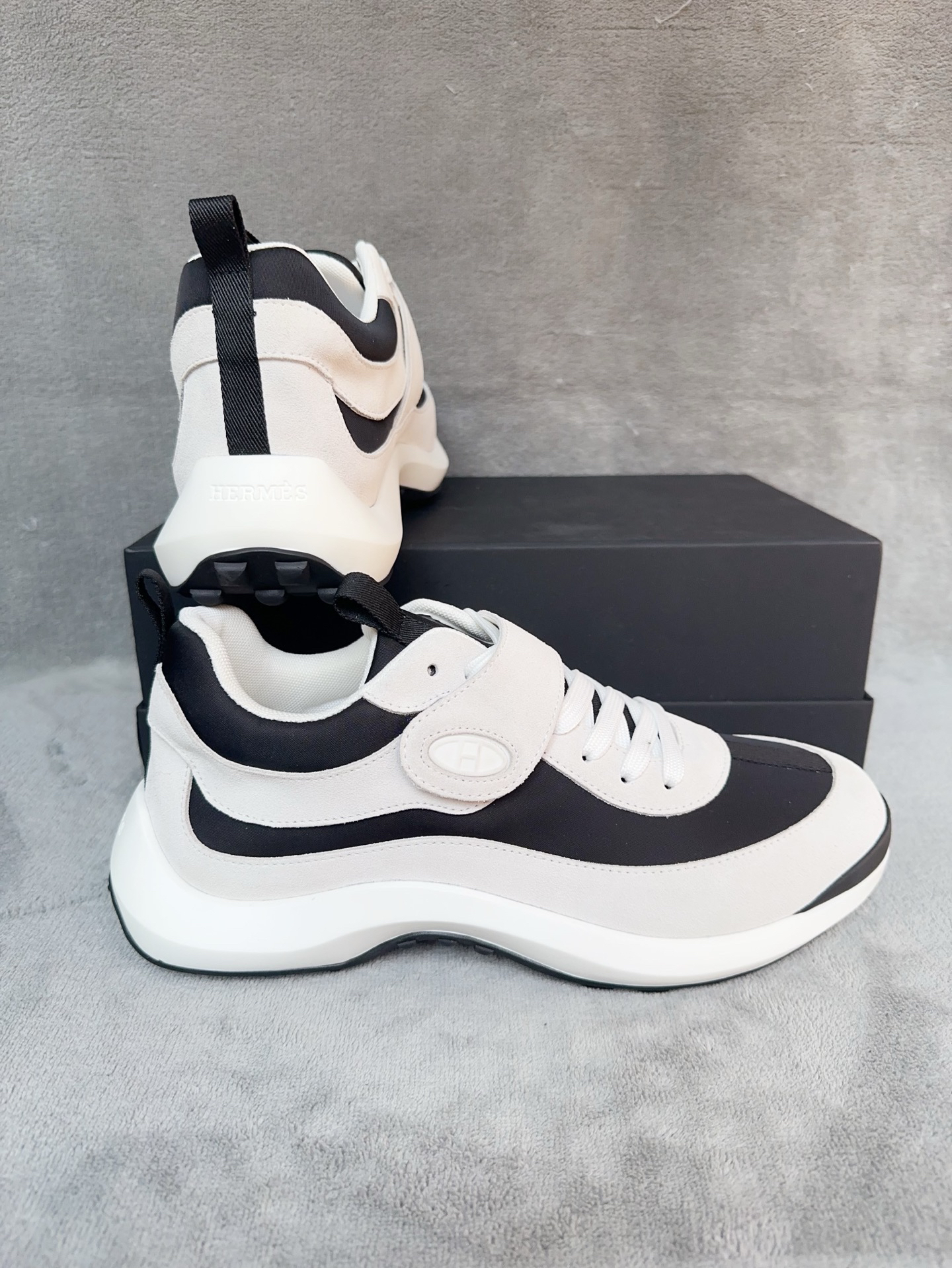 Unique brand-exclusive leather patchwork and custom fabrics, along with the brand logo on the tongue, create a striking three-dimensional look. A soft, comfortable sole is paired with a T-shaped outsole.