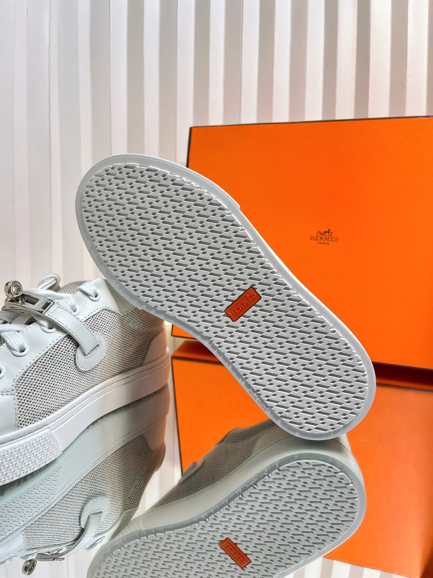 These flat casual shoes feature the classic palladium-plated Kelly buckle! Perfect for a chic urban look, showcasing Hermès’ exquisite elegance!