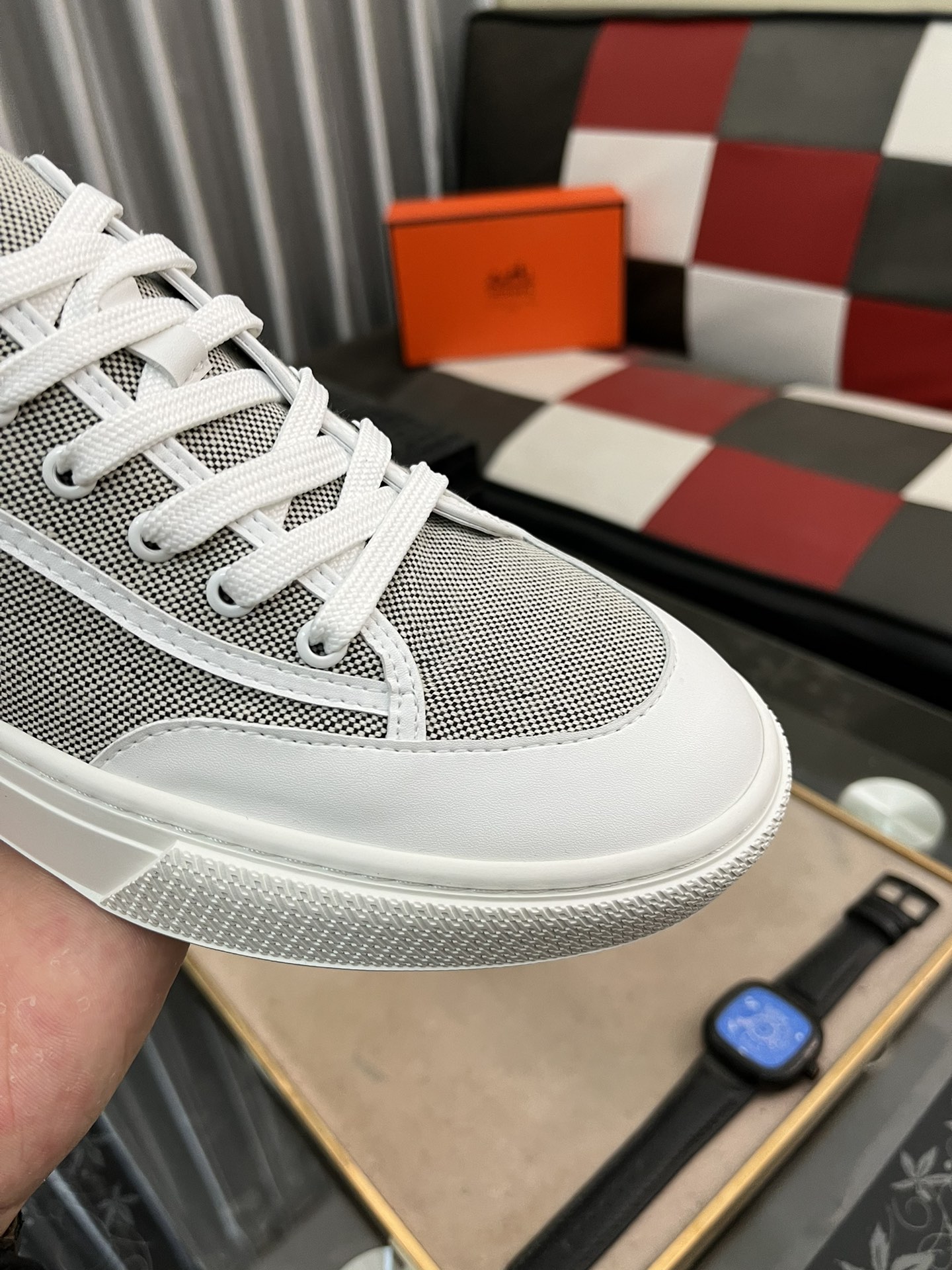 Description: These sneakers are crafted from a combination of high-tech twill, calfskin, and goatskin suede.