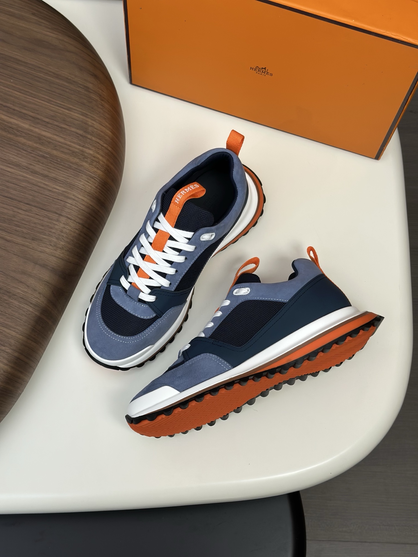 Description: These sneakers are crafted from a combination of high-tech twill, calfskin, and goatskin suede.