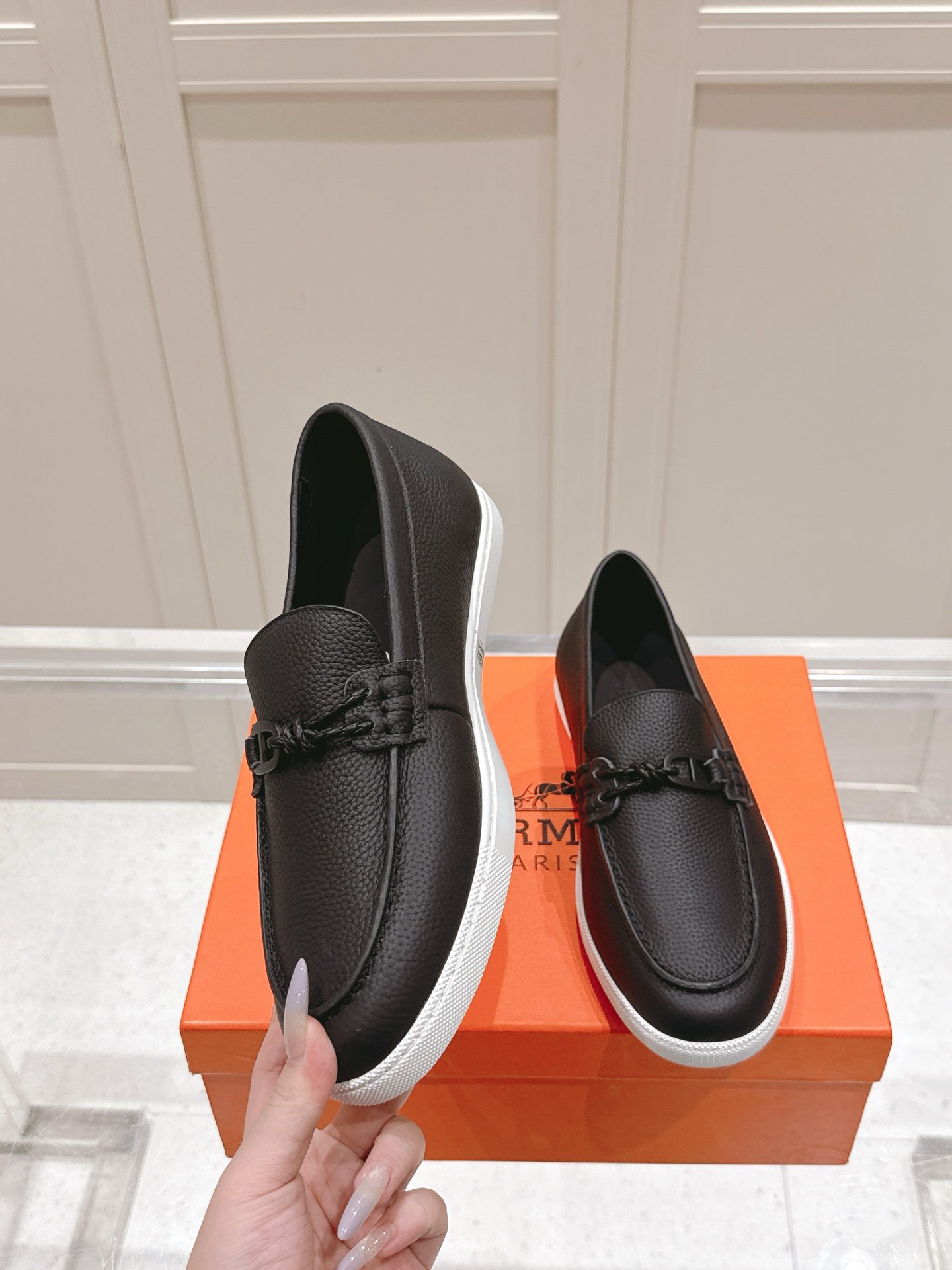 Calfskin loafers, adorned with leather woven straps and a “Chaine d’Ancre” buckle. Stylish nautical-inspired loafers, suitable for both land and sea.
