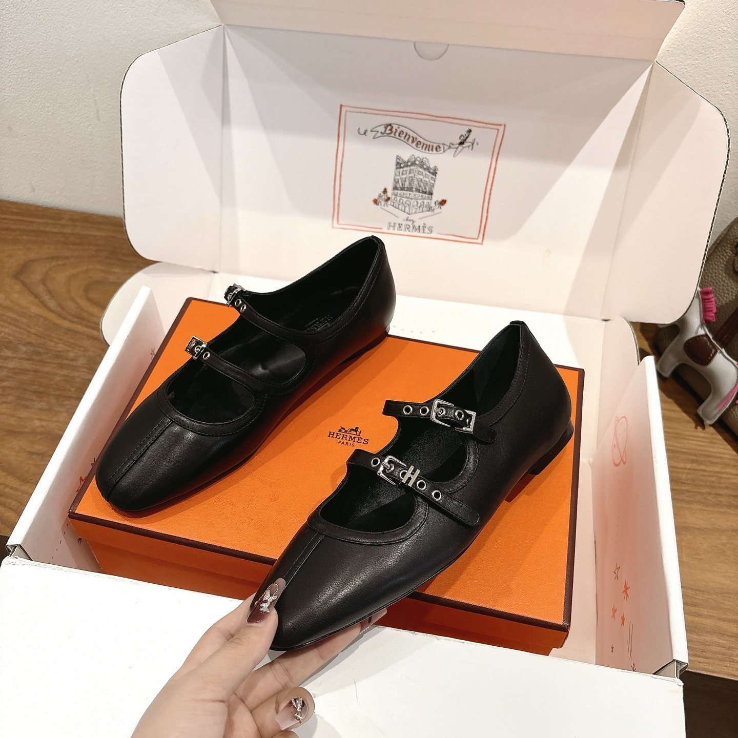 Features: Crafted from Nappa leather, these flats feature two iconic “H”-shaped palladium-plated silver buckles and contrasting piping.