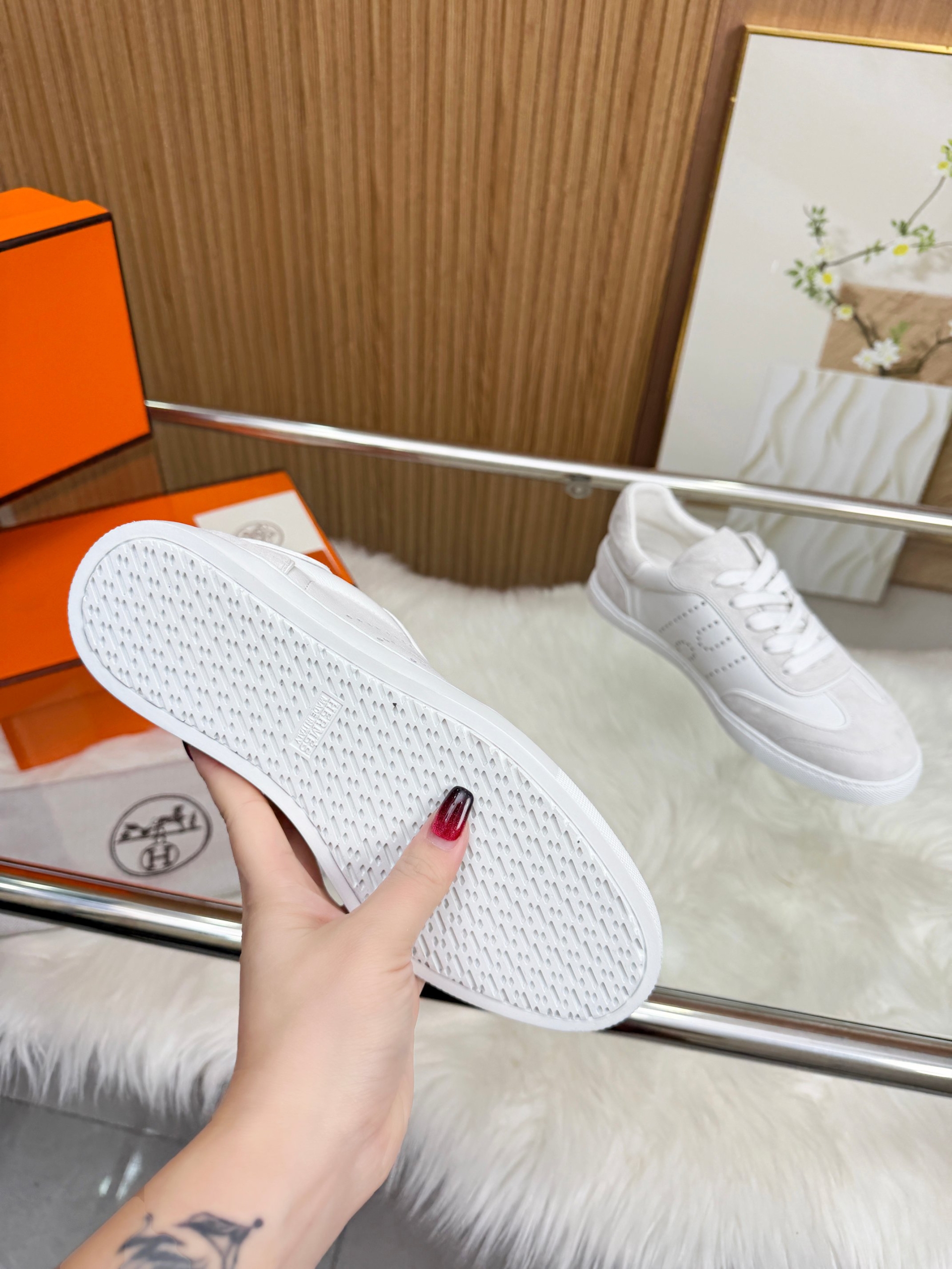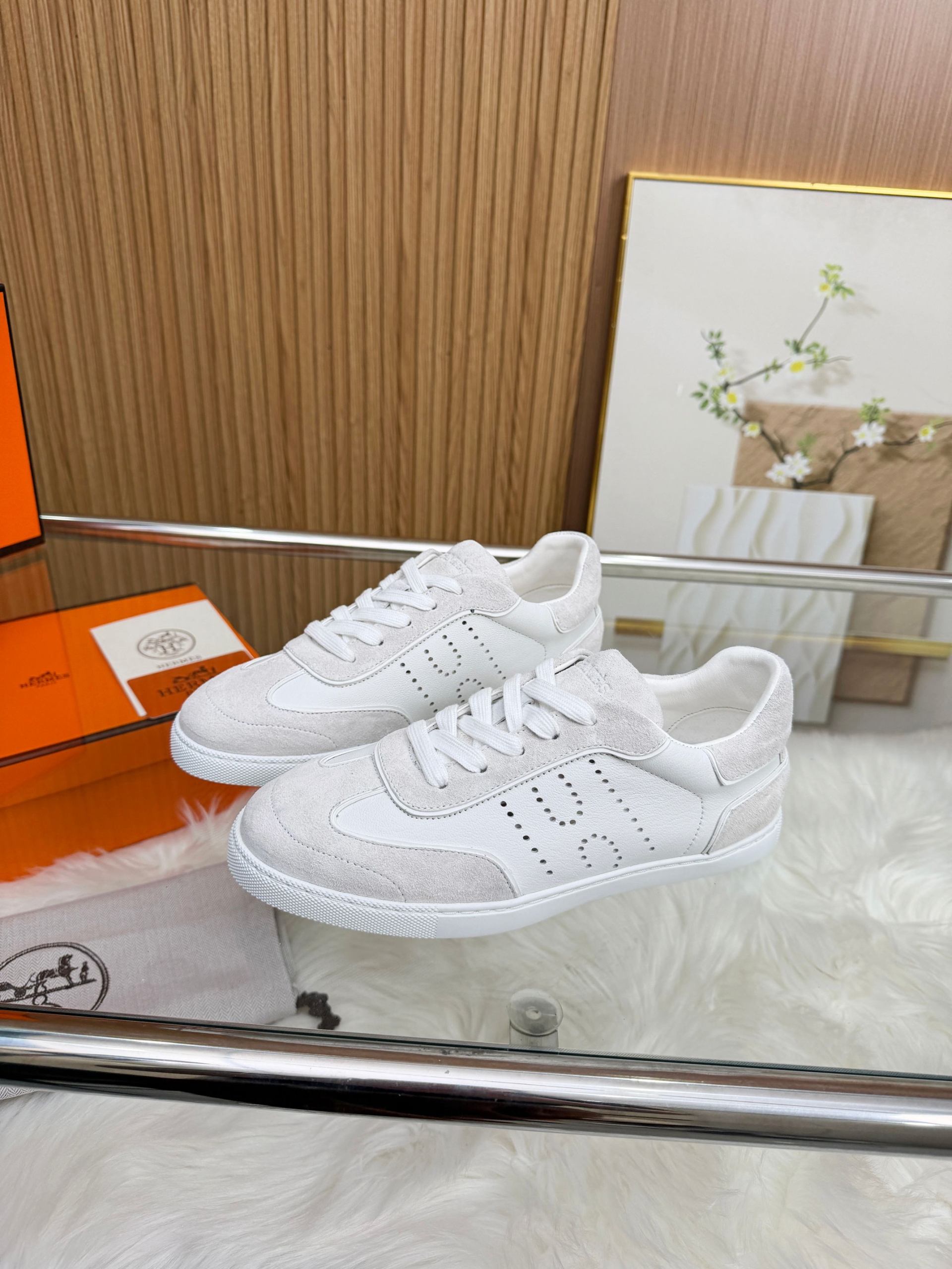 Features: These sneakers are crafted from smooth calfskin and suede goatskin (or sport goatskin). The iconic “H en Biais” logo adorns the side, and perforations add ventilation. The design is simple yet exudes a retro-urban charm.