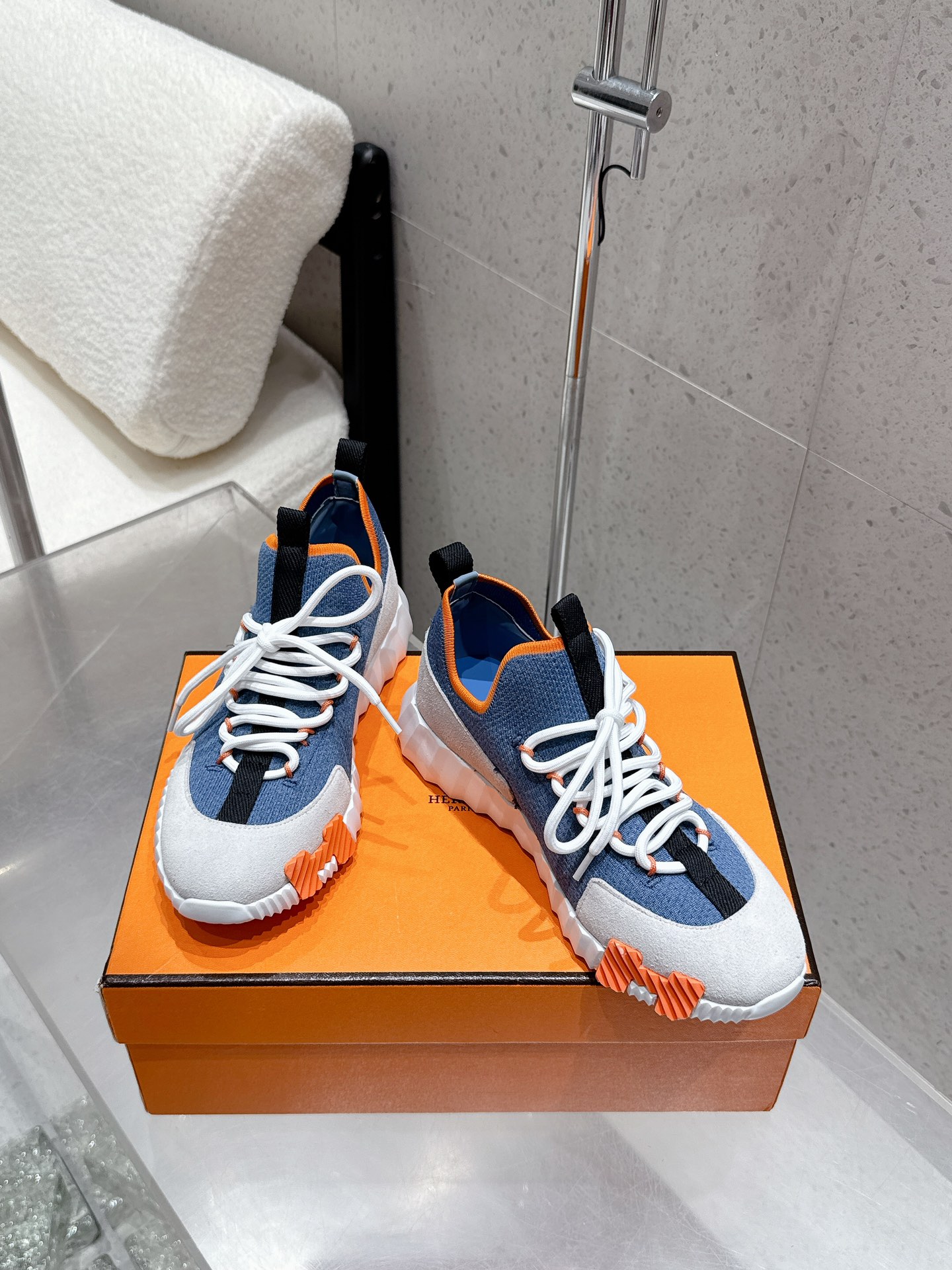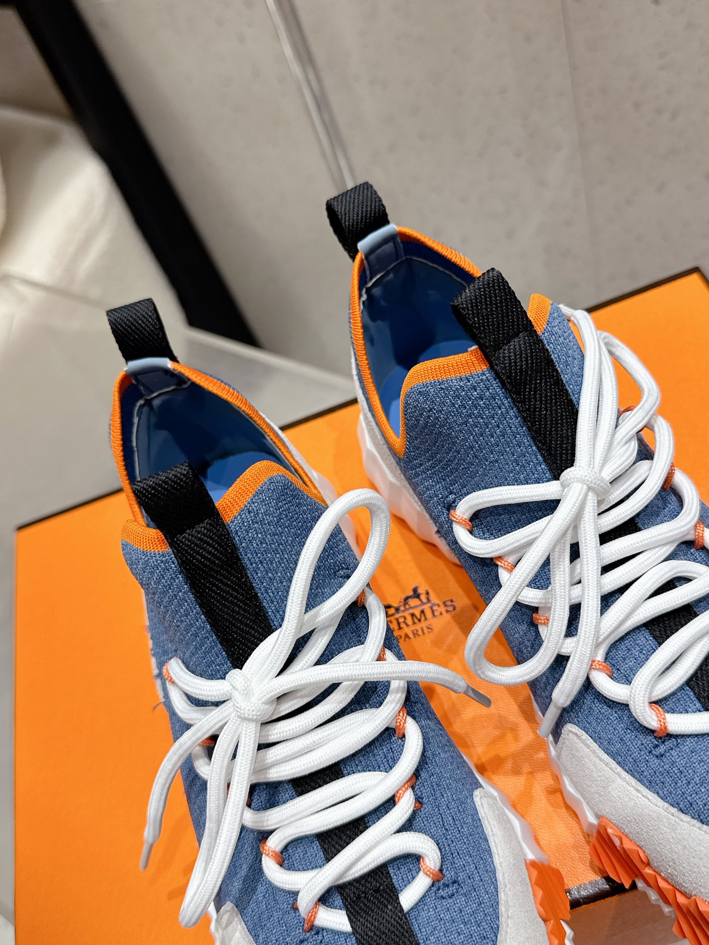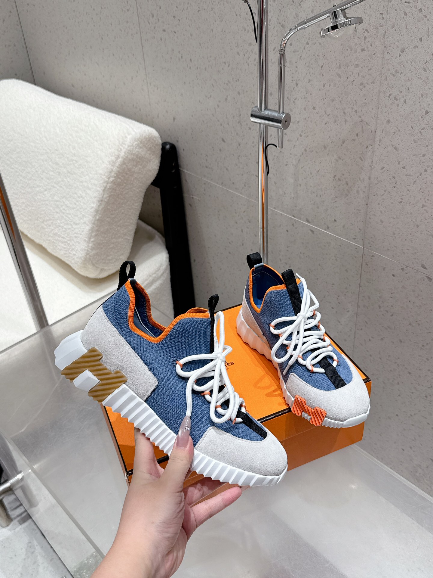 Hermes New Leather Mesh Lace-up White Couple Sneakers