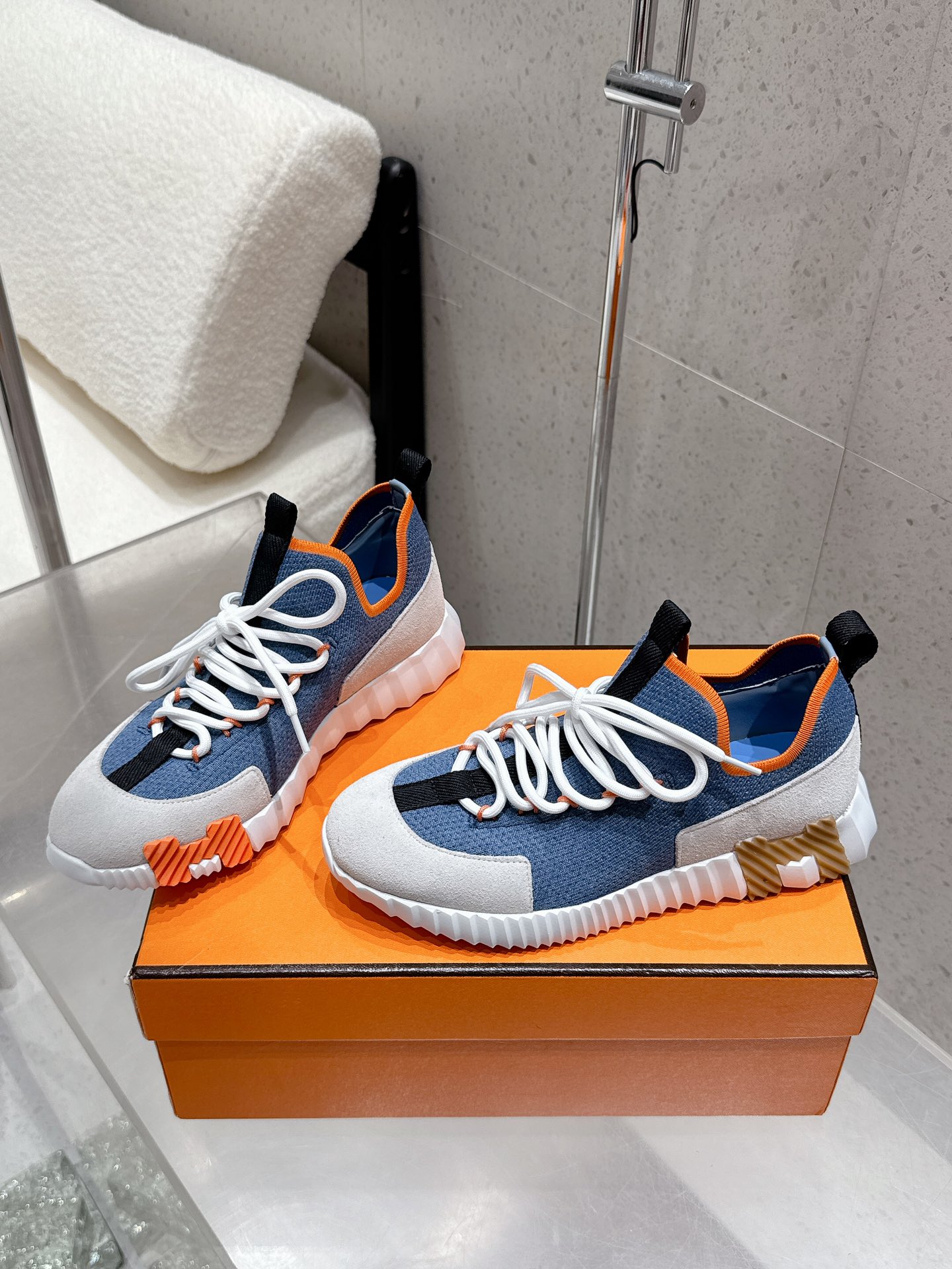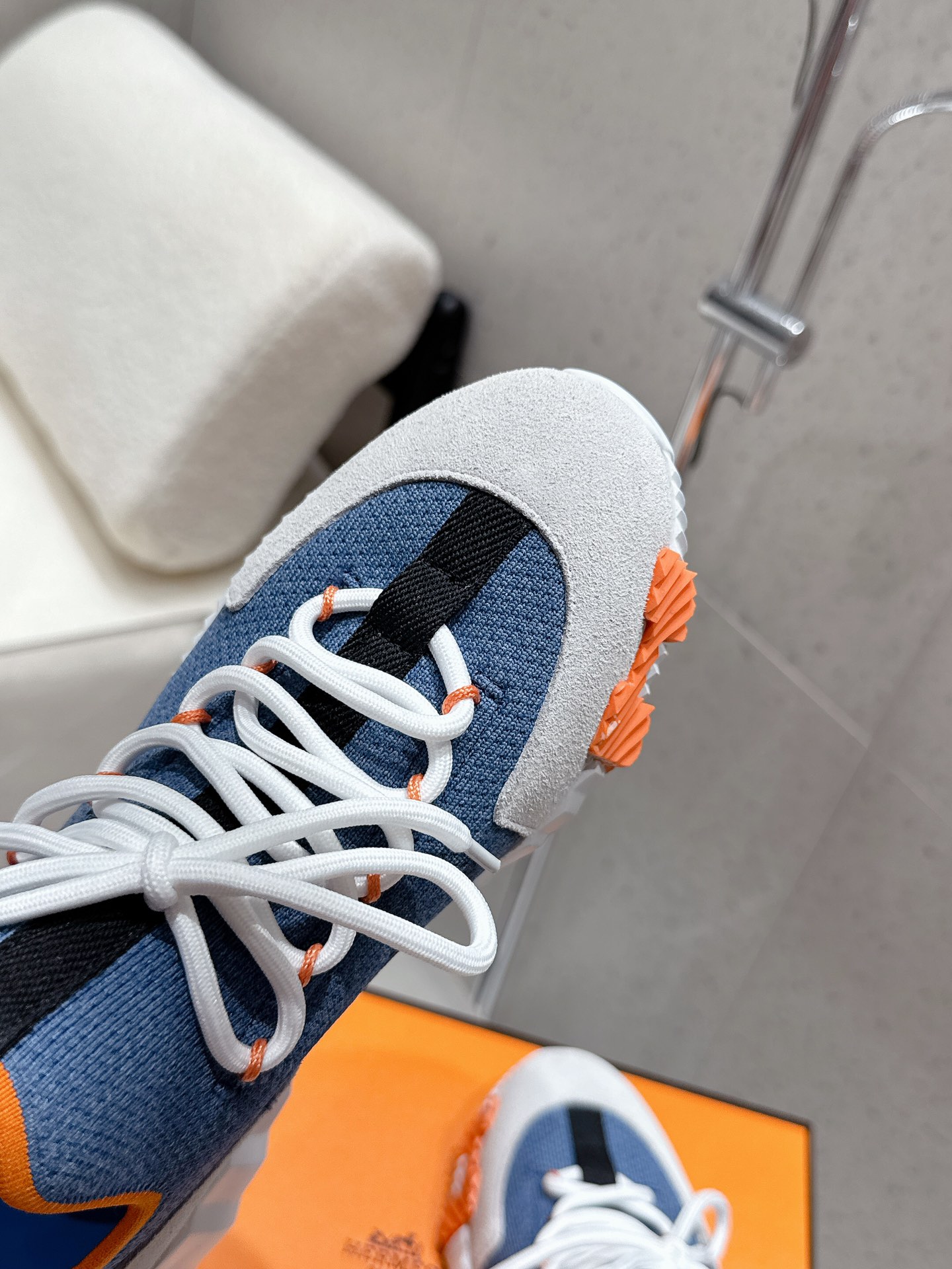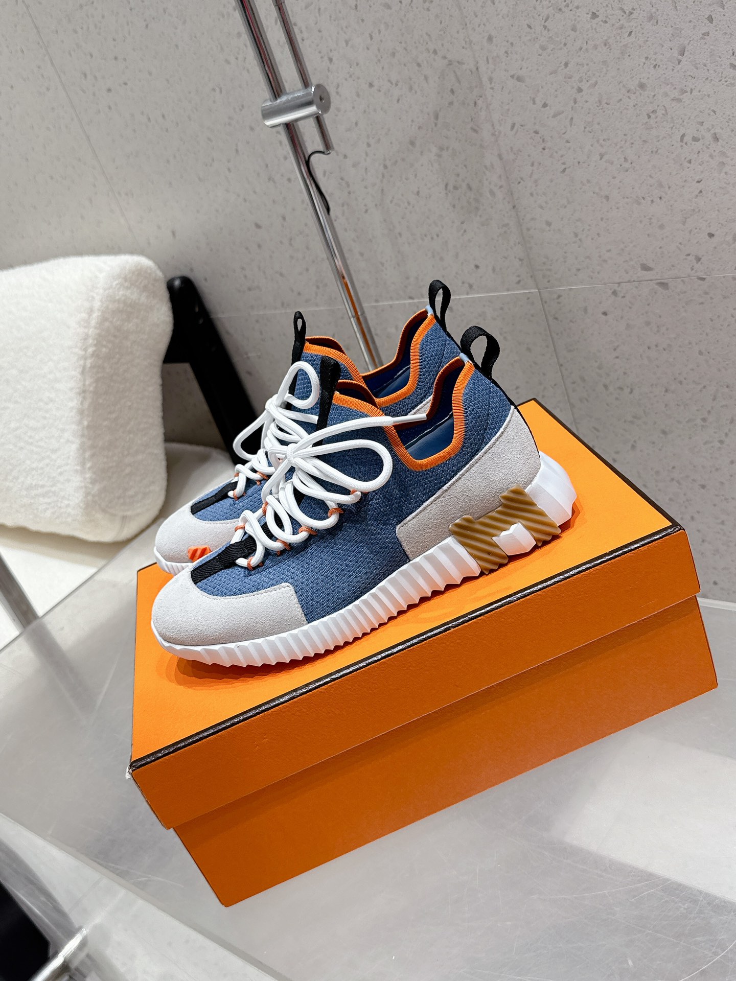 Hermes New Leather Mesh Lace-up White Couple Sneakers