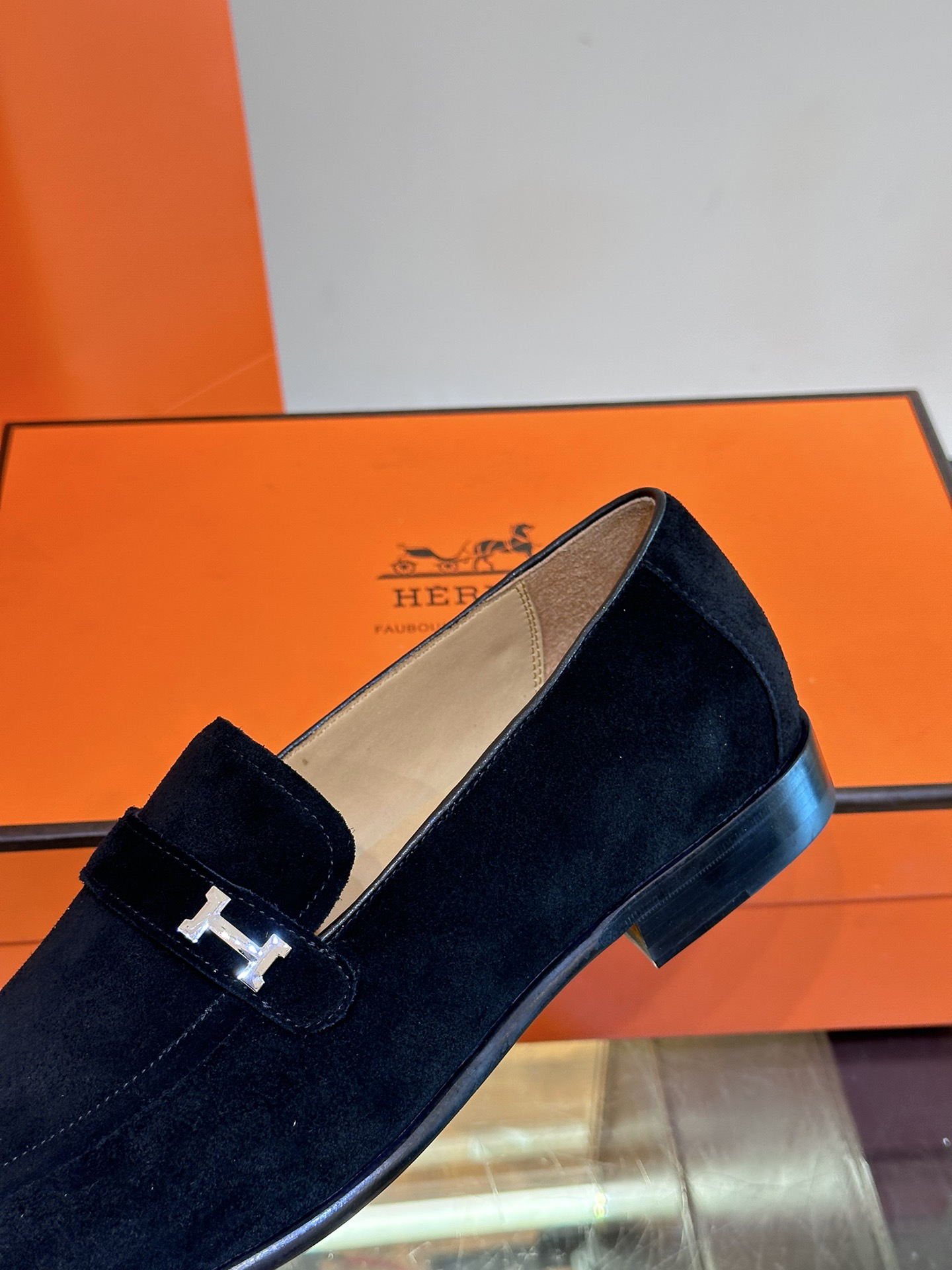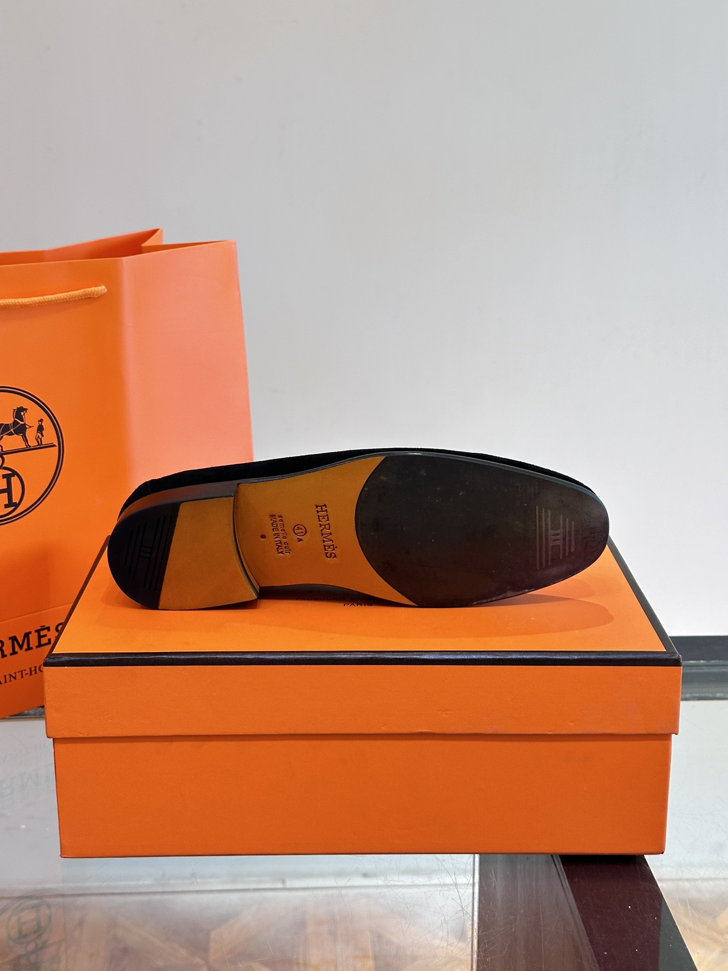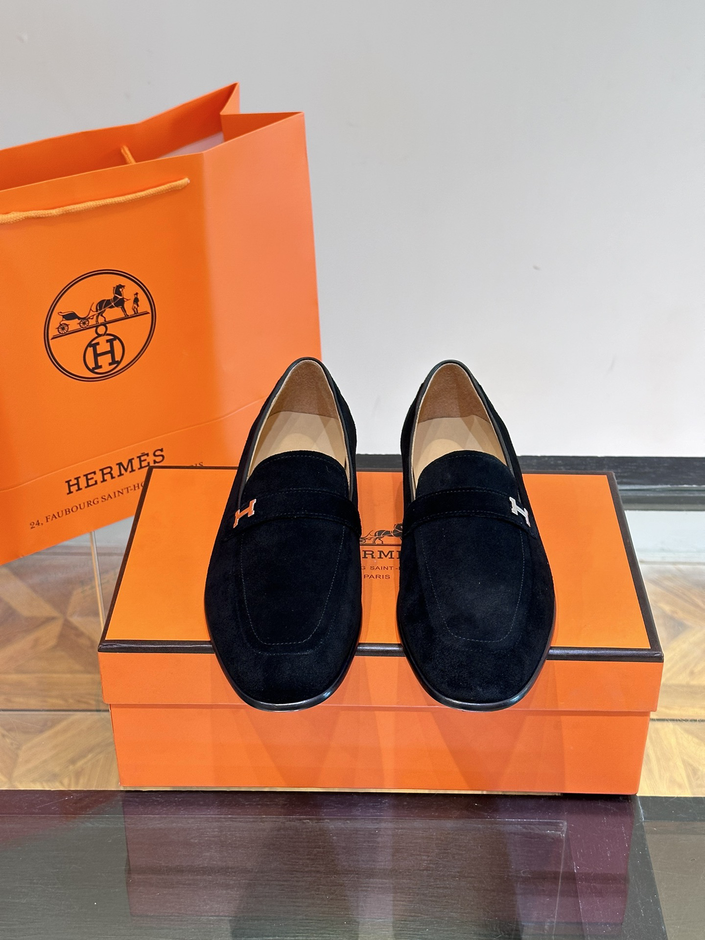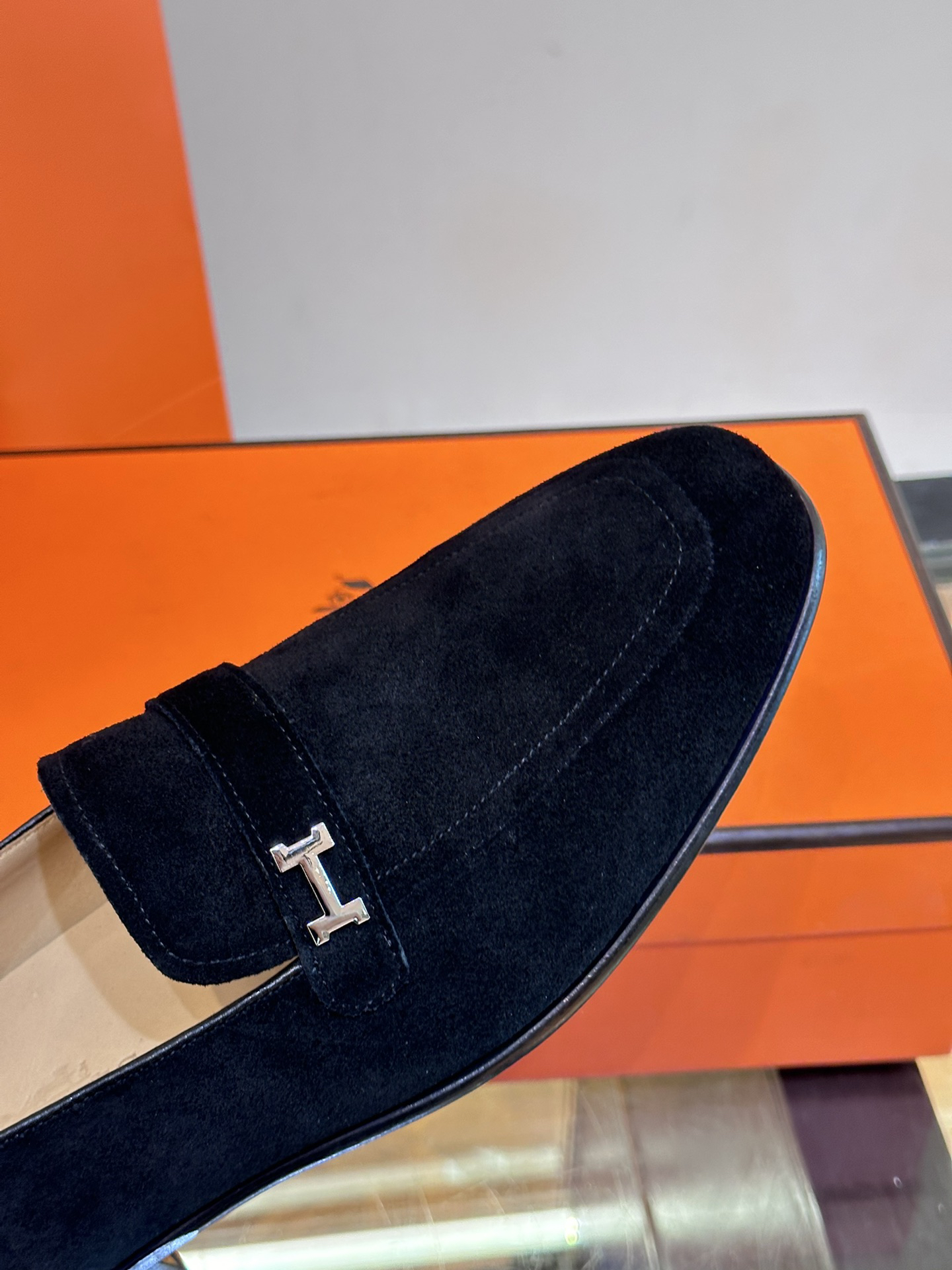 Features: The upper is adorned with the iconic “H” buckle. The insole and lining are typically made of natural ochre or black lambskin. The sole features a blake stitching technique and incorporates rubber for a lightweight and comfortable feel.