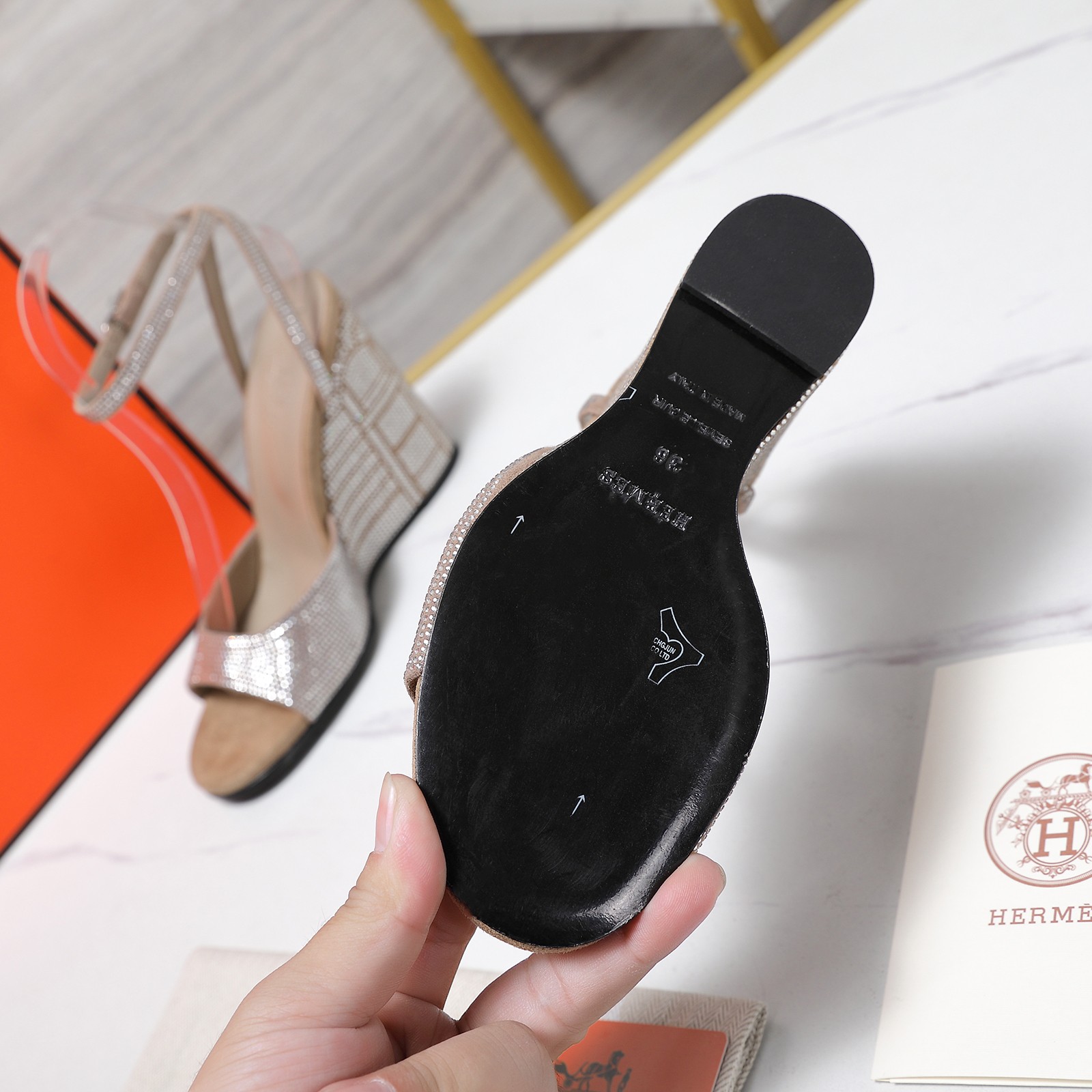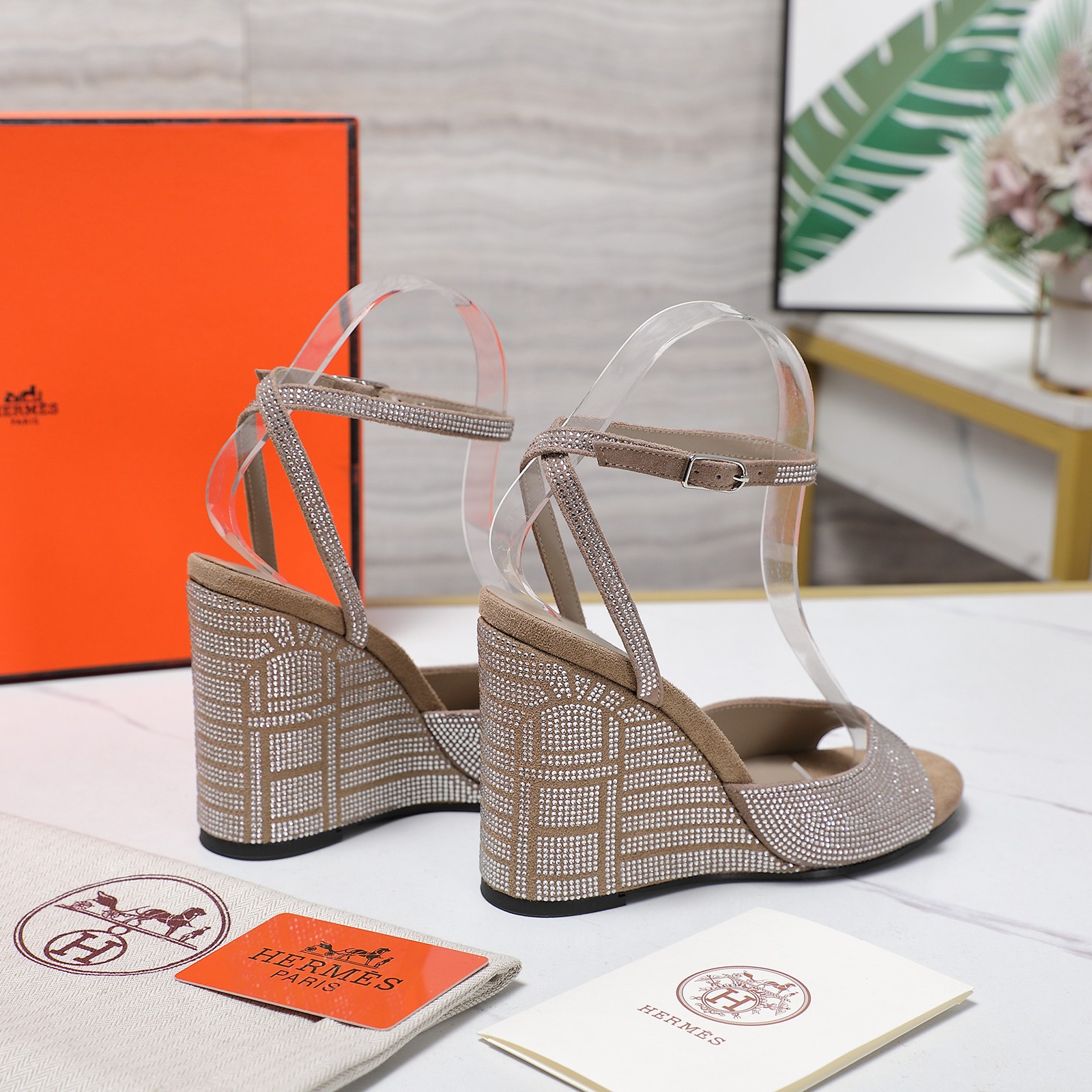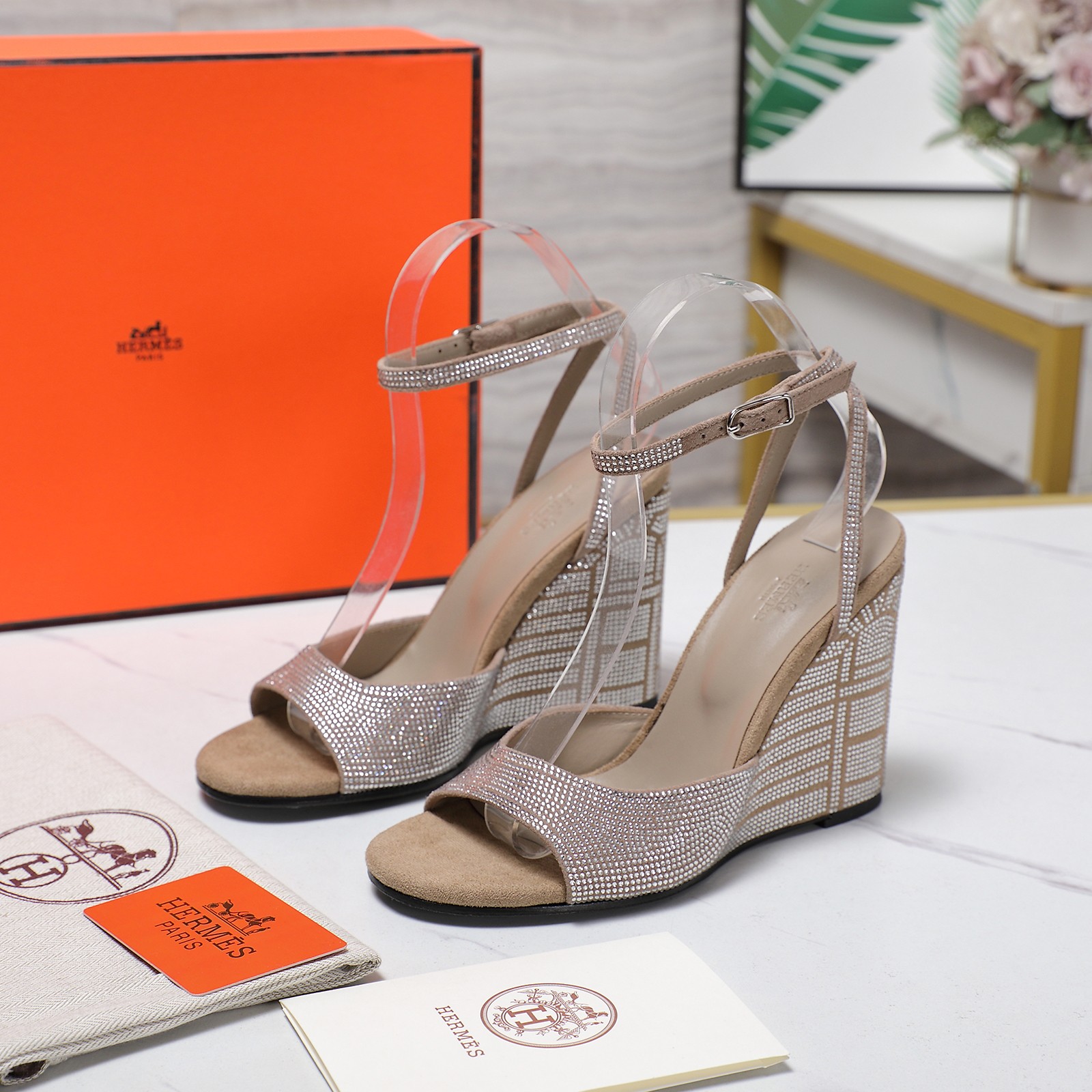 Hermès rhinestone-embellished wedge sandals