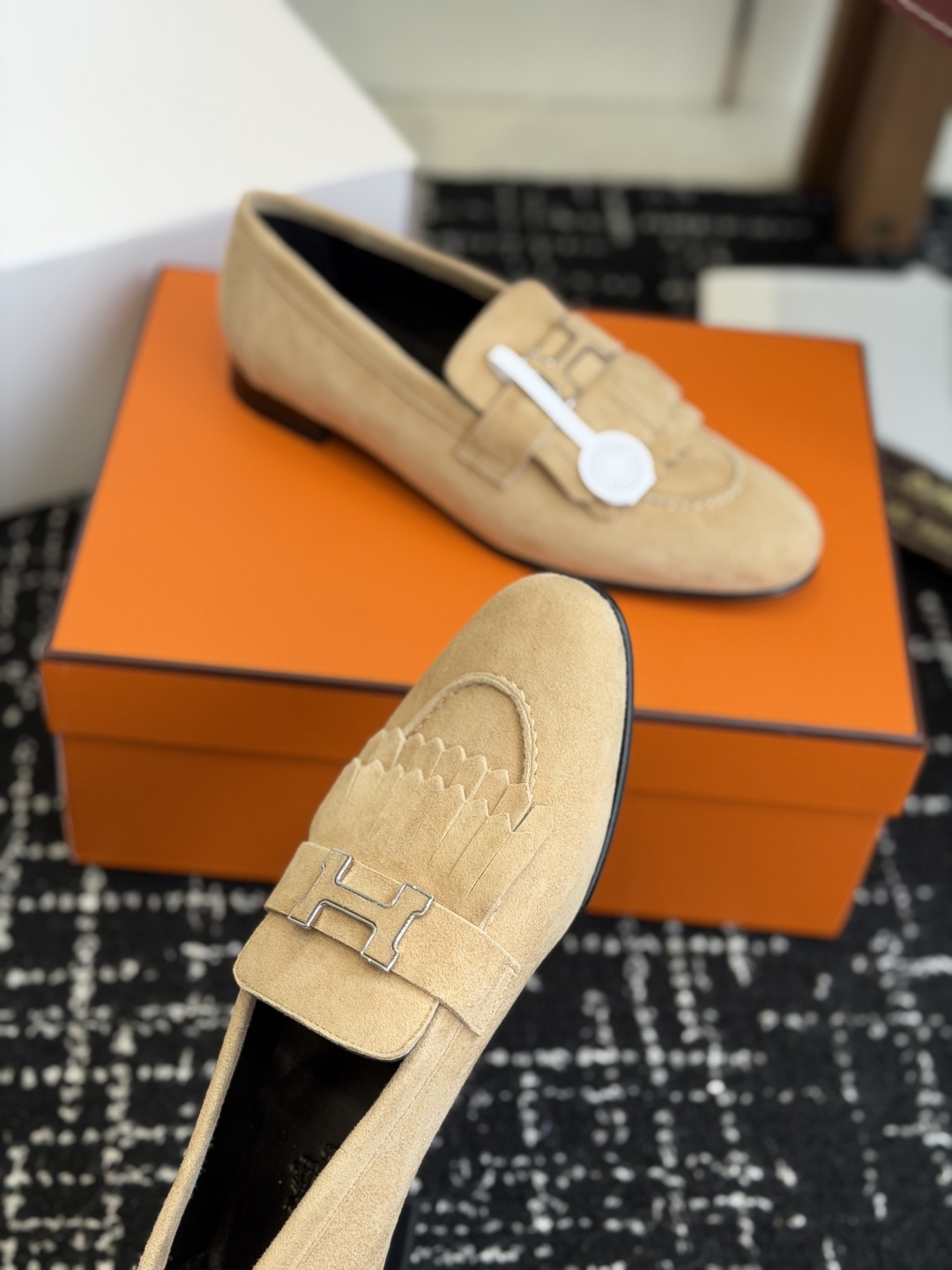 Design Features: Crafted from goatskin or calfskin, adorned with tassel details and the iconic “H” buckle.