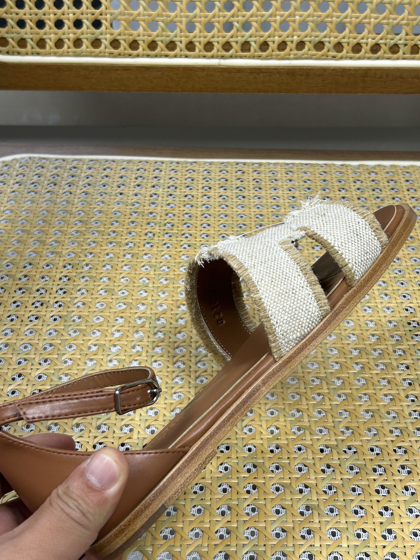 Color: The color shown is natural beige, paired with a brown leather insole and sole.