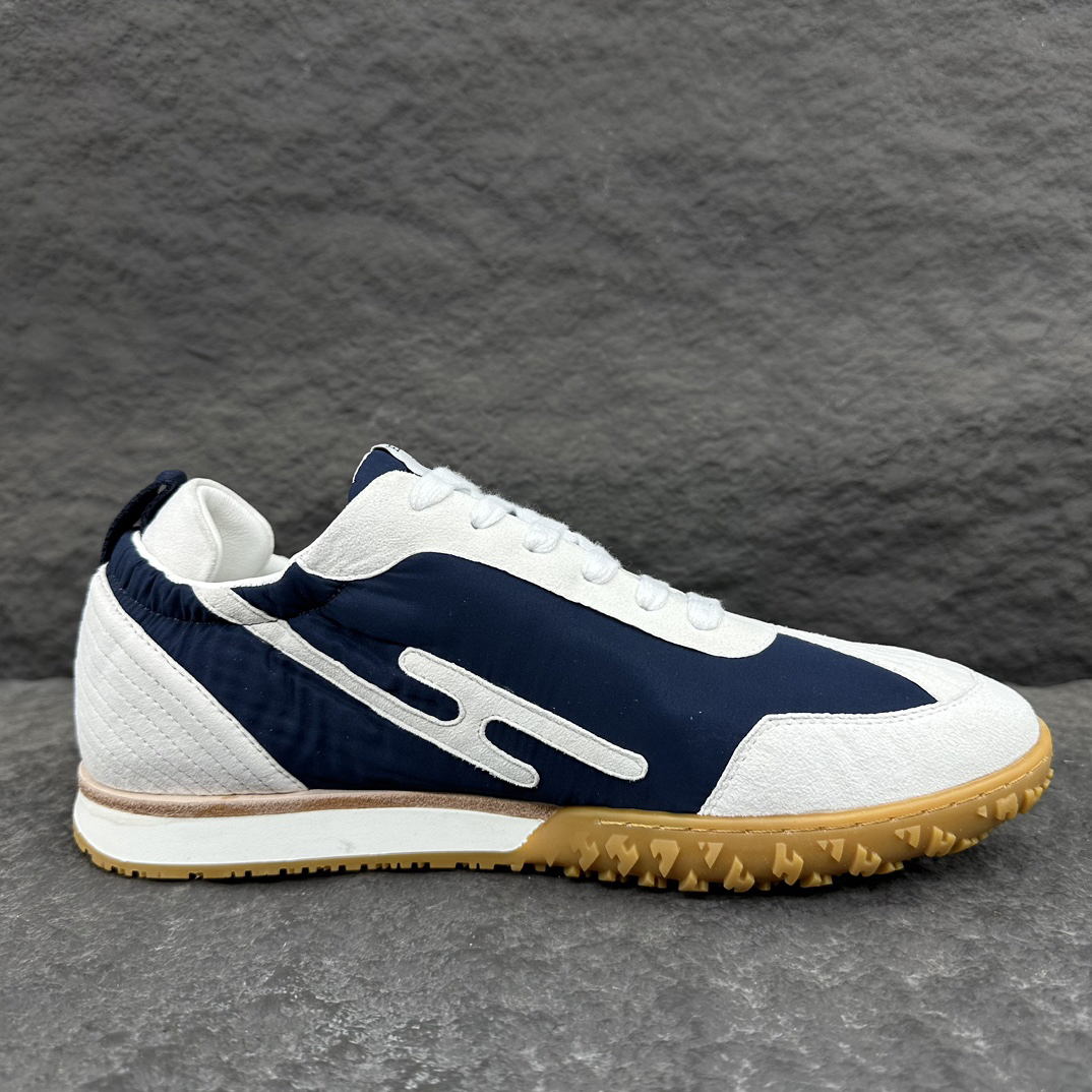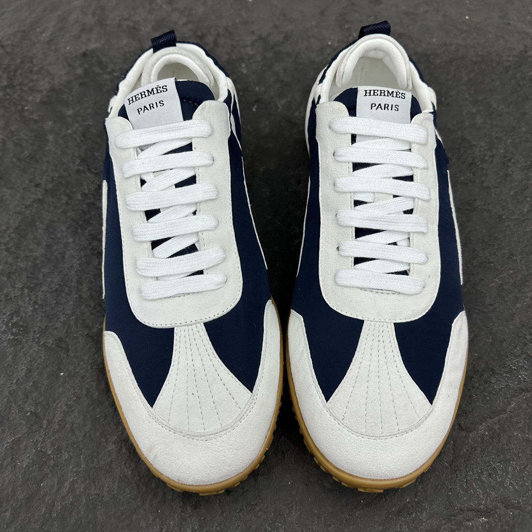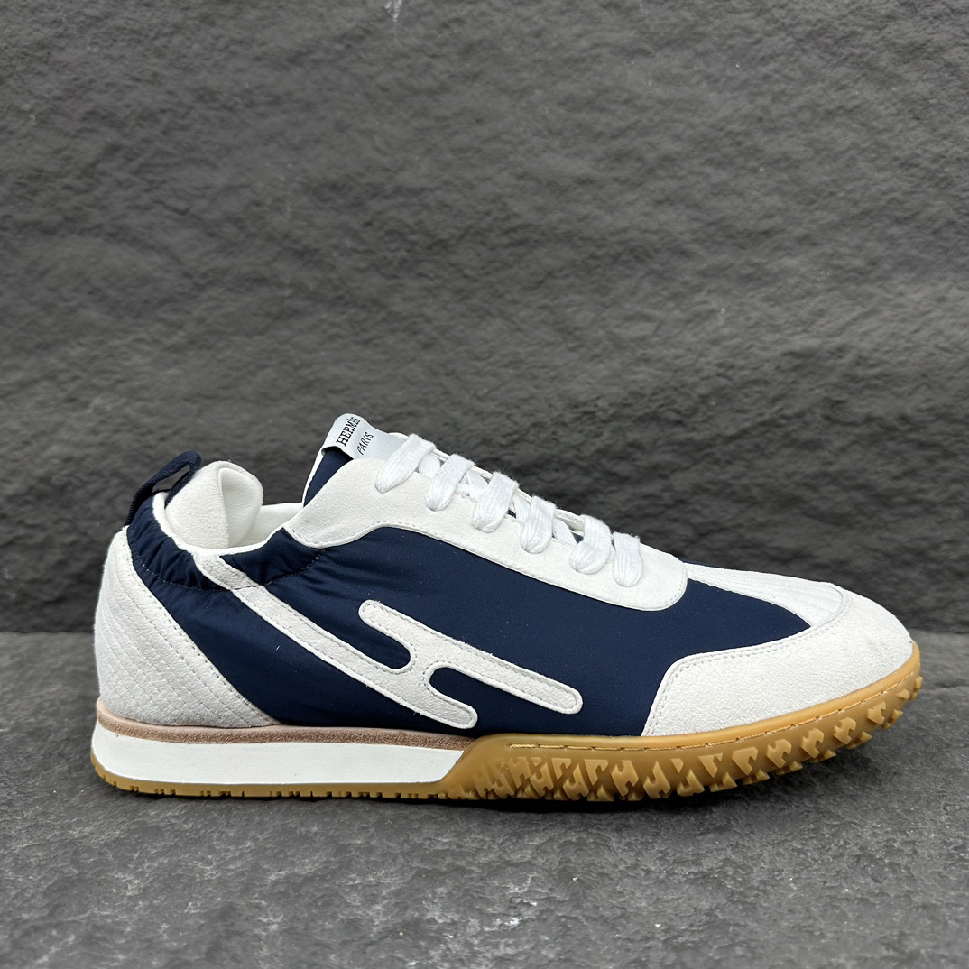 Design: This sneaker features a stylish patchwork design, combining retro and urban styles. The iconic Hermès “H” logo adorns the side of the shoe.