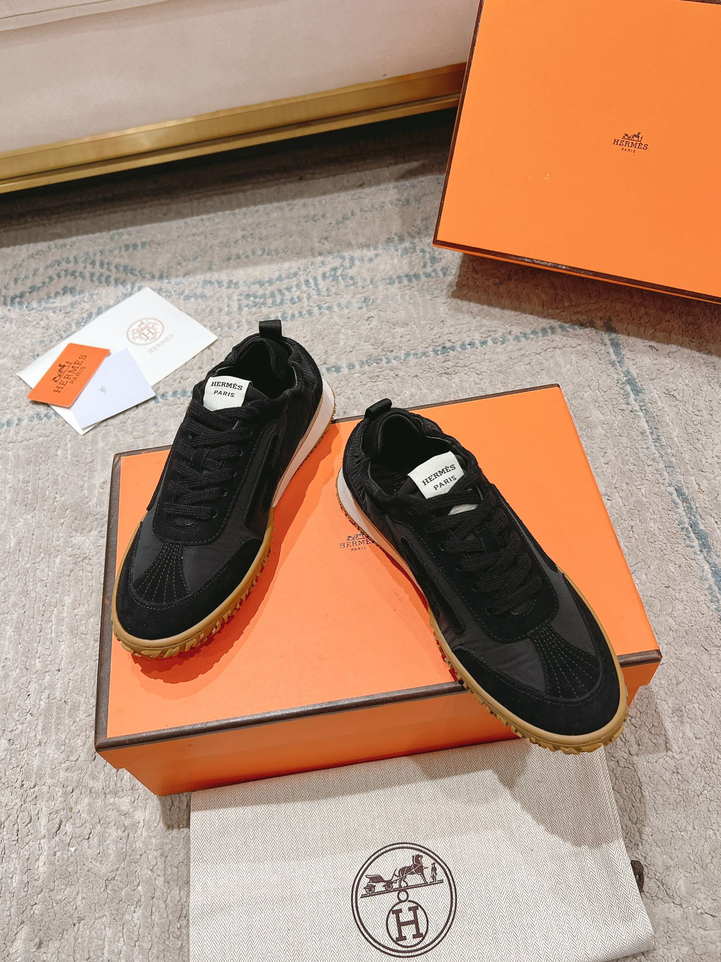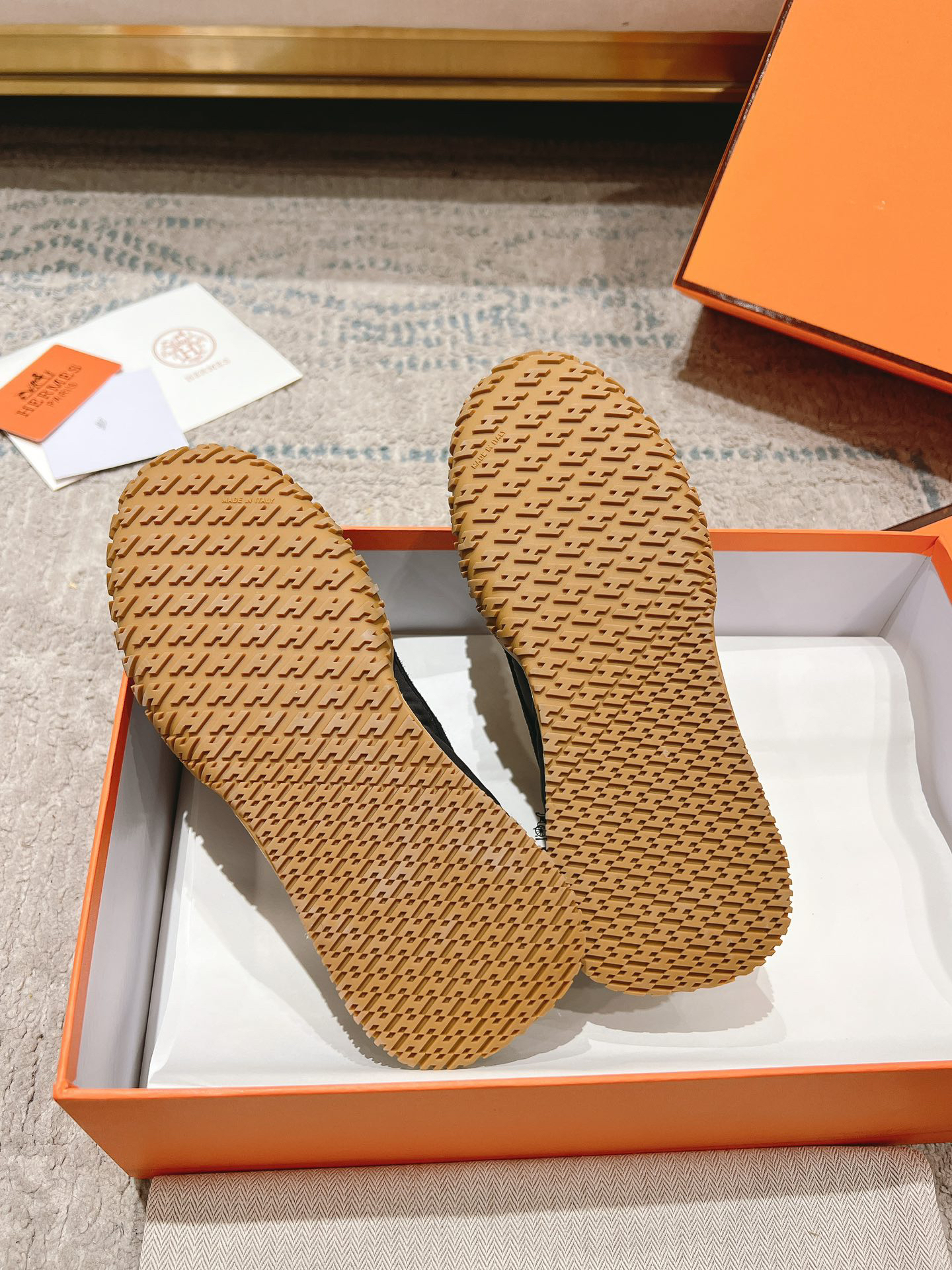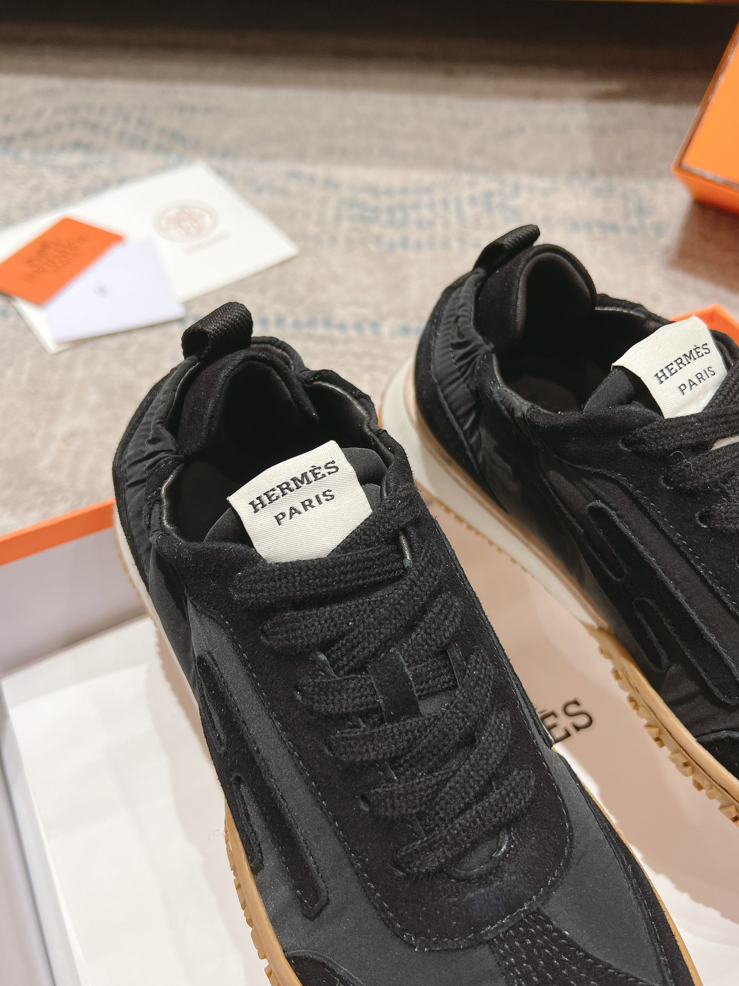 Design: This sneaker features a stylish patchwork design, blending retro and urban styles. The iconic Hermès “H” logo adorns the side of the shoe.
