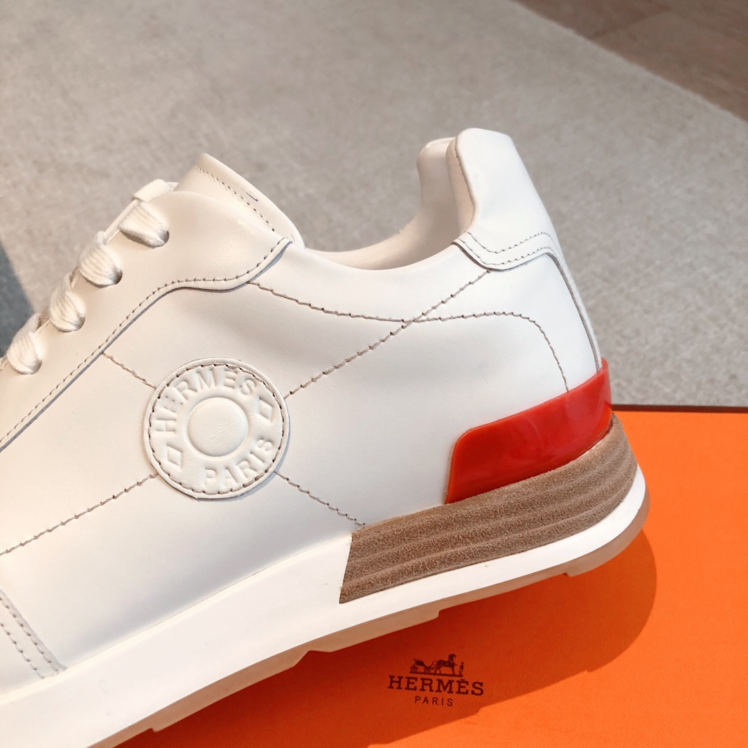 Hermes white leather casual sneakers