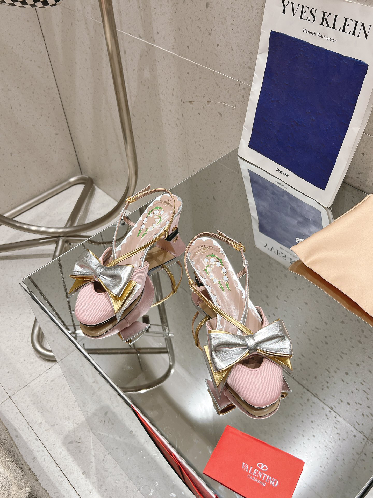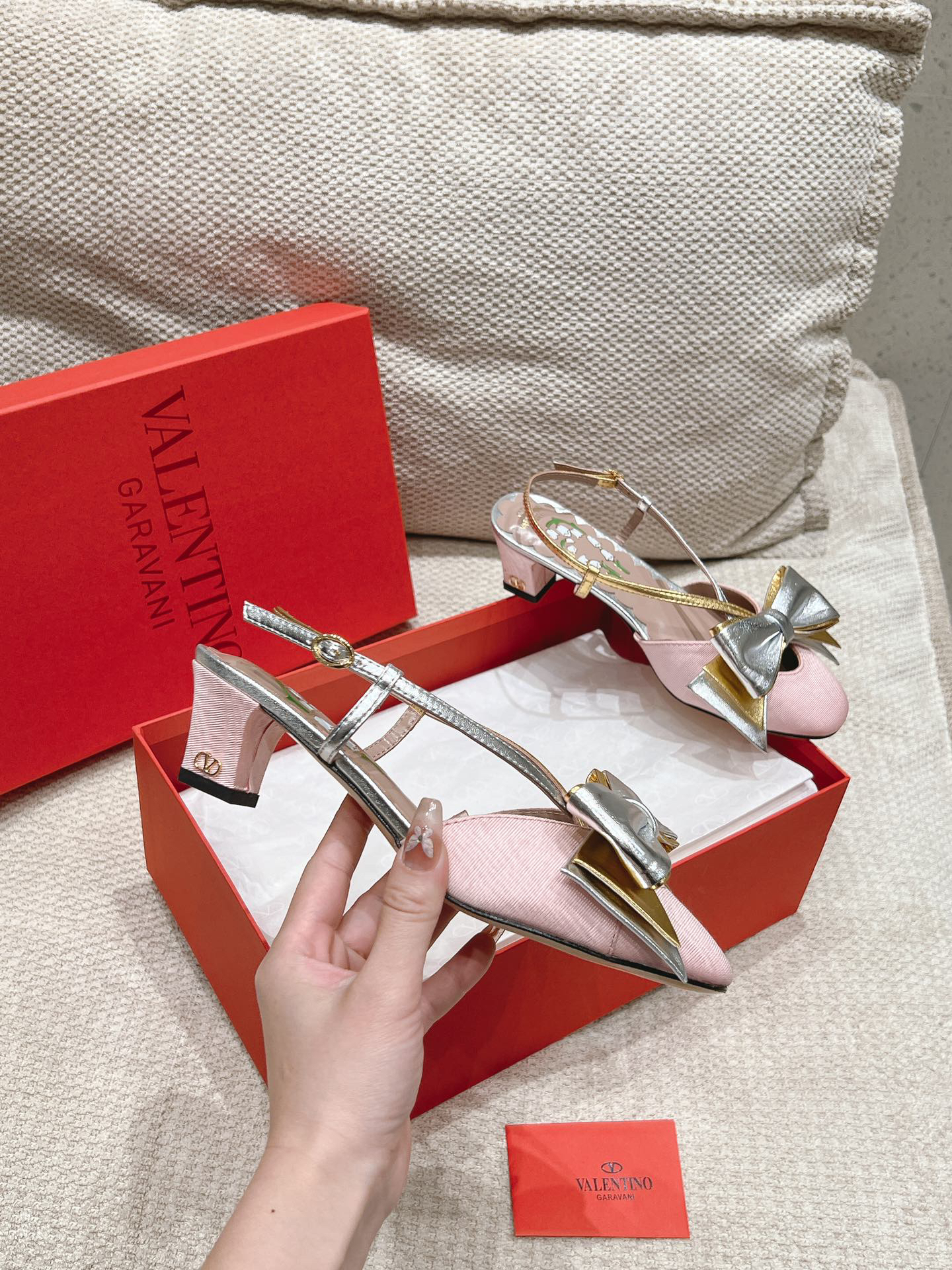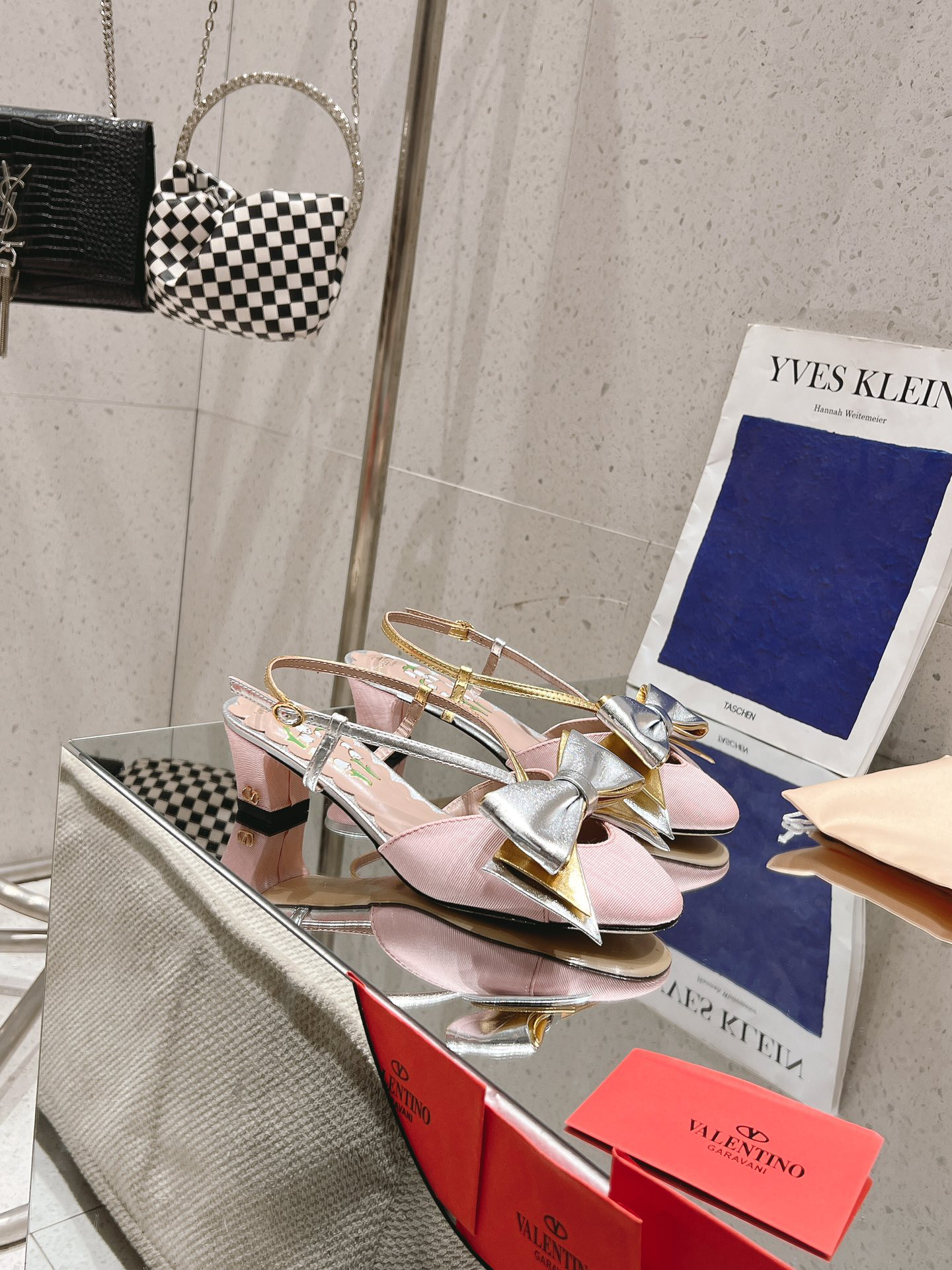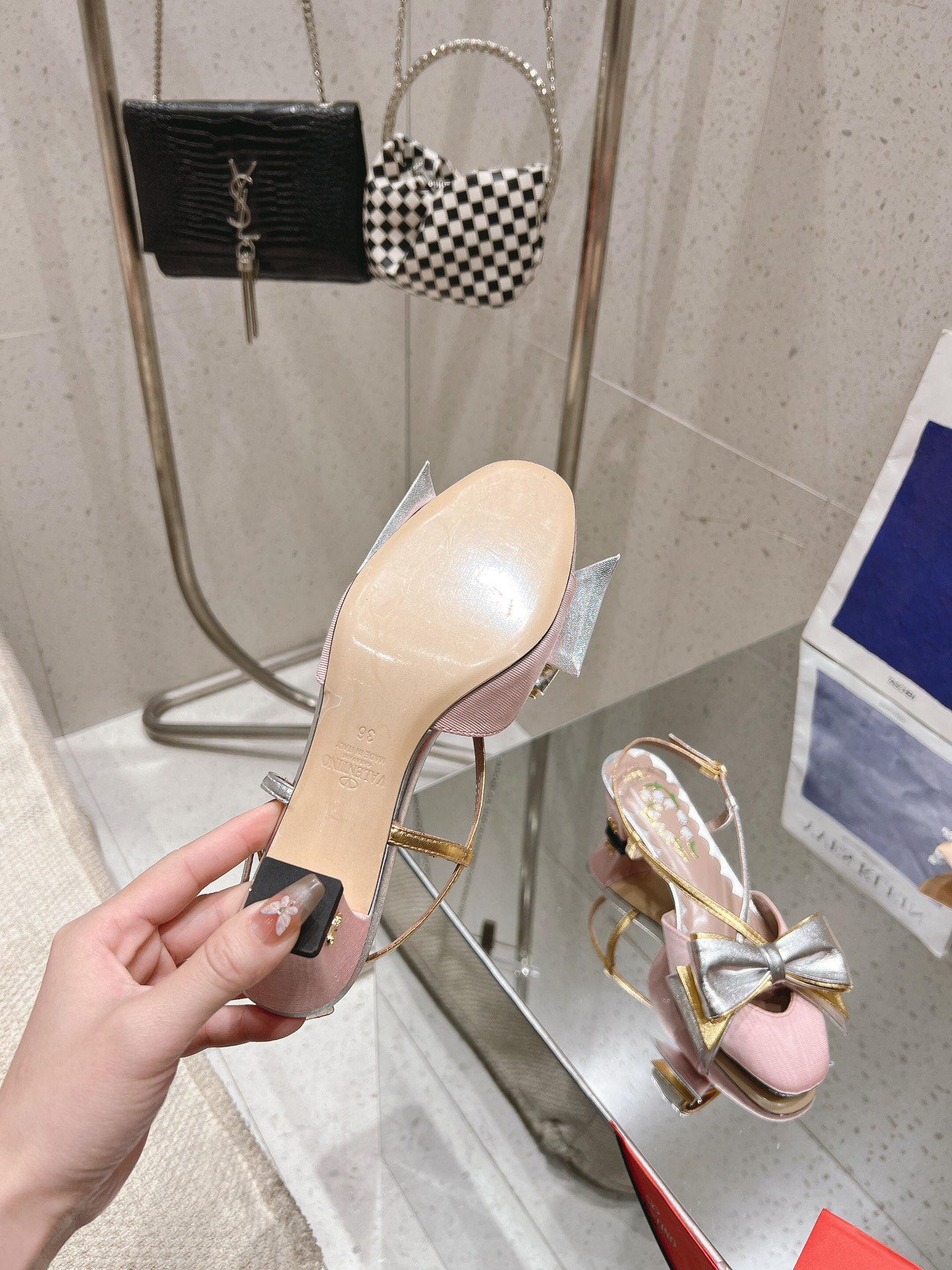 𝑉𝐴𝐿𝐸𝑁𝑇𝐼𝑁𝑂 Valentino Luxury Rhinestone Heels Fashion Shoes Series Garavani VLogo Signature Series 🌈V-Buckle Pointed Toe Sandals