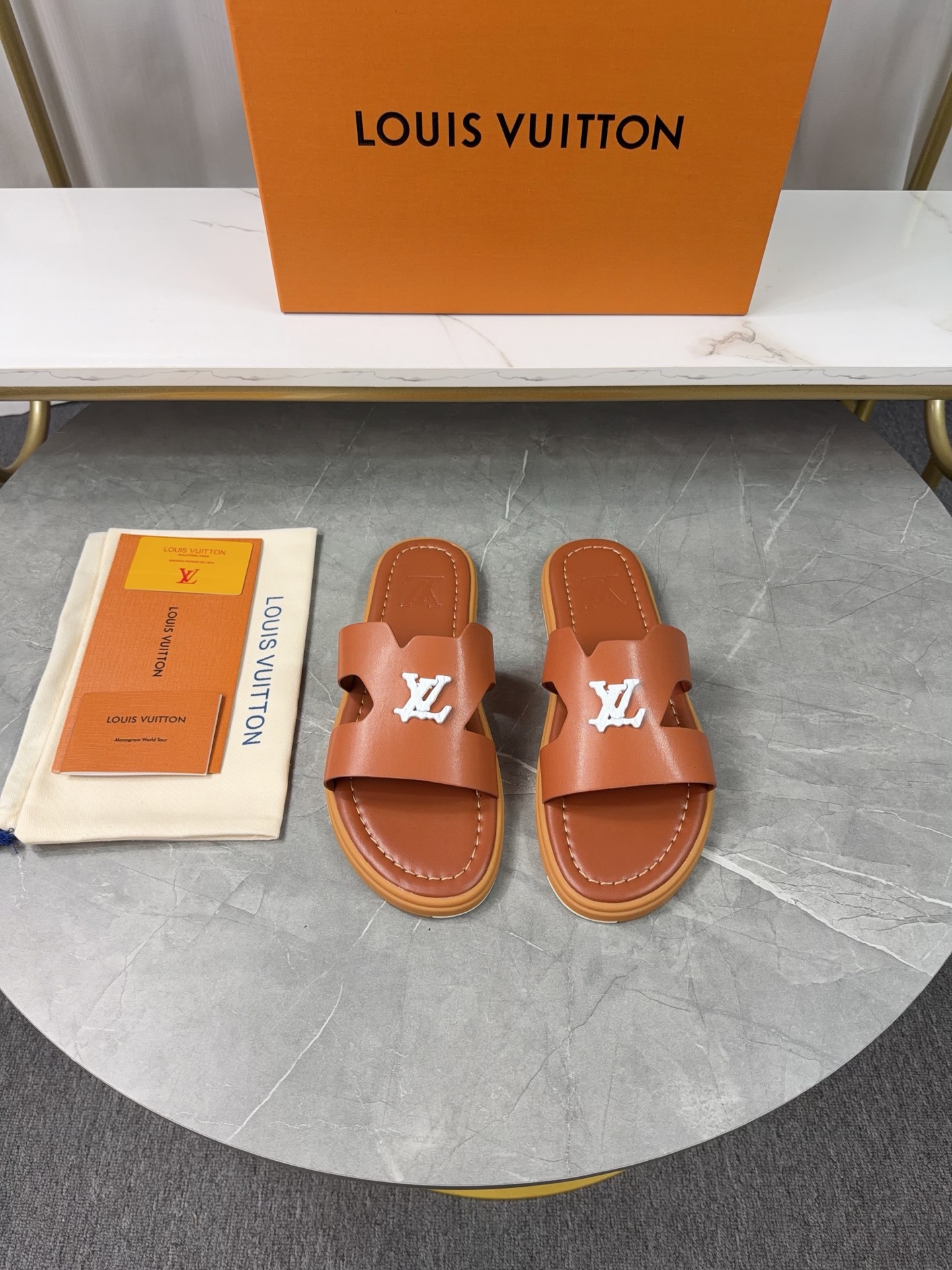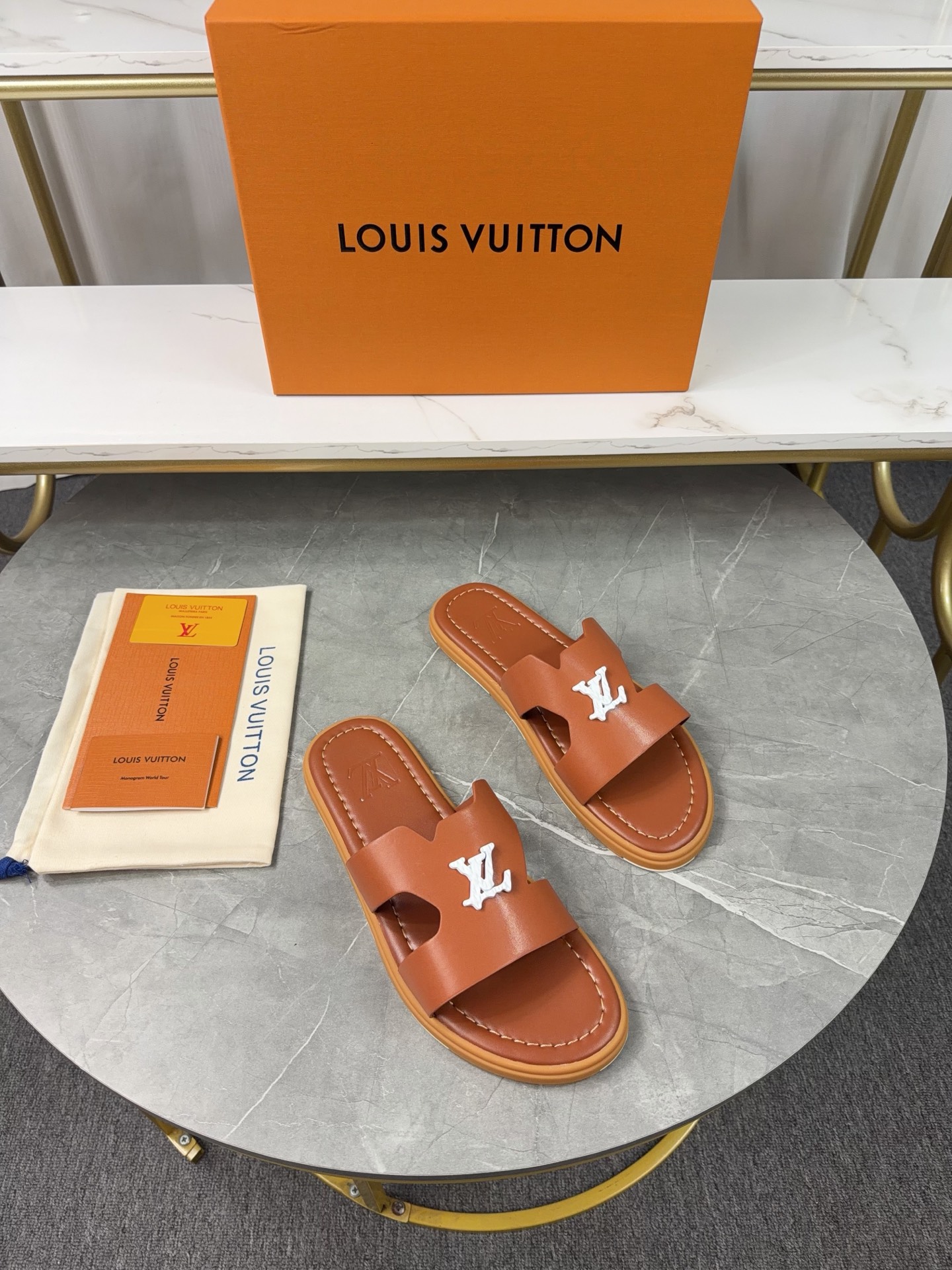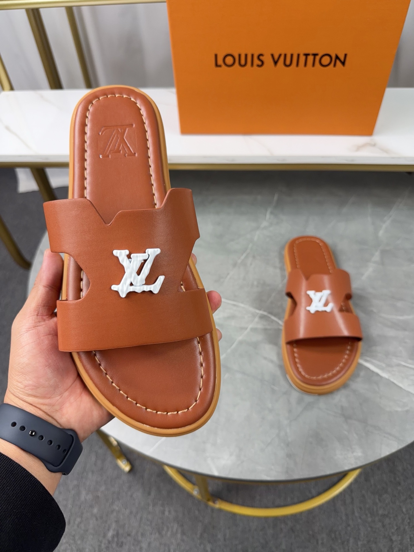 A key feature is the openwork LV Circle logo on the wide toe strap.