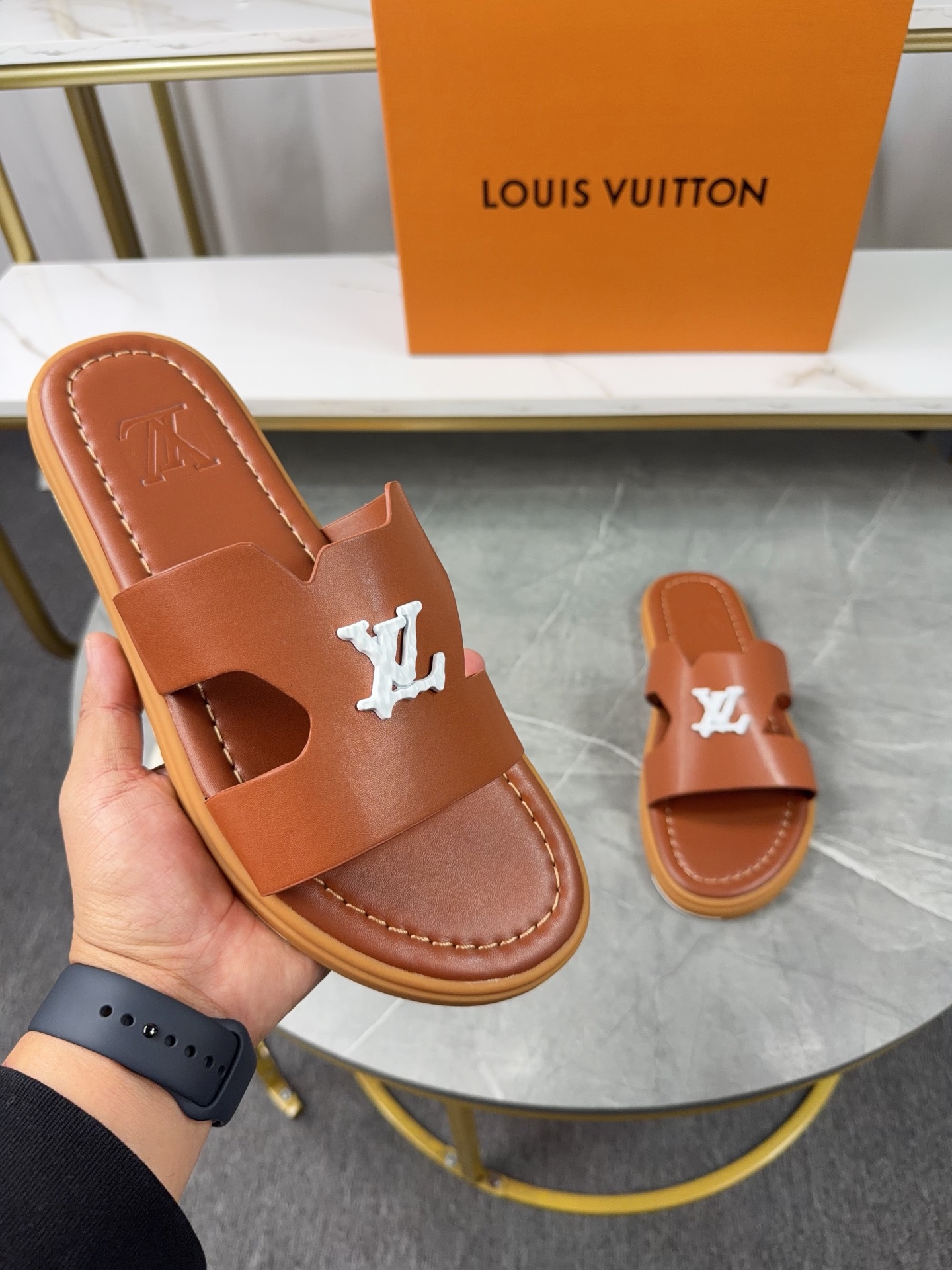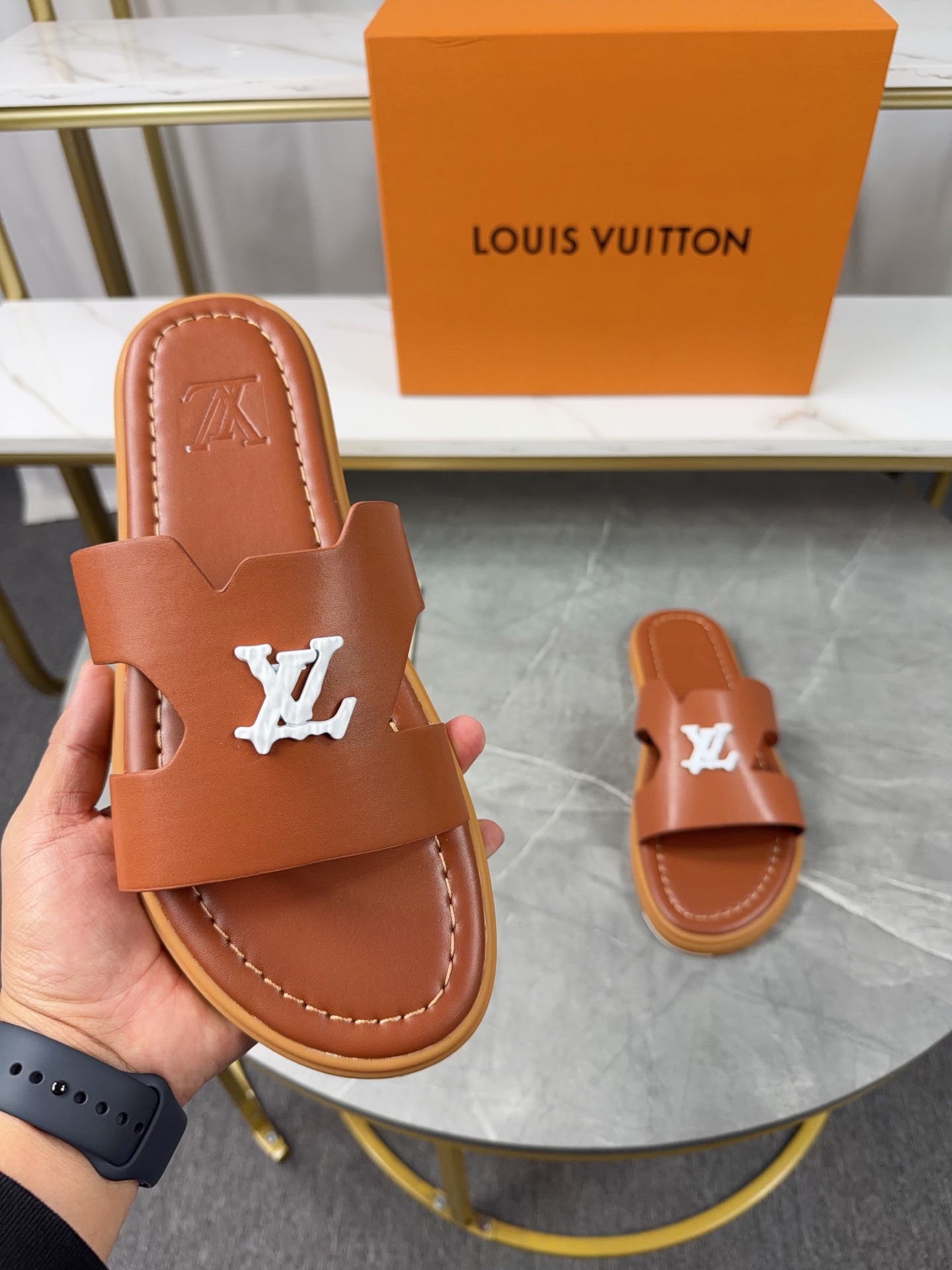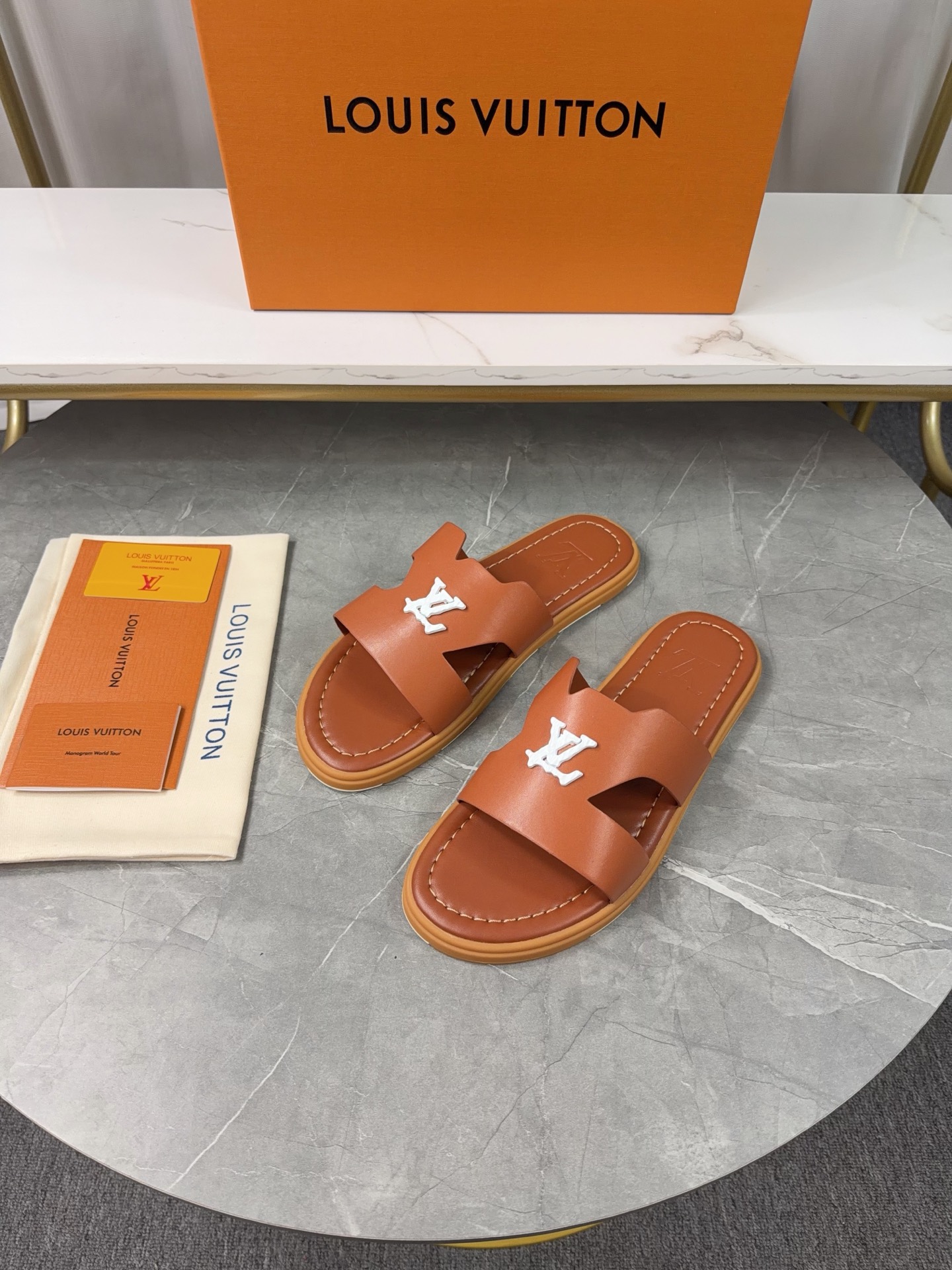 A key feature is the openwork LV Circle logo on the wide toe strap.