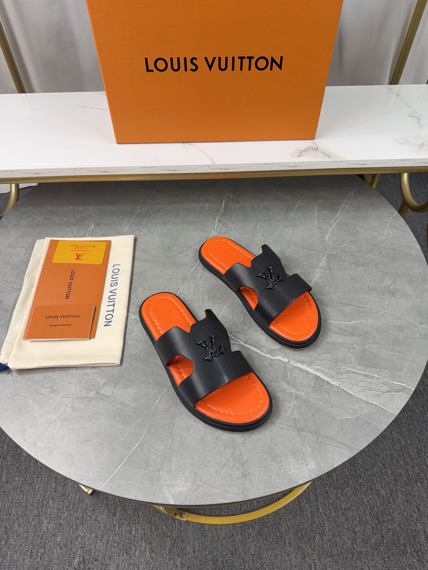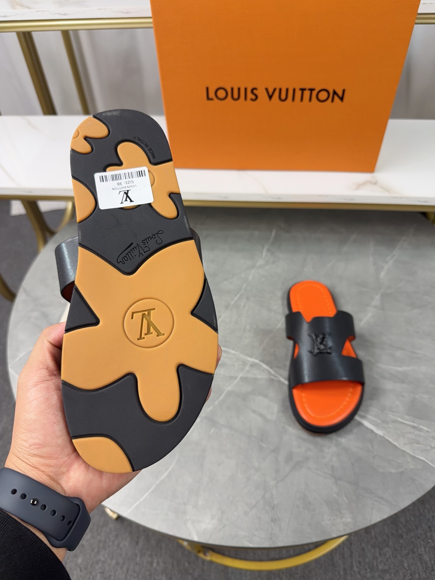 The main feature is the openwork LV Circle logo on the wide toe strap.