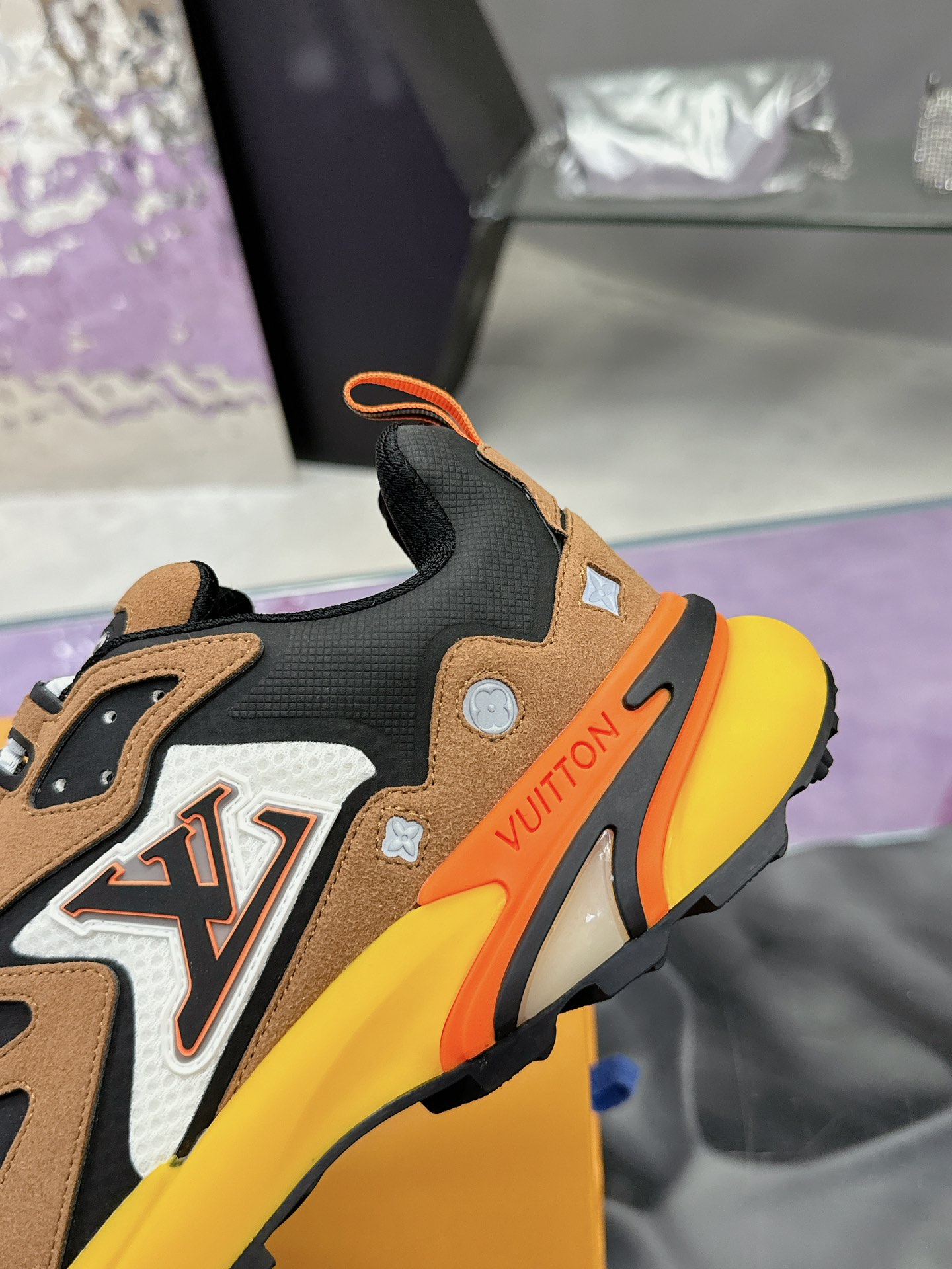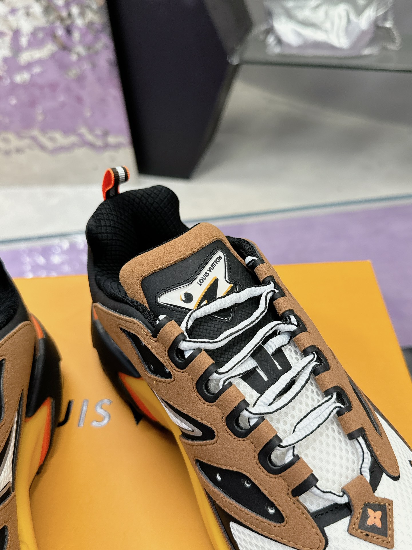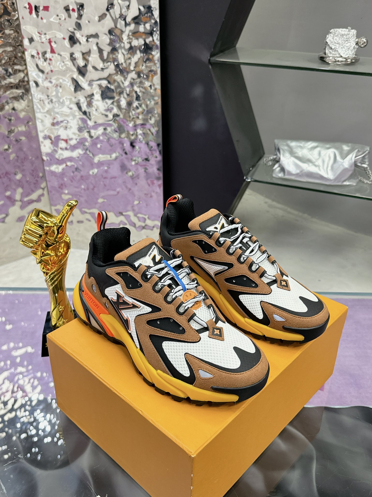 Features: The side of the shoe features a dynamic “LV” initial logo. The functional lacing system includes adjustable buckles and is decorated with a Monogram floral pattern. Reflective Monogram floral patterns also adorn the tongue and the ultra-lightweight wavy rubber outsole.