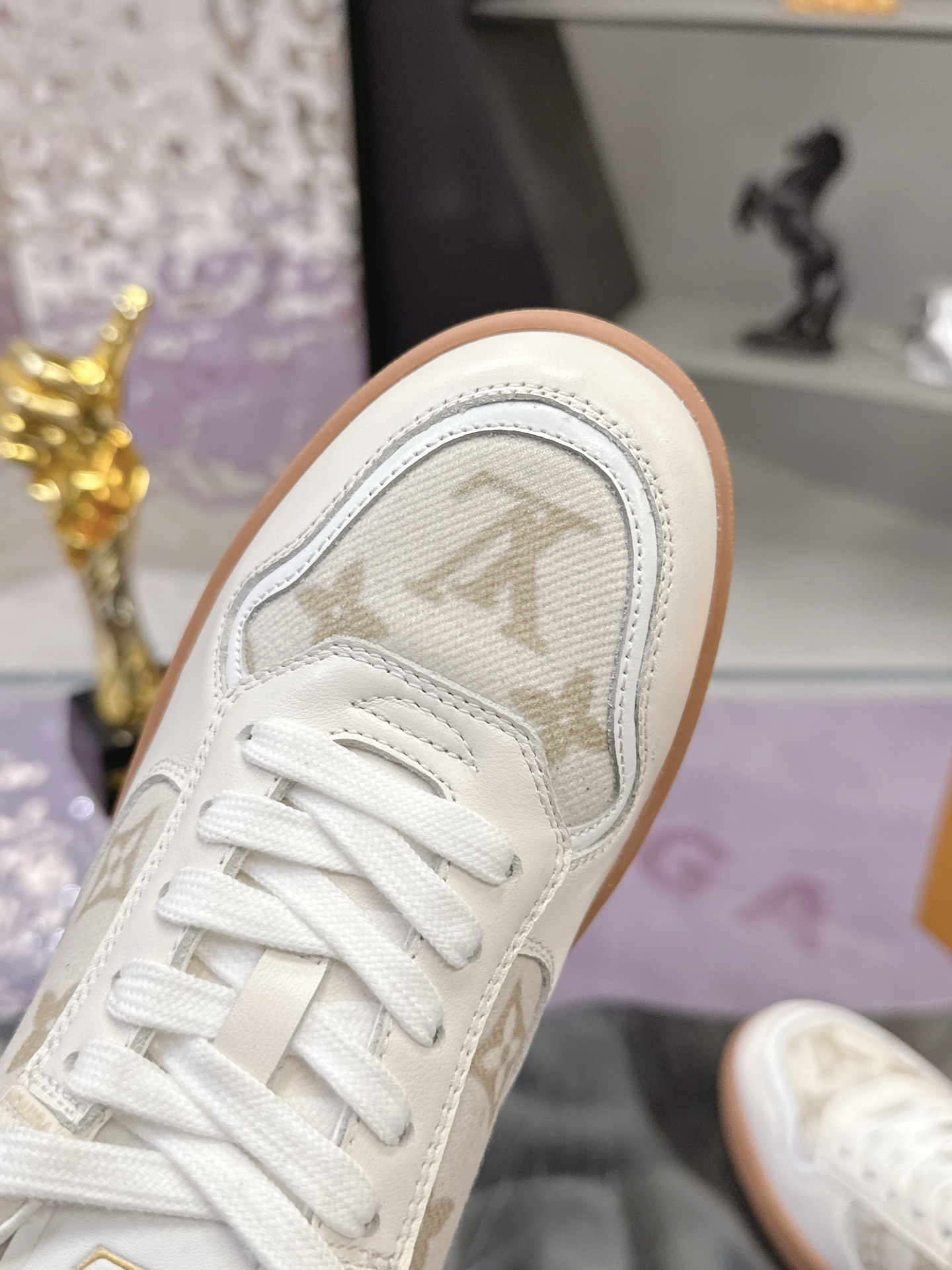 Color: White (with Monogram canvas trim and rubber outsole)
