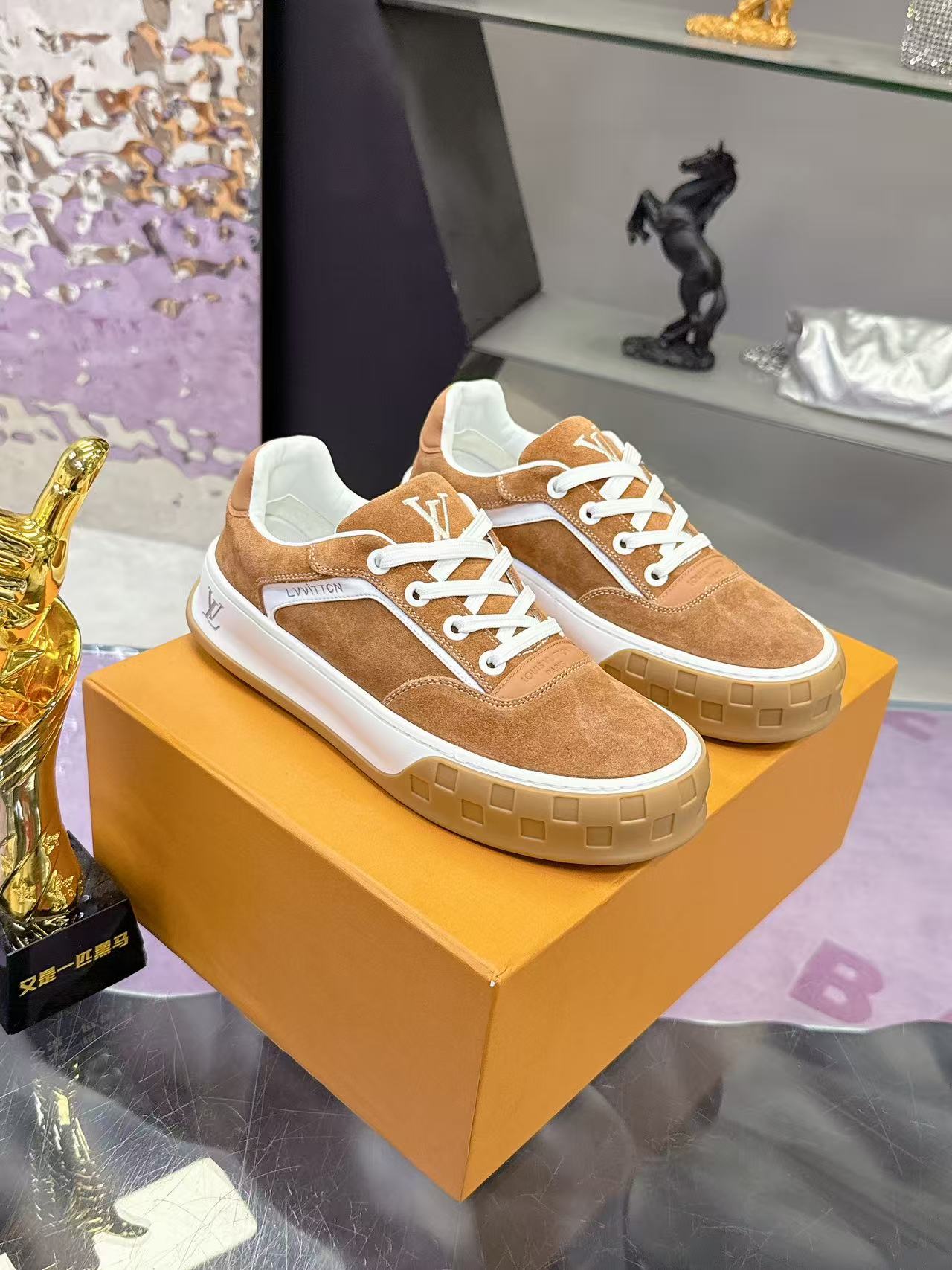 $240.56LV Trainer’s latest couple sneaker collection is here! Highly recommended – they’re absolutely gorgeous! They sold out in just ten minutes. A stunning addition to this summer! Original design! Perfect last! The streamlined shape is identical to the original, flawless and impeccable. Quality remains consistent – top-grade calfskin upper, original mold, TPU outsole, same texture as the original, comfortable and easy to wear.