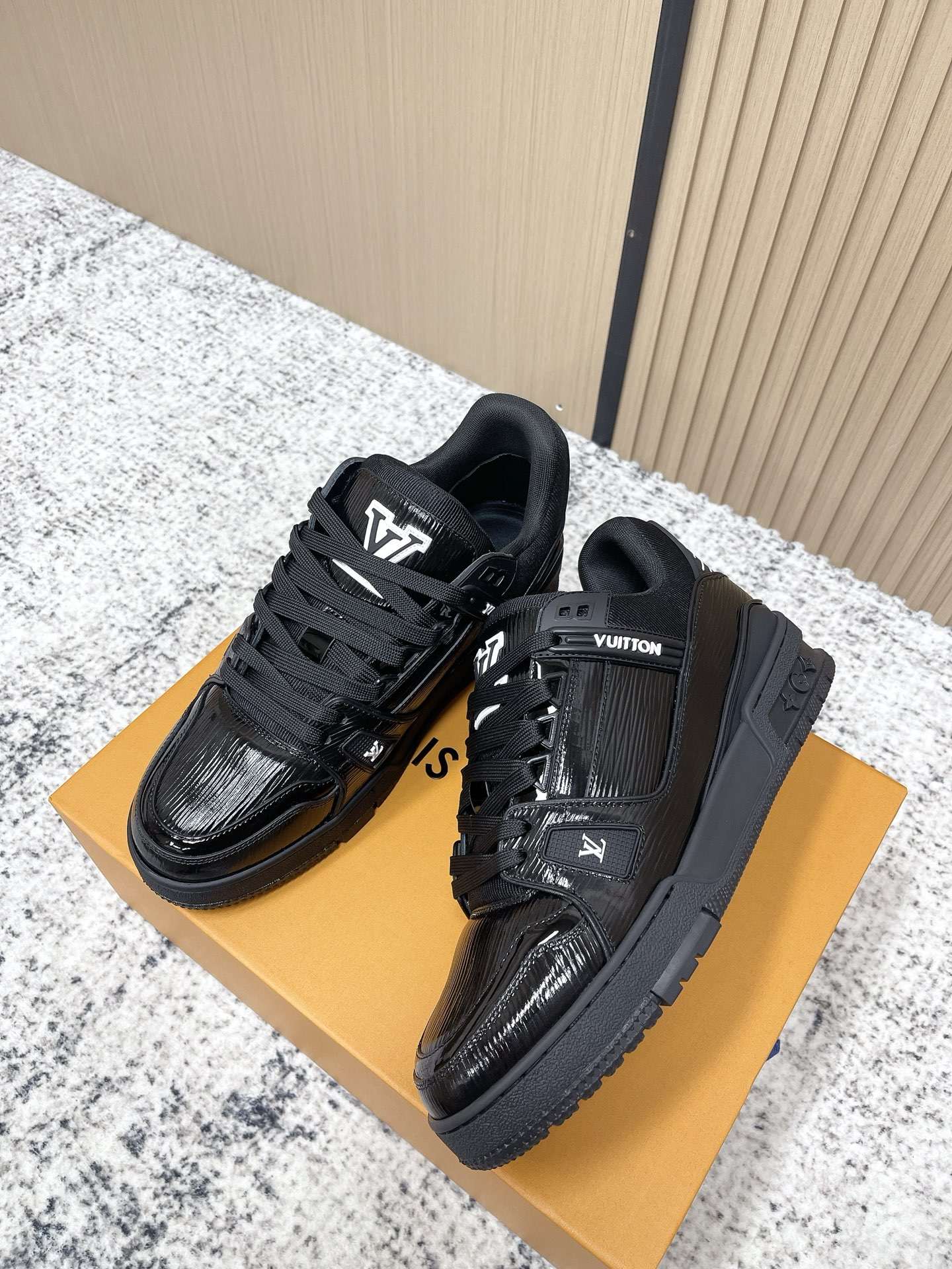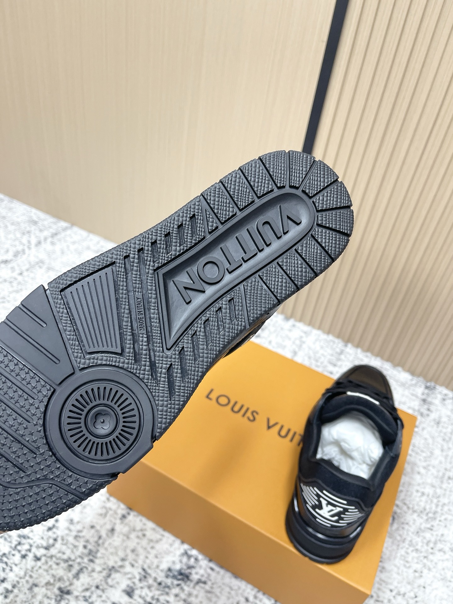 $234.83These LV Trainer sneakers are crafted from grained calfskin leather, paying homage to Virgil Abloh’s original classic design inspired by retro basketball shoes with vibrant colorways. The upper is adorned with rubber LV lettering and the Vuitton logo, while the outsole features a Monogram floral pattern.